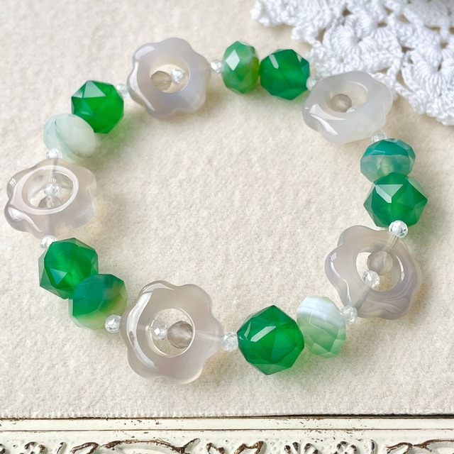 ronde フラワーモチーフのブレスレット(グレー&グリーンオニキス) oxr-b-2510-02