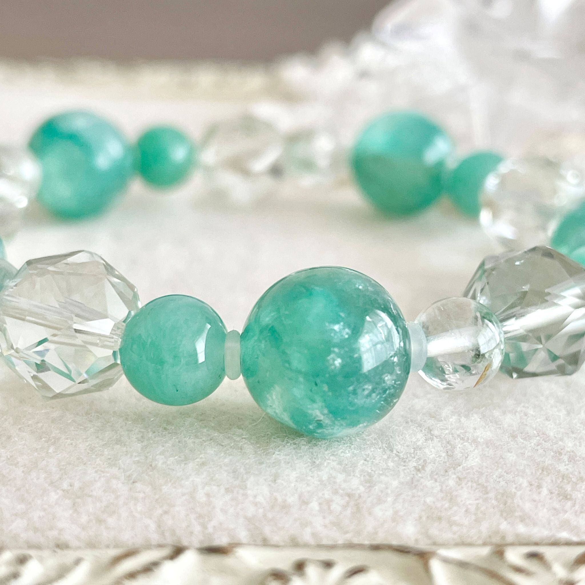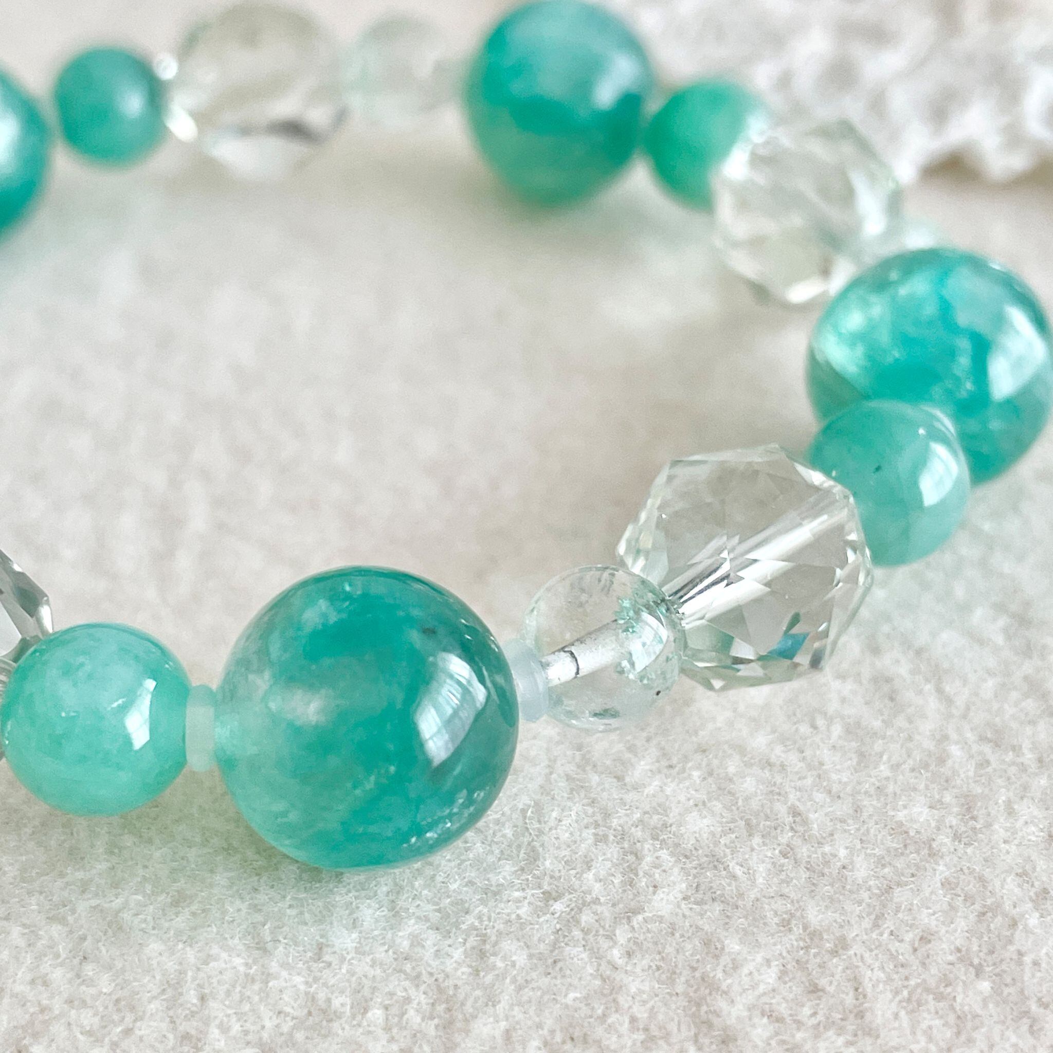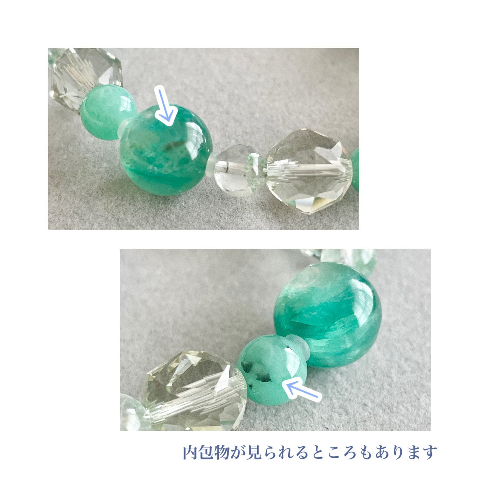 6mm玉のグリーンファントムクォーツは、透明なクォーツが抜け感を出してくれています。