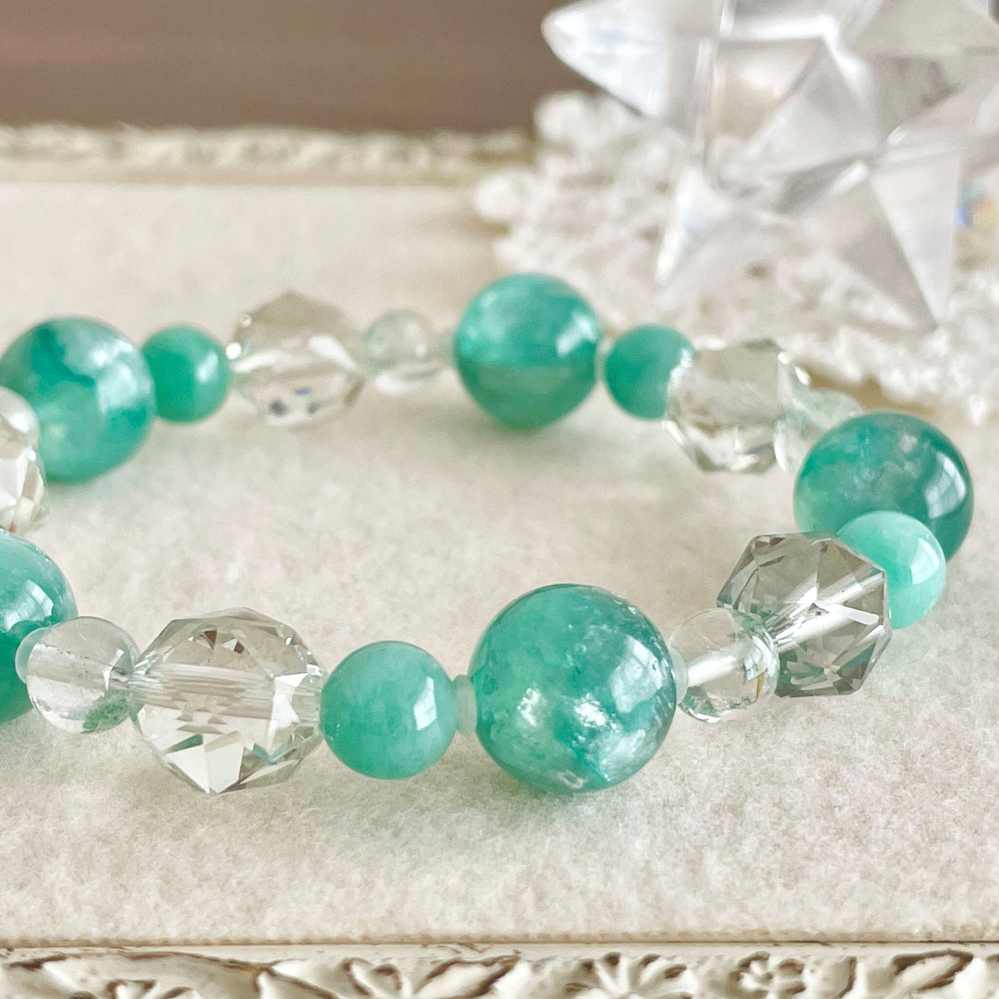 パールアクアグリーン色の石♪