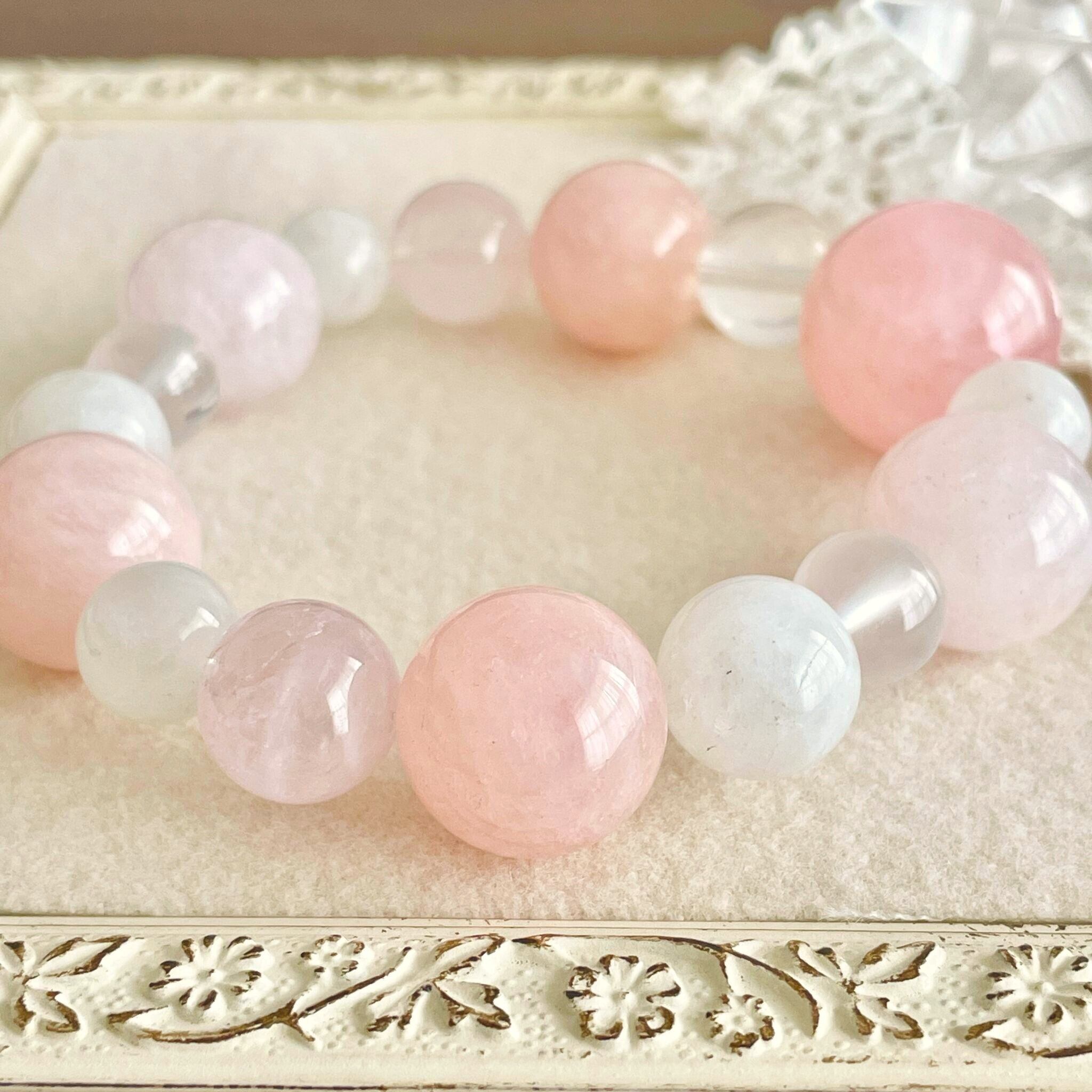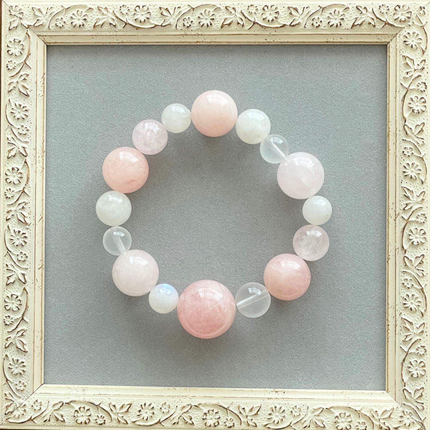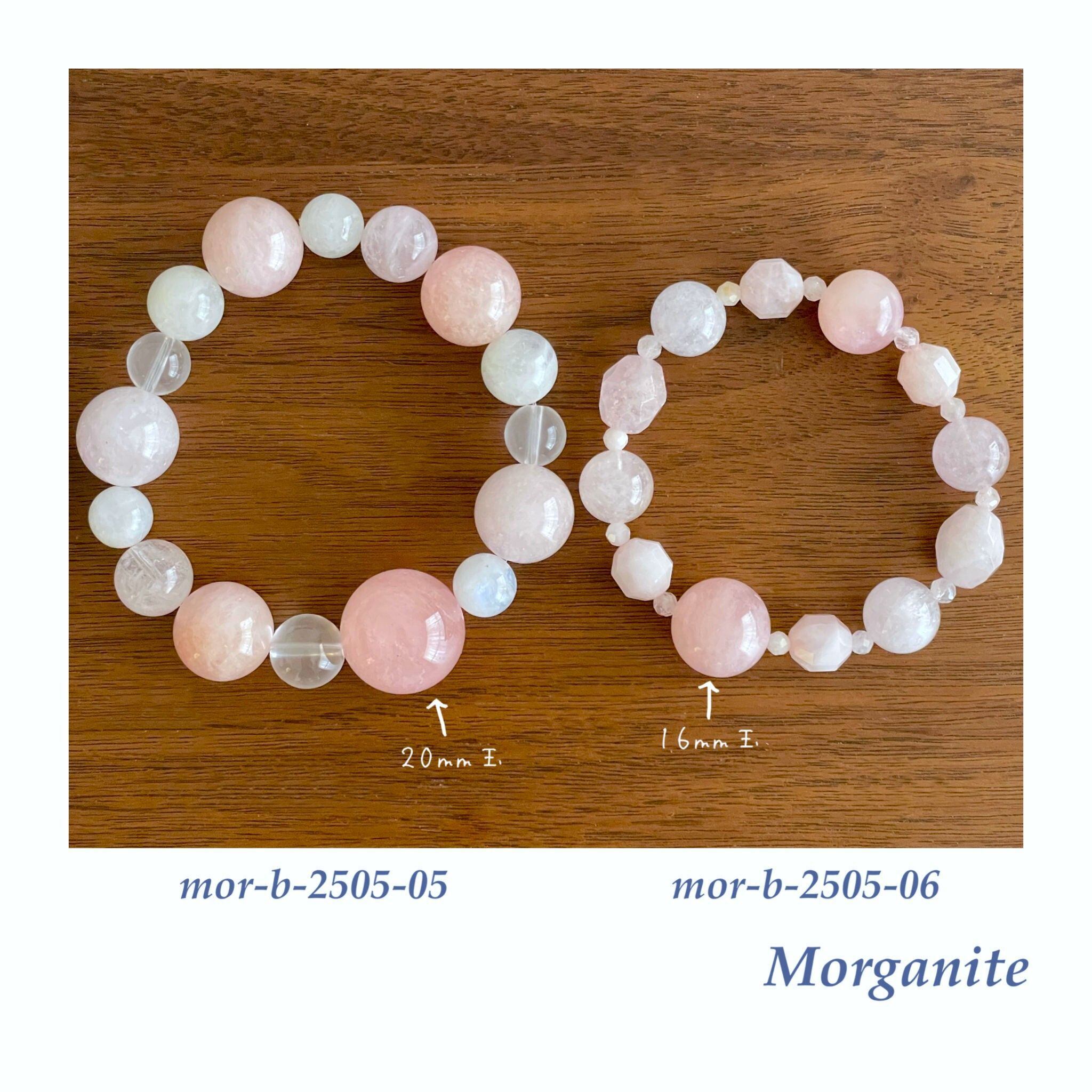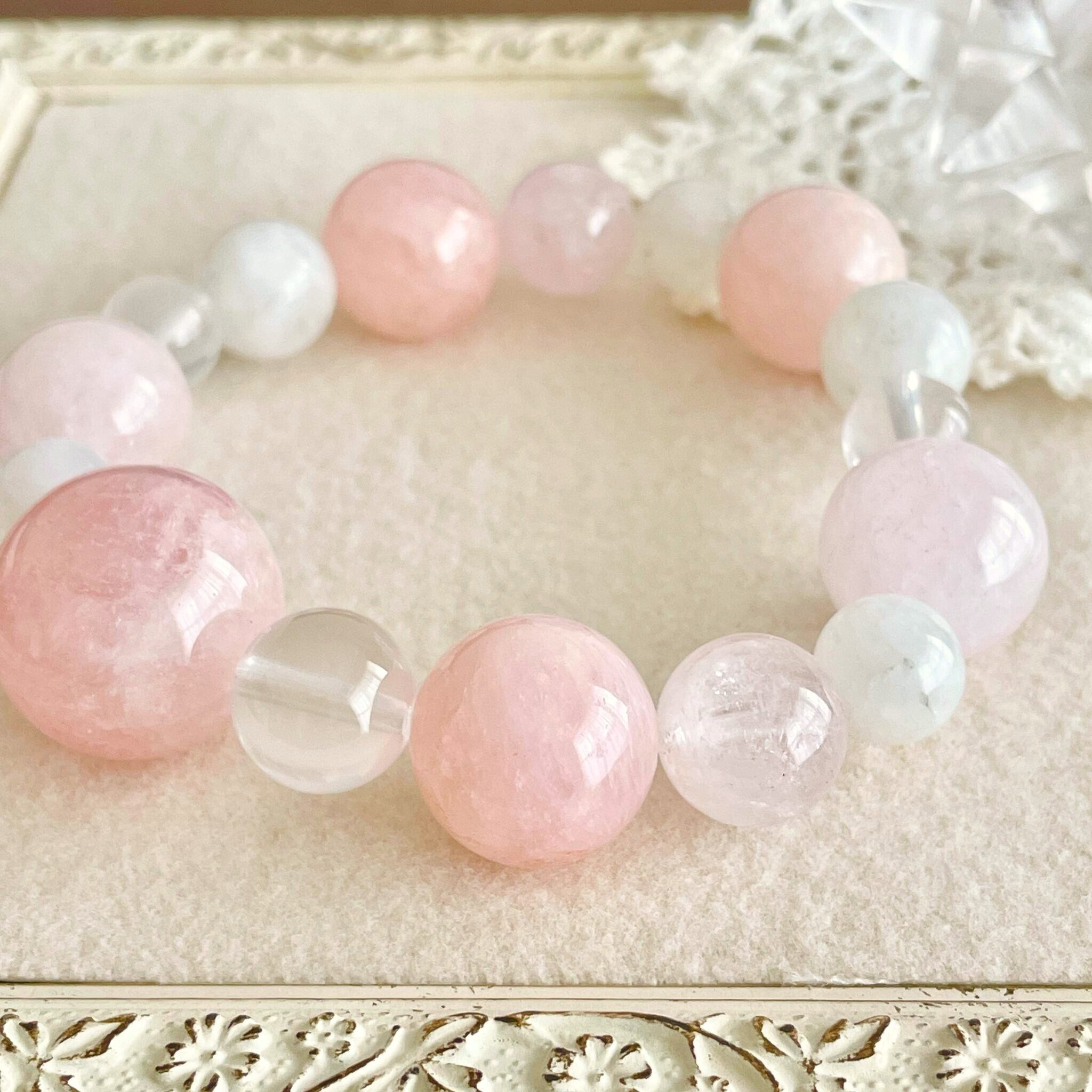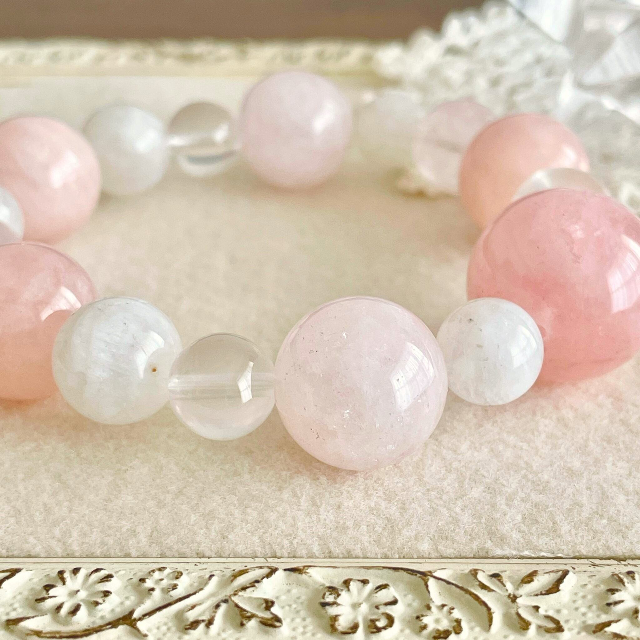 ronde 大玉のモルガナイト+レインボームーンストーン+ミルキークォーツのブレスレット mor-b-2505-05