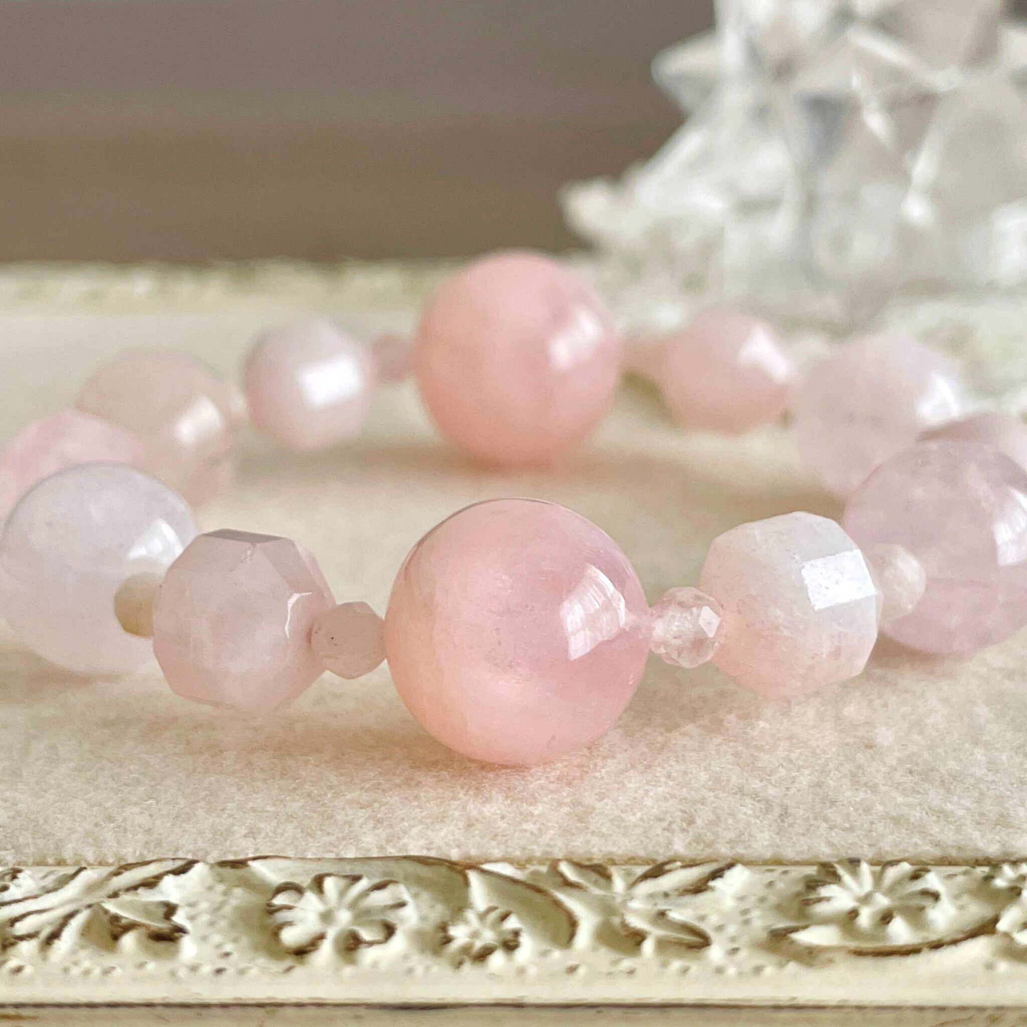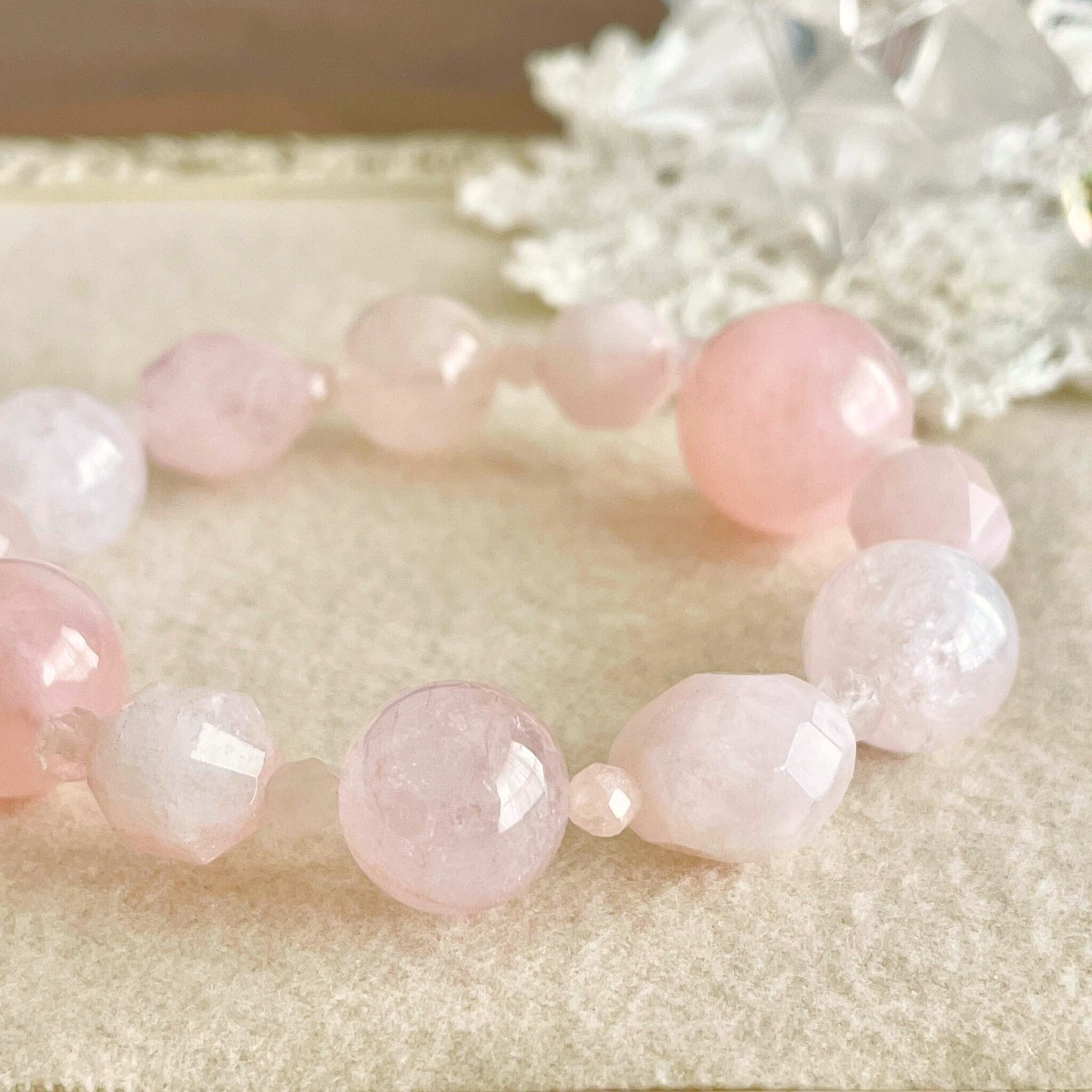 アクアマリンに性質が近くピンク色が心(愛情)に作用することから、幸せな結婚を象徴する、心身ともに女性性を引き出す石だと言われています。色合いや意味の似たローズクォーツよりもっと精神性に目を向けたい方は一度手にしてみてはいかがでしょうか。