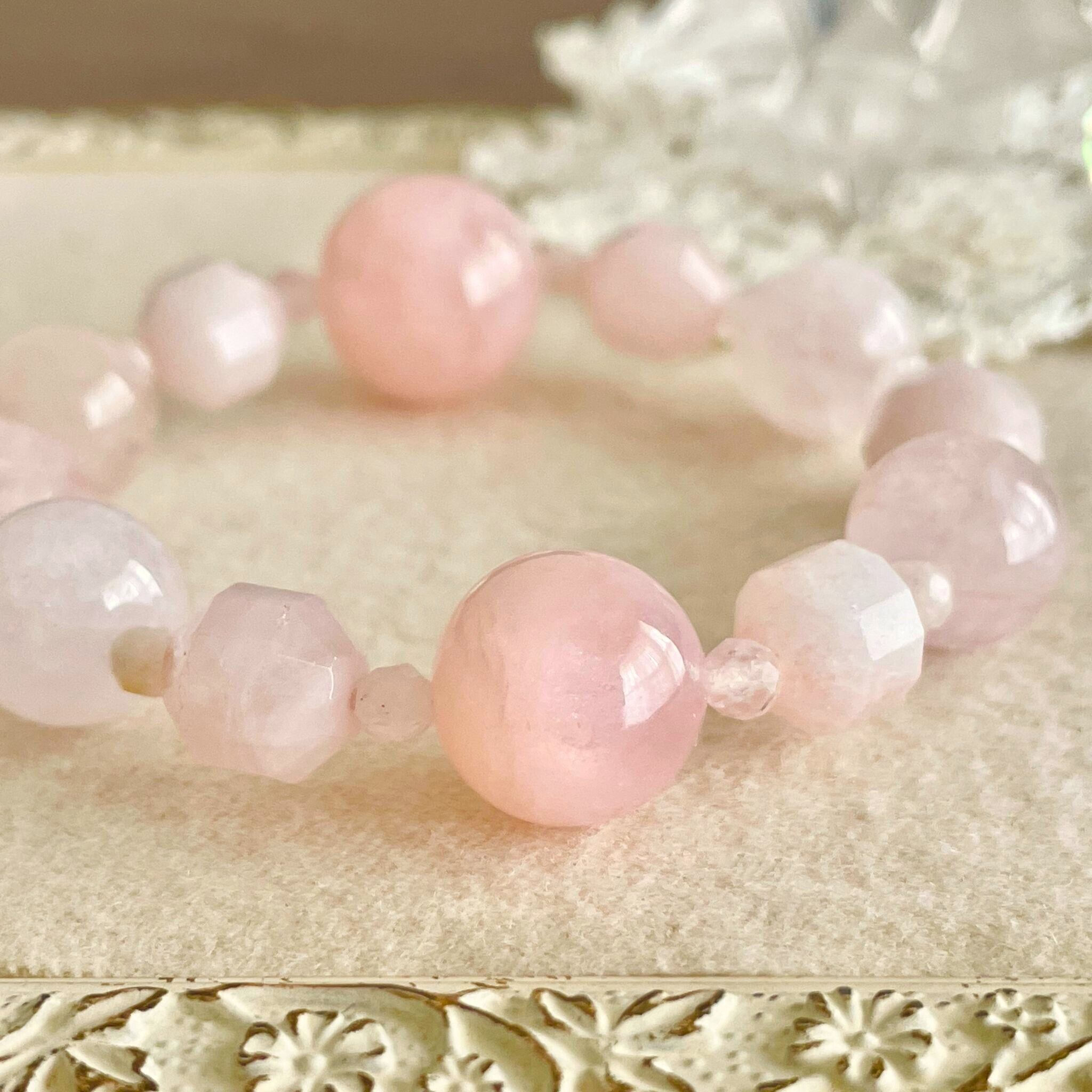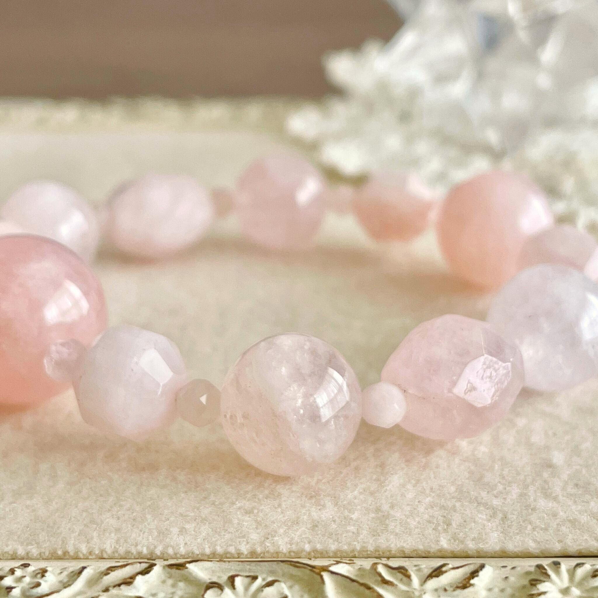 青みのある桜のような淡いピンクからオレンジ色に近いピーチ色まで、色幅のある石です。