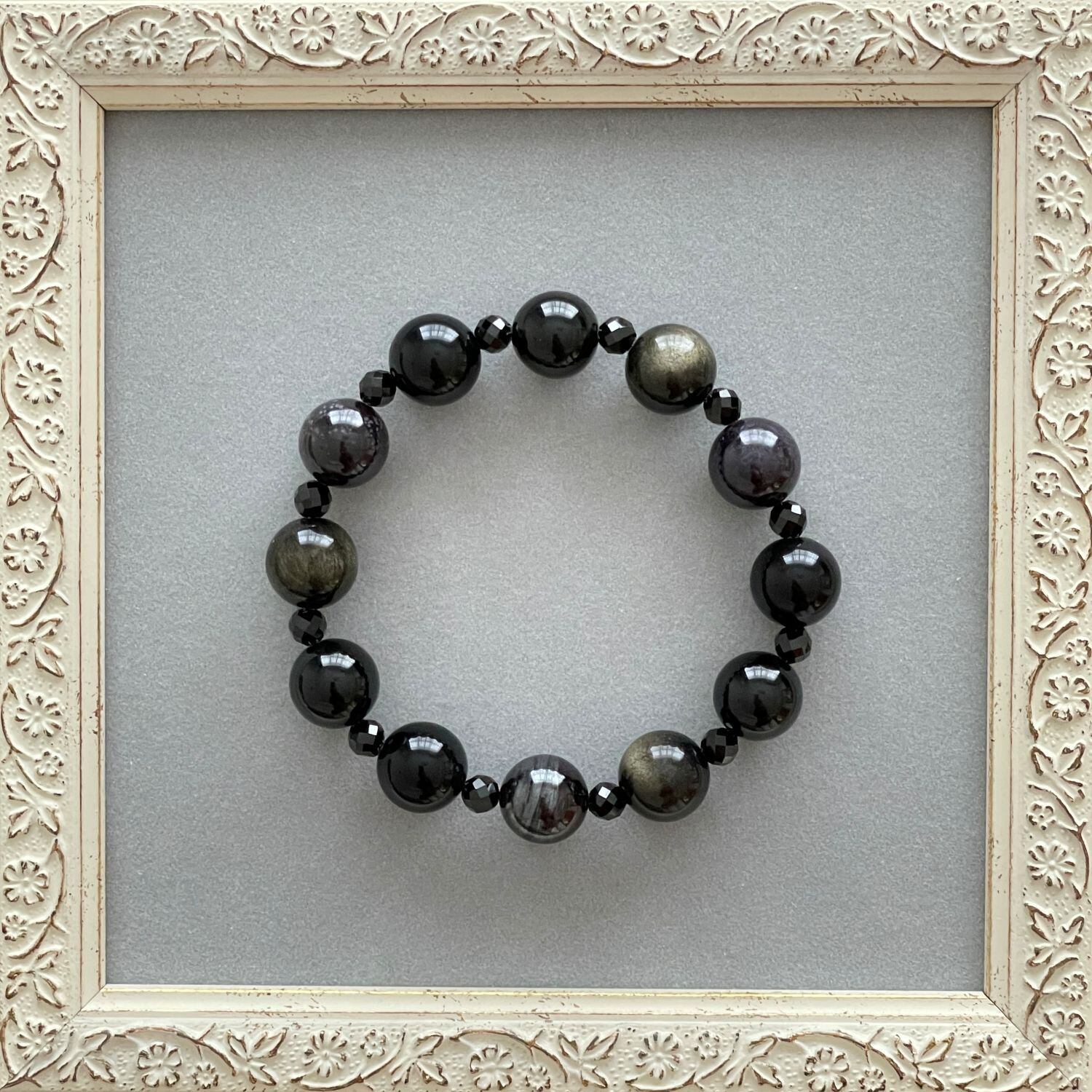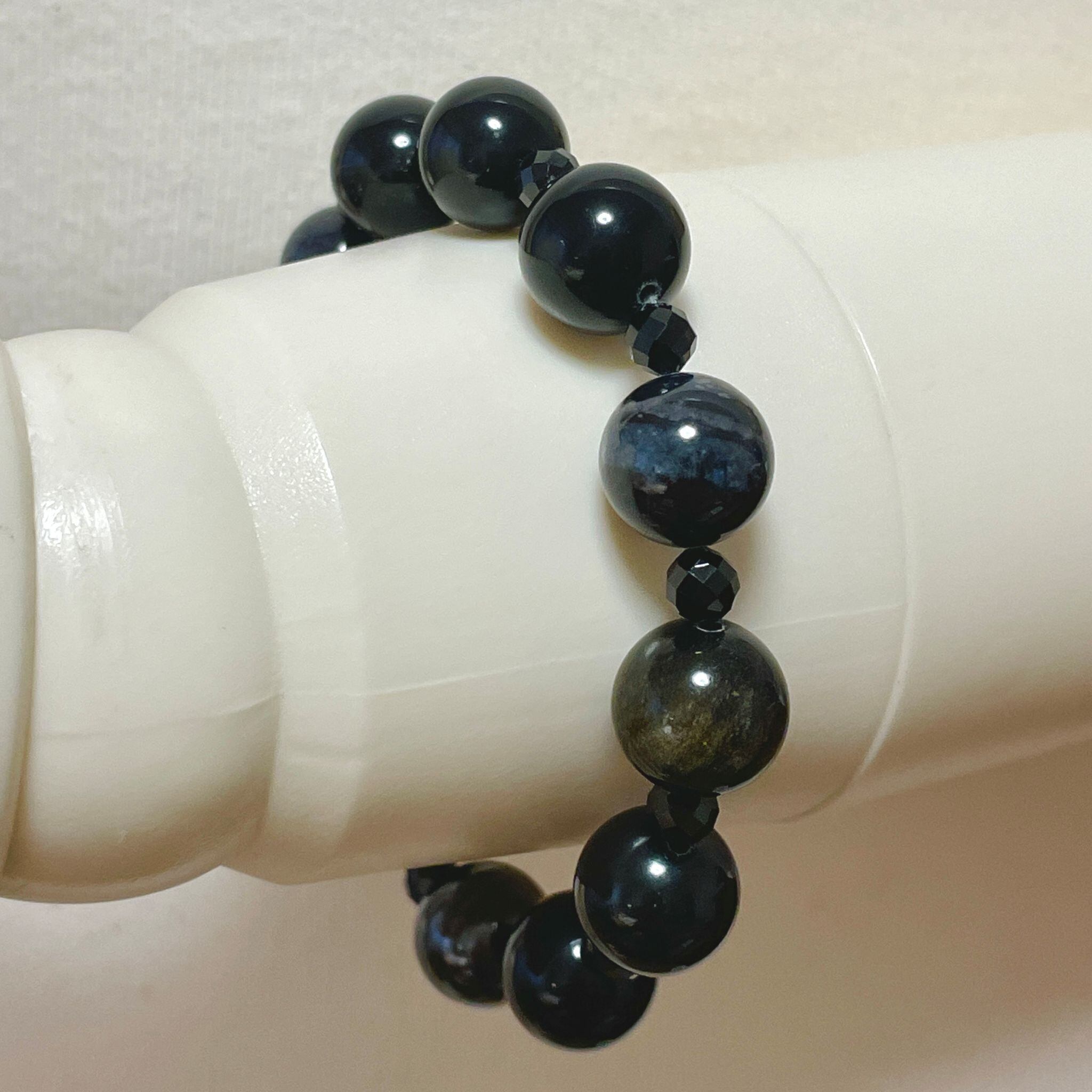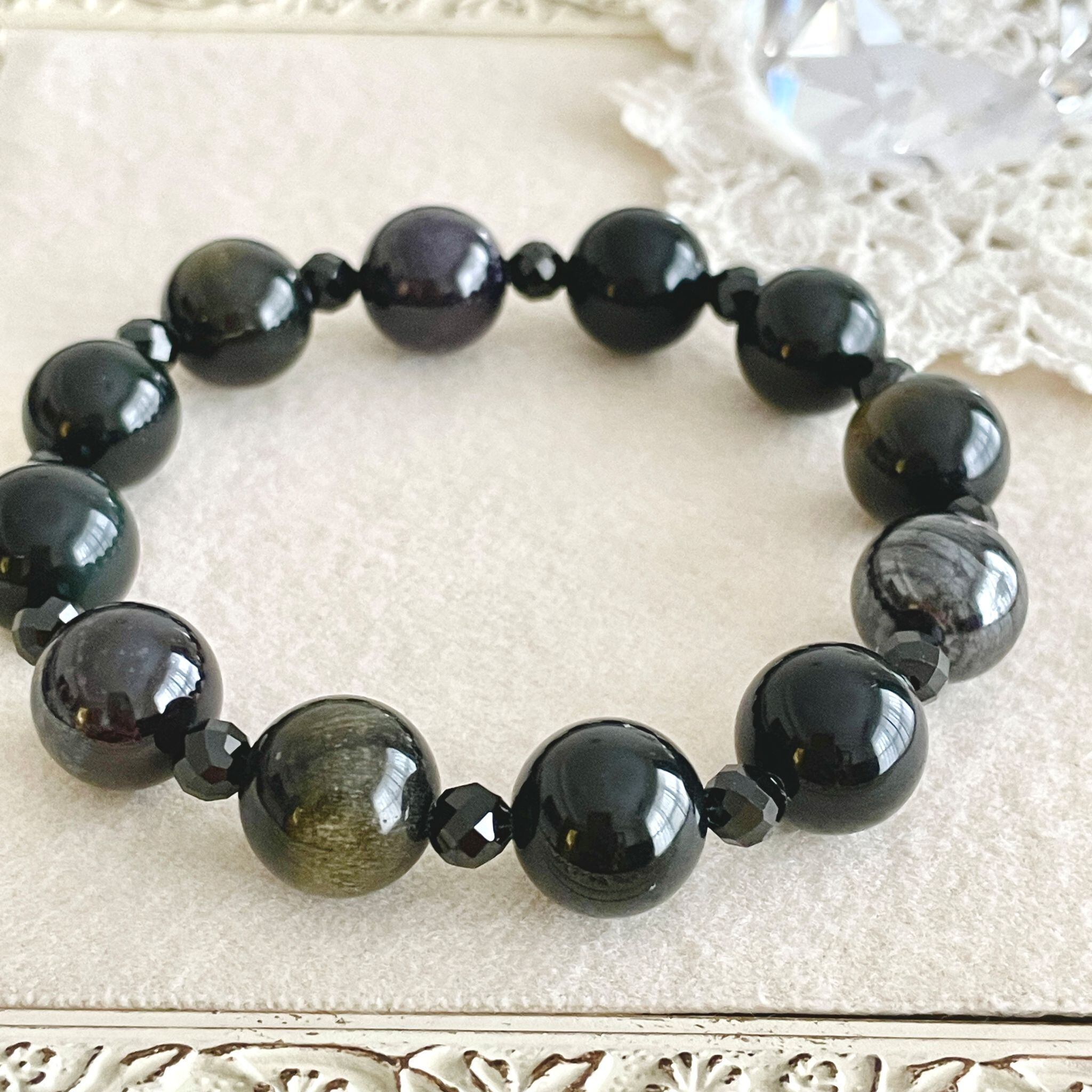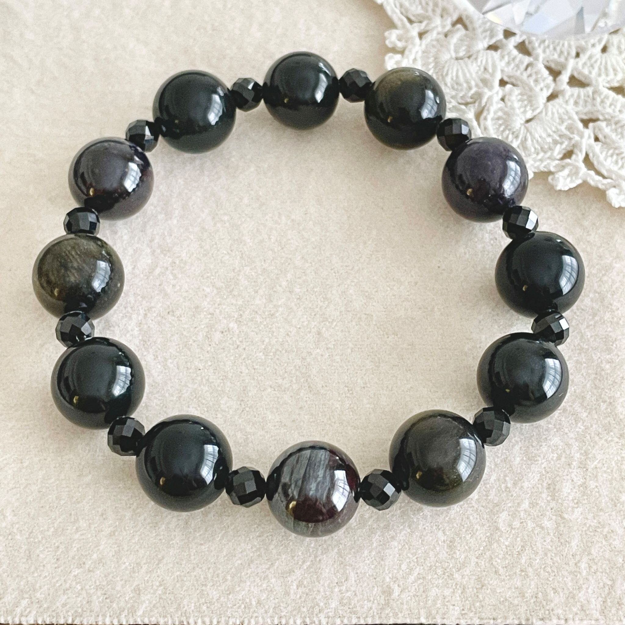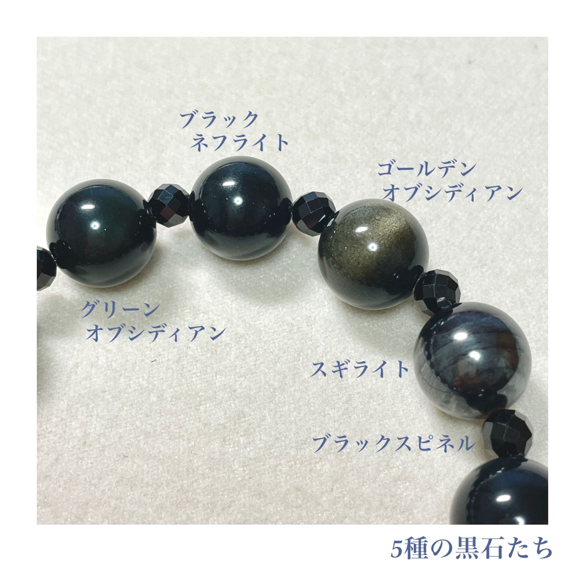 黒色の石たちを集めてシンプルなデザインのブレスレットにしました。