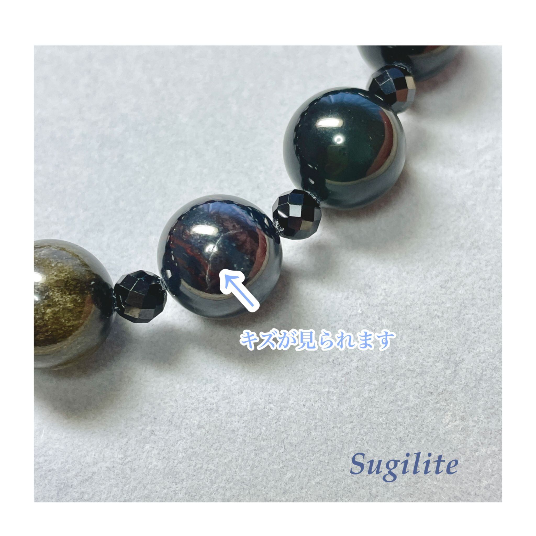 色や形、内包物(インクルージョン)、ひび(クラック)、光り方(例:シラー効果)など石由来のもの、カットや穴の位置によってそれぞれ表情が違います。なかにはカット時の機械によるキズのあるものもございます。その点ご留意下さいますよう願います。