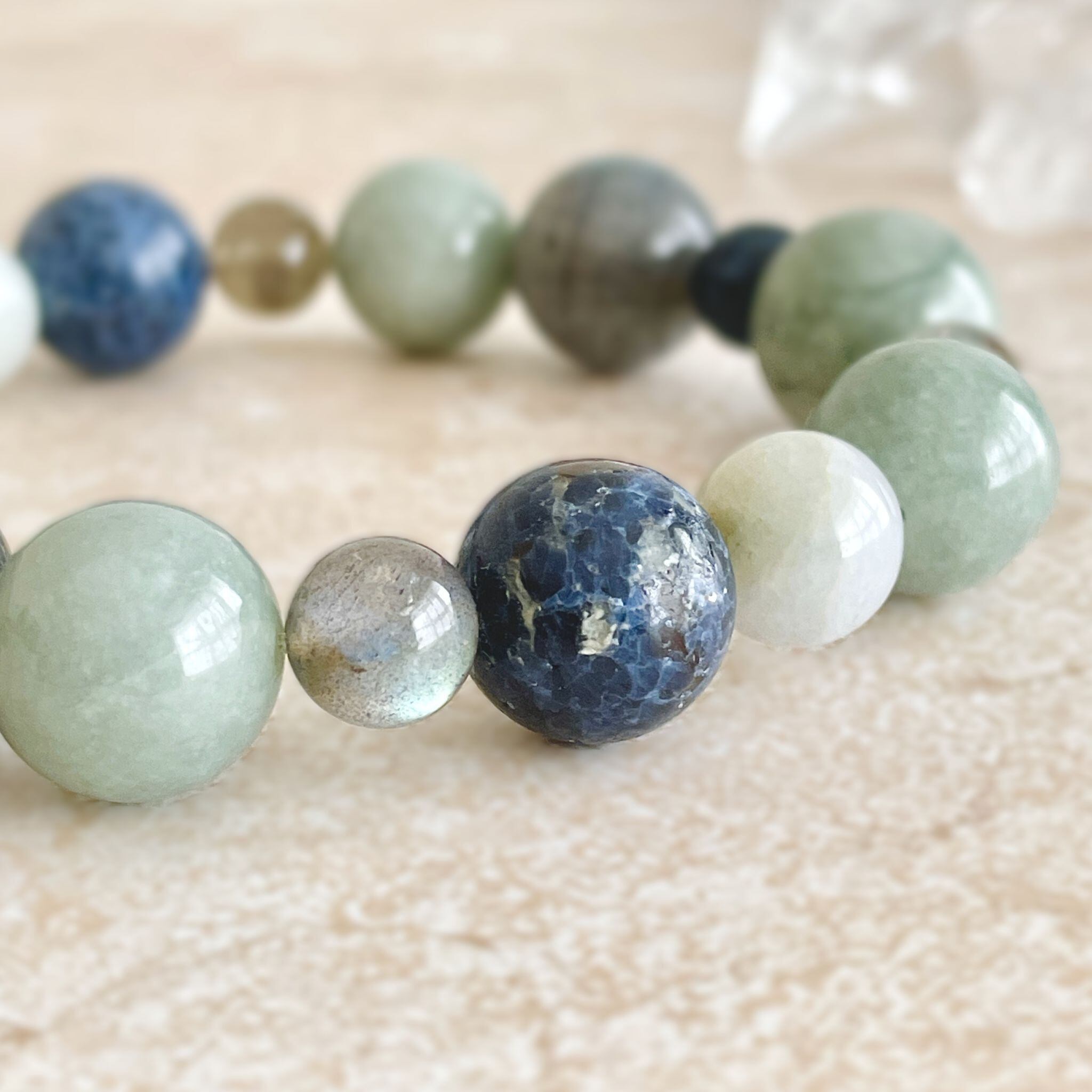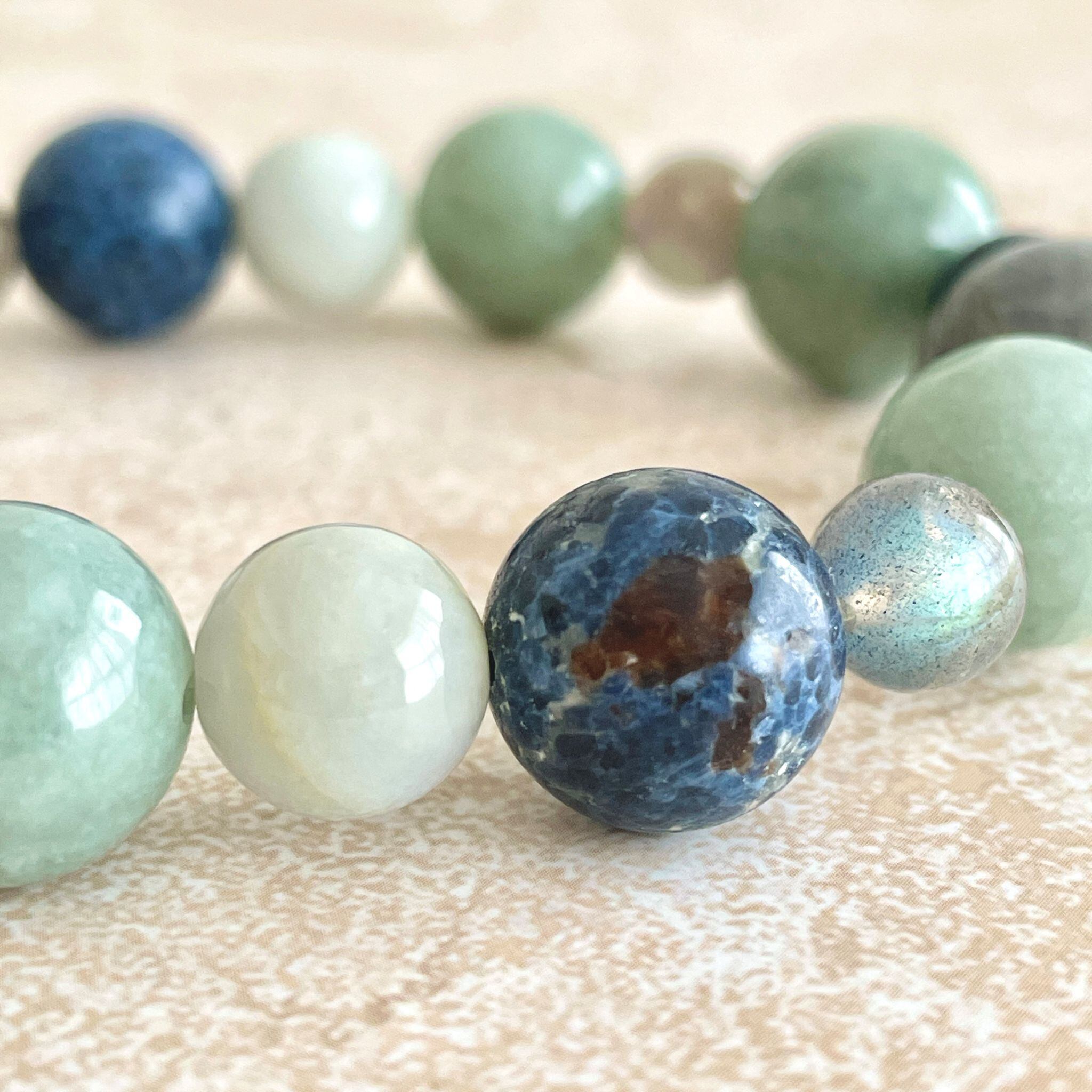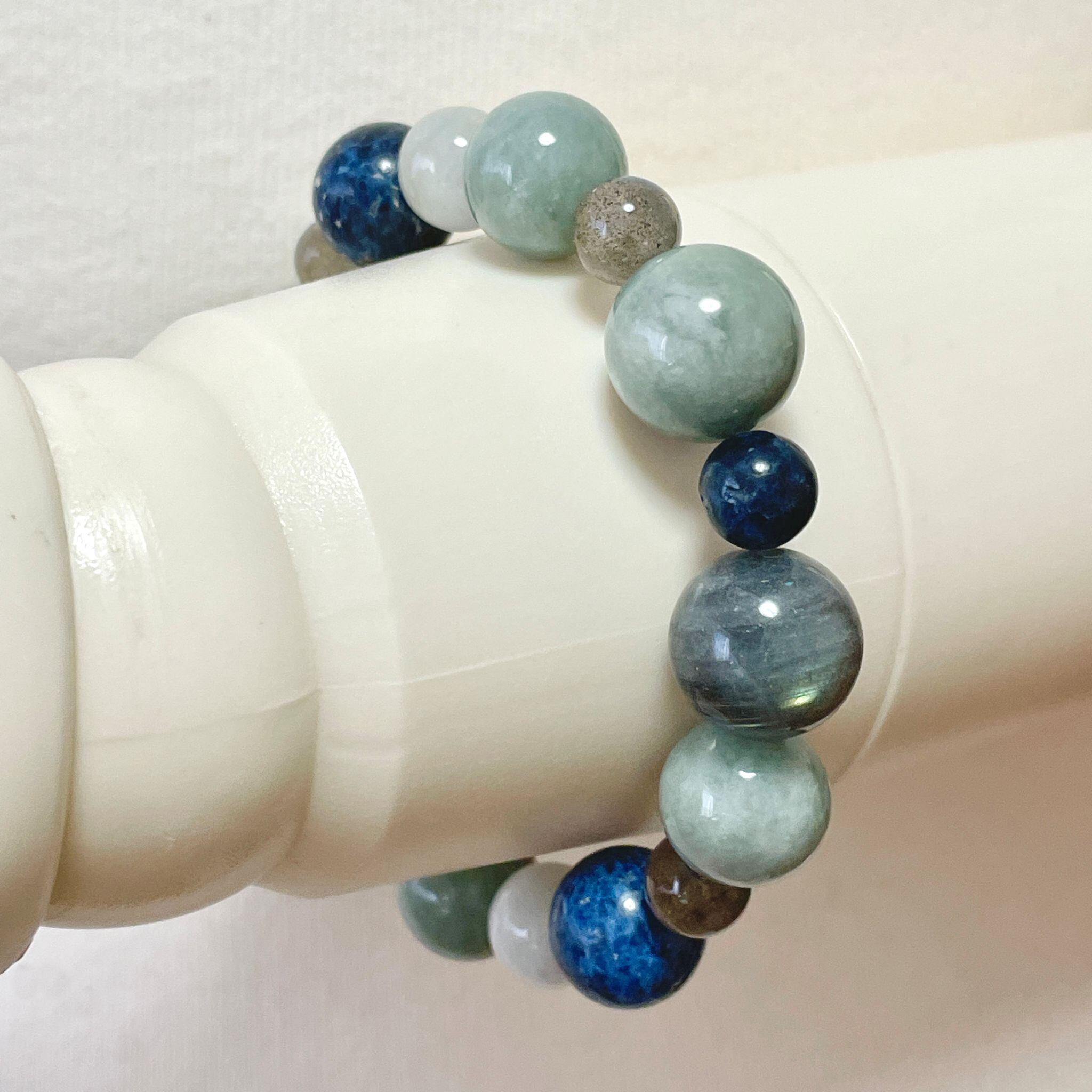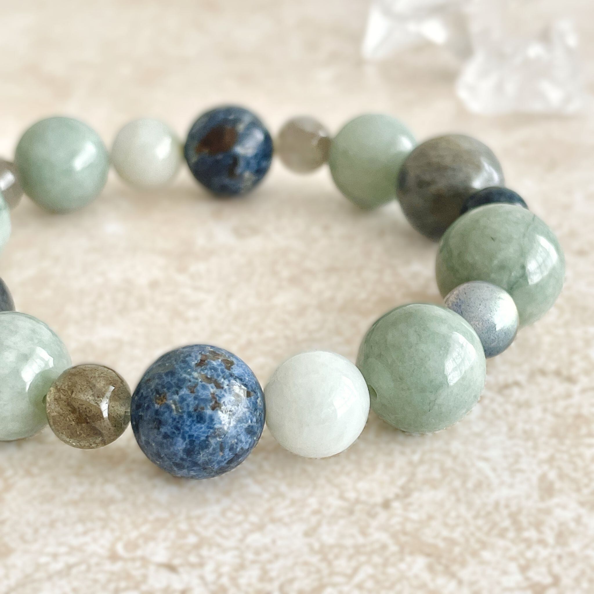 ronde ジェダイト(翡翠)+ラブラドライト+ブルースピネルのブレスレット jad-b-2508-04