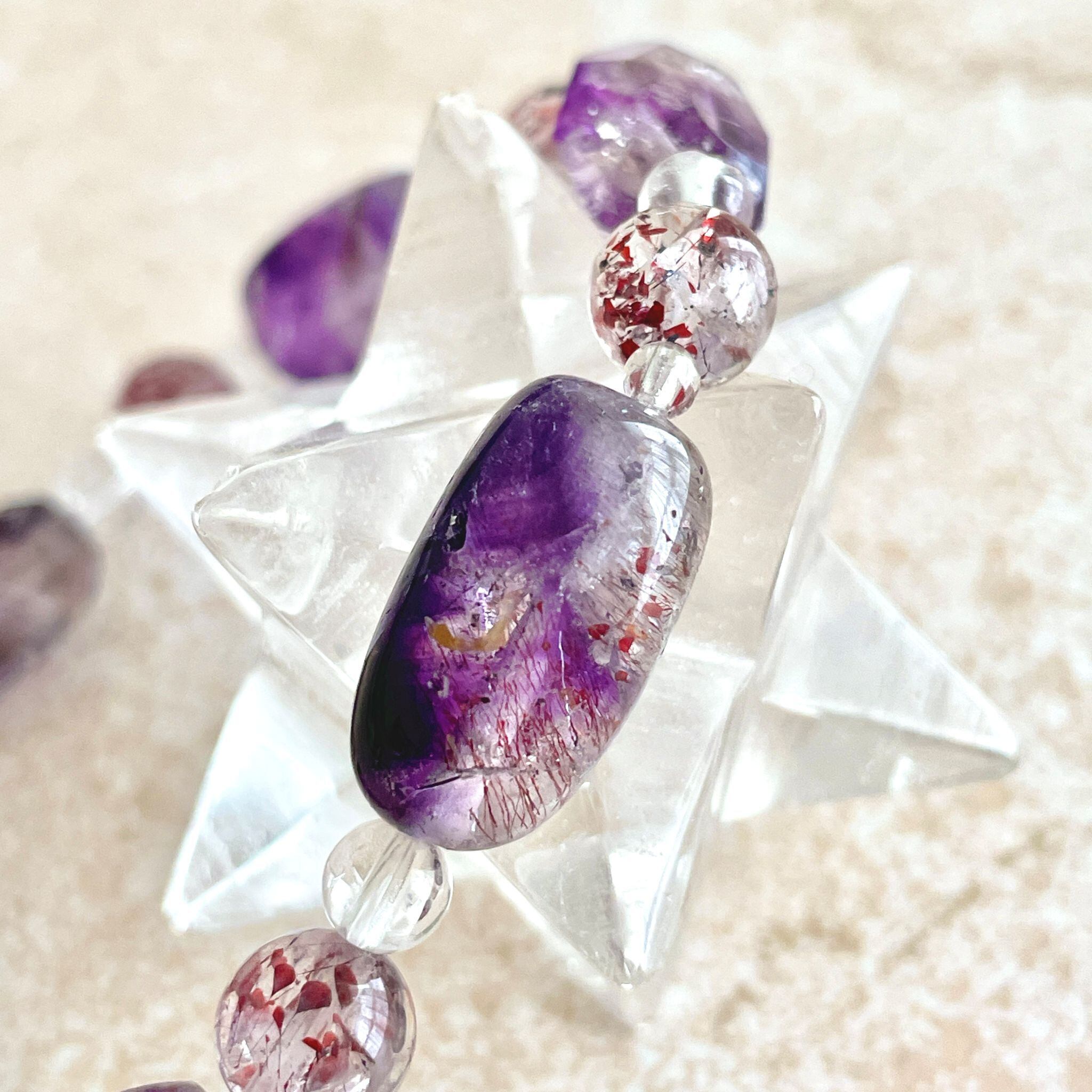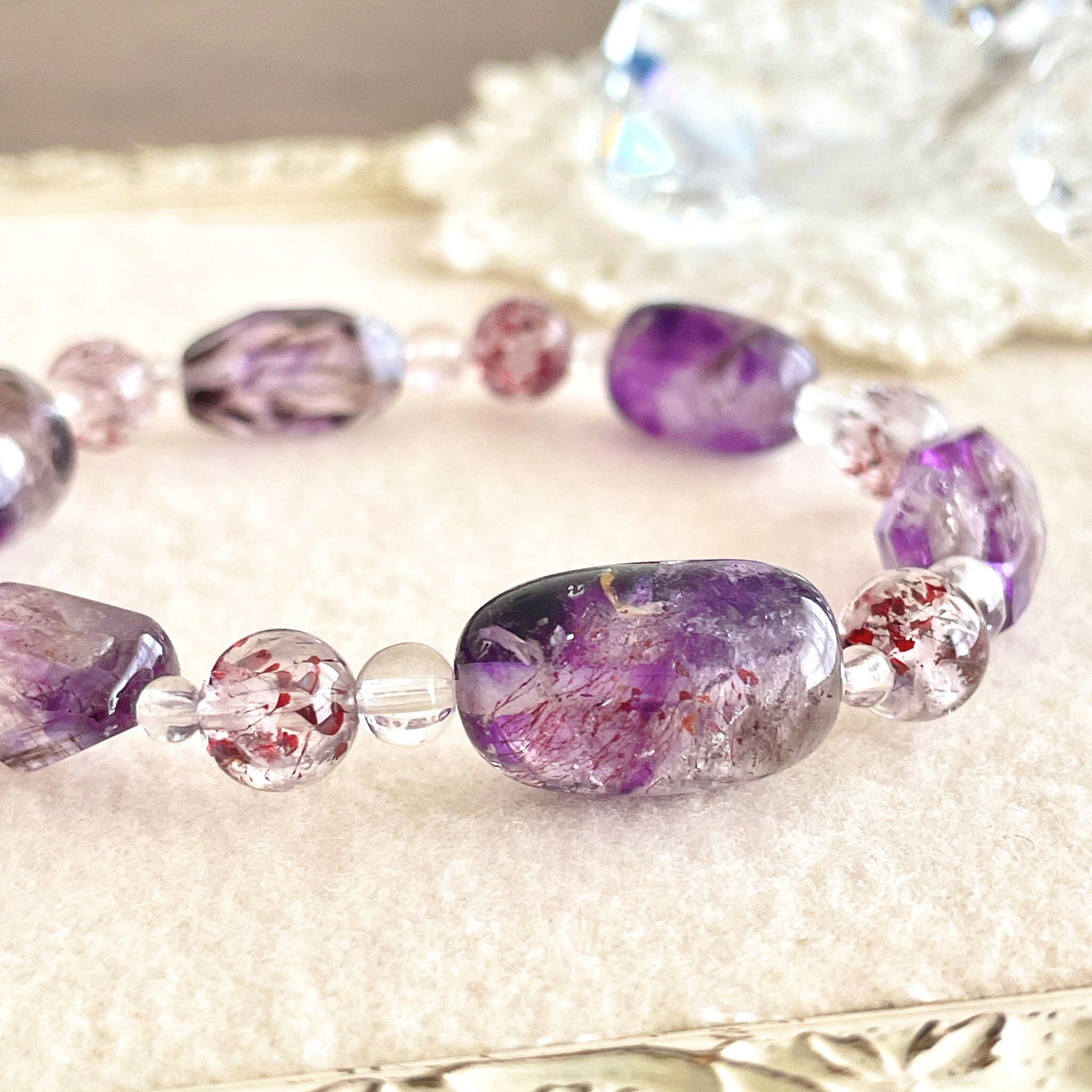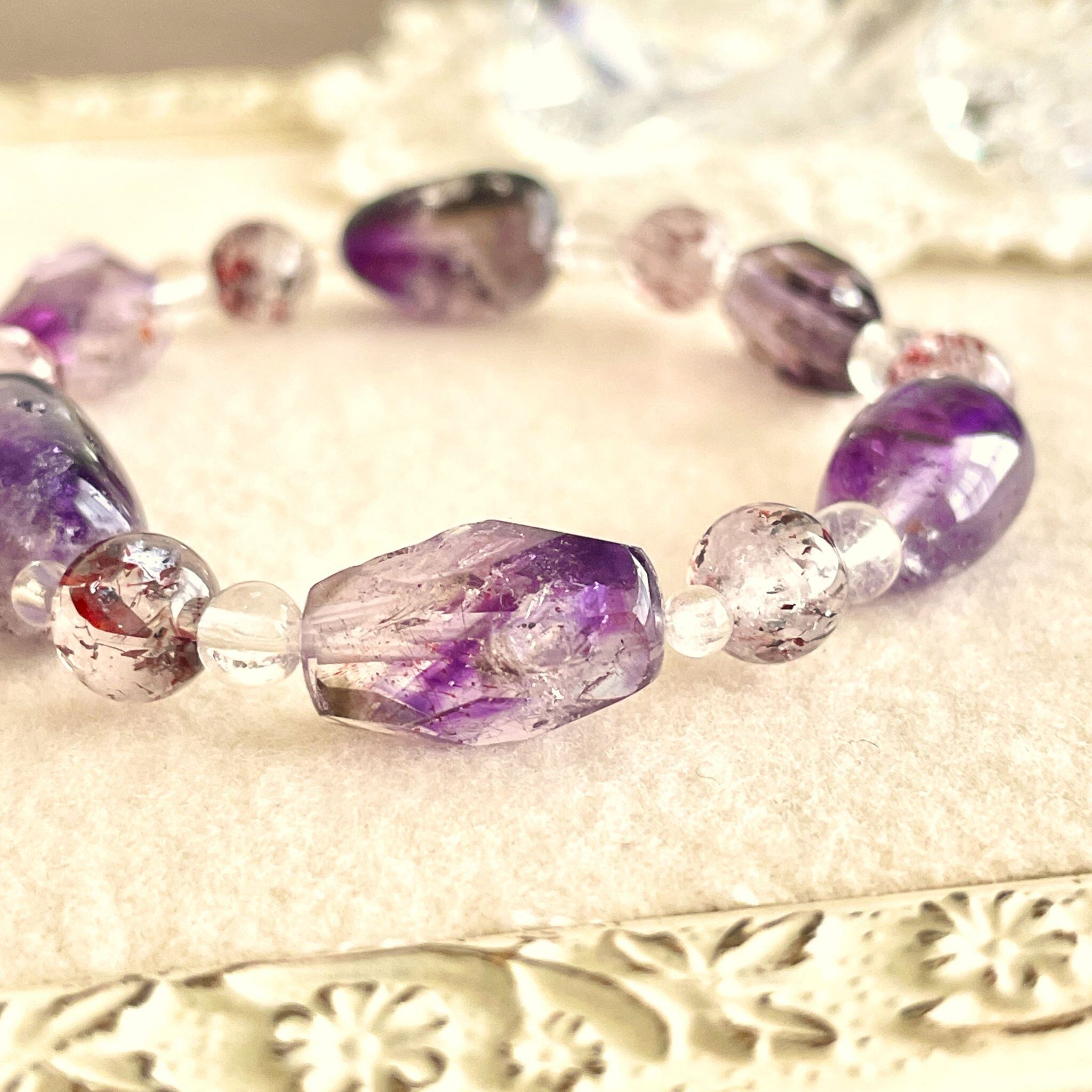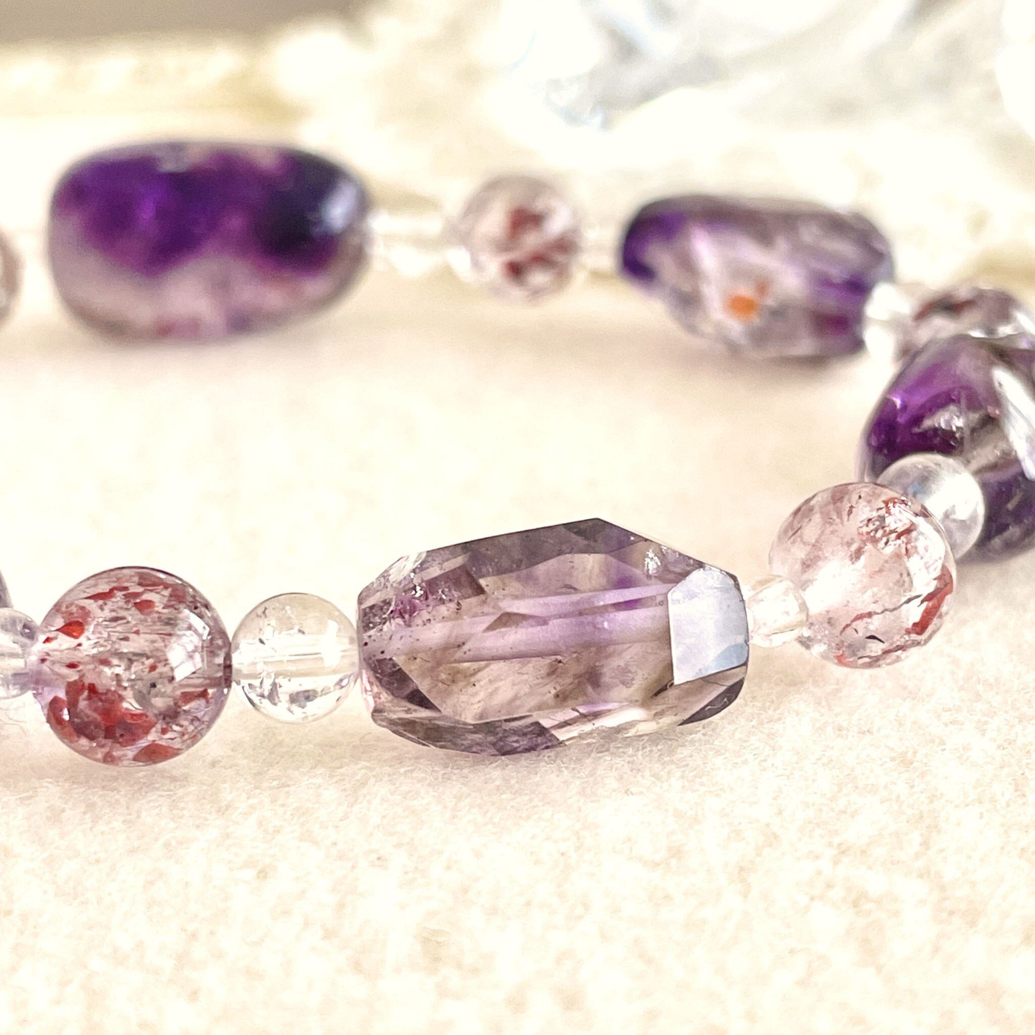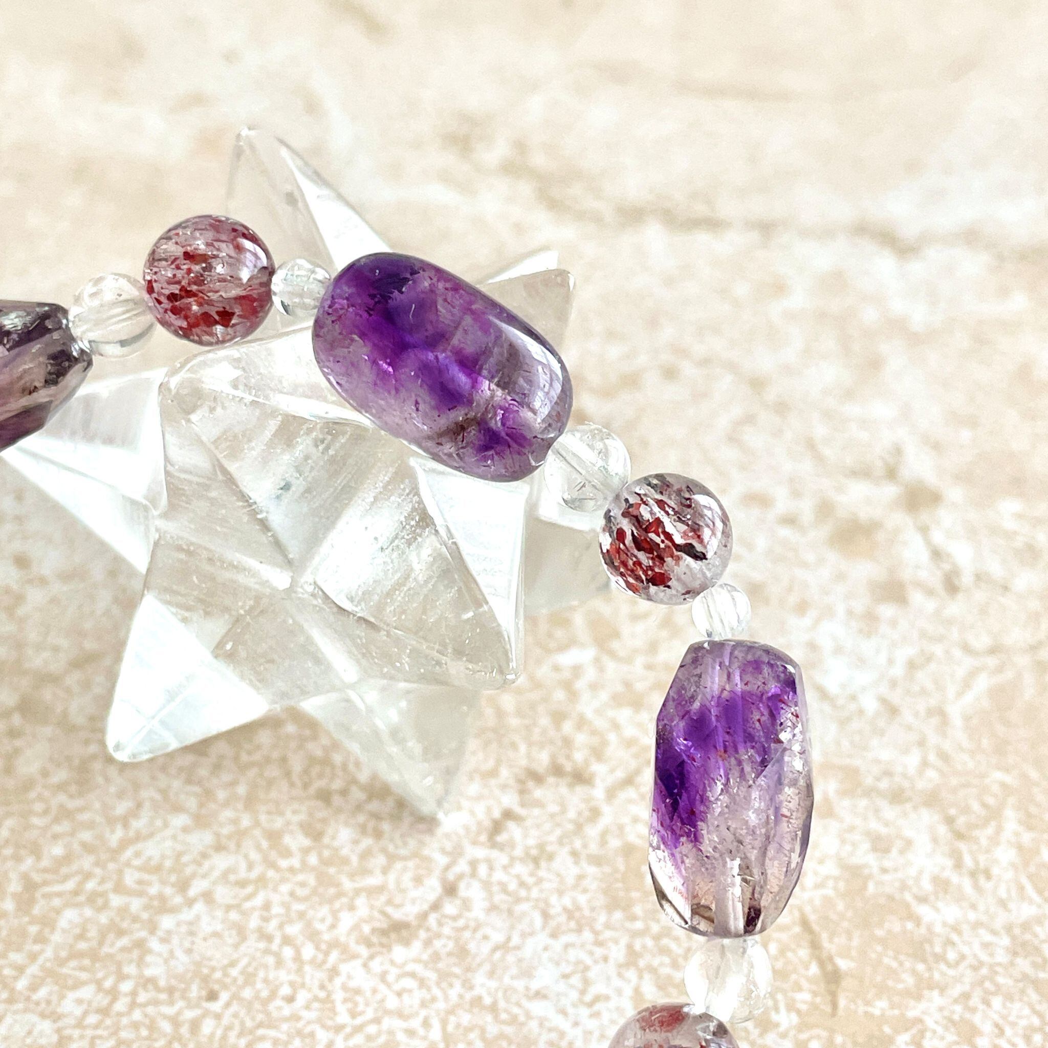 アメシストが印象的なエレスチャルクォーツは、