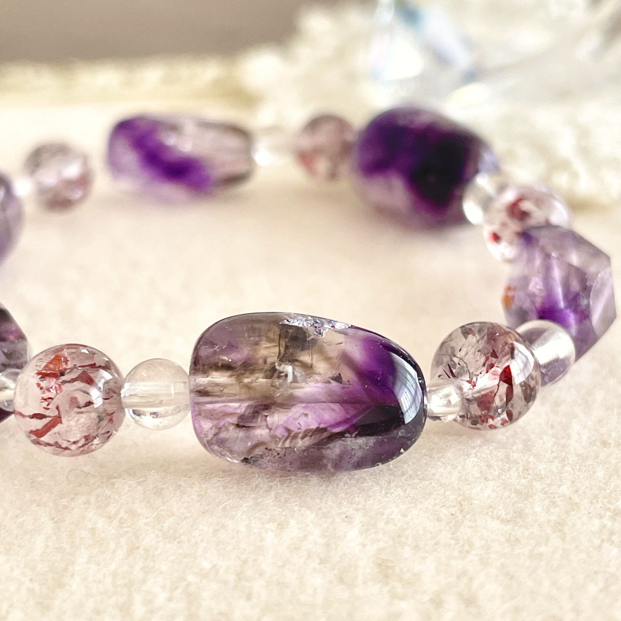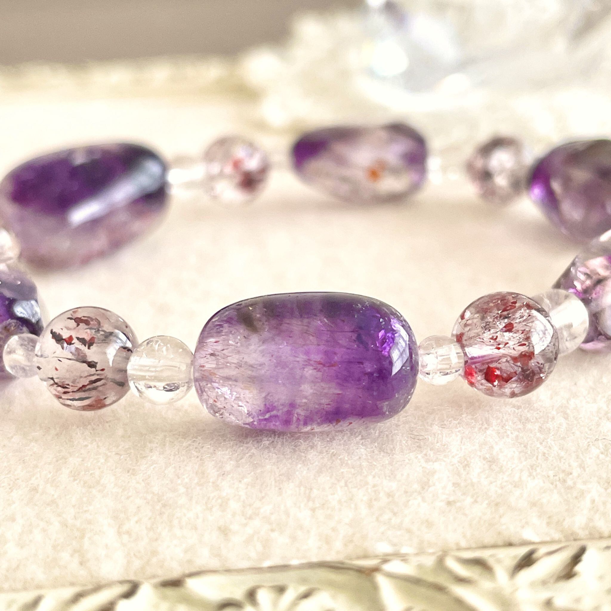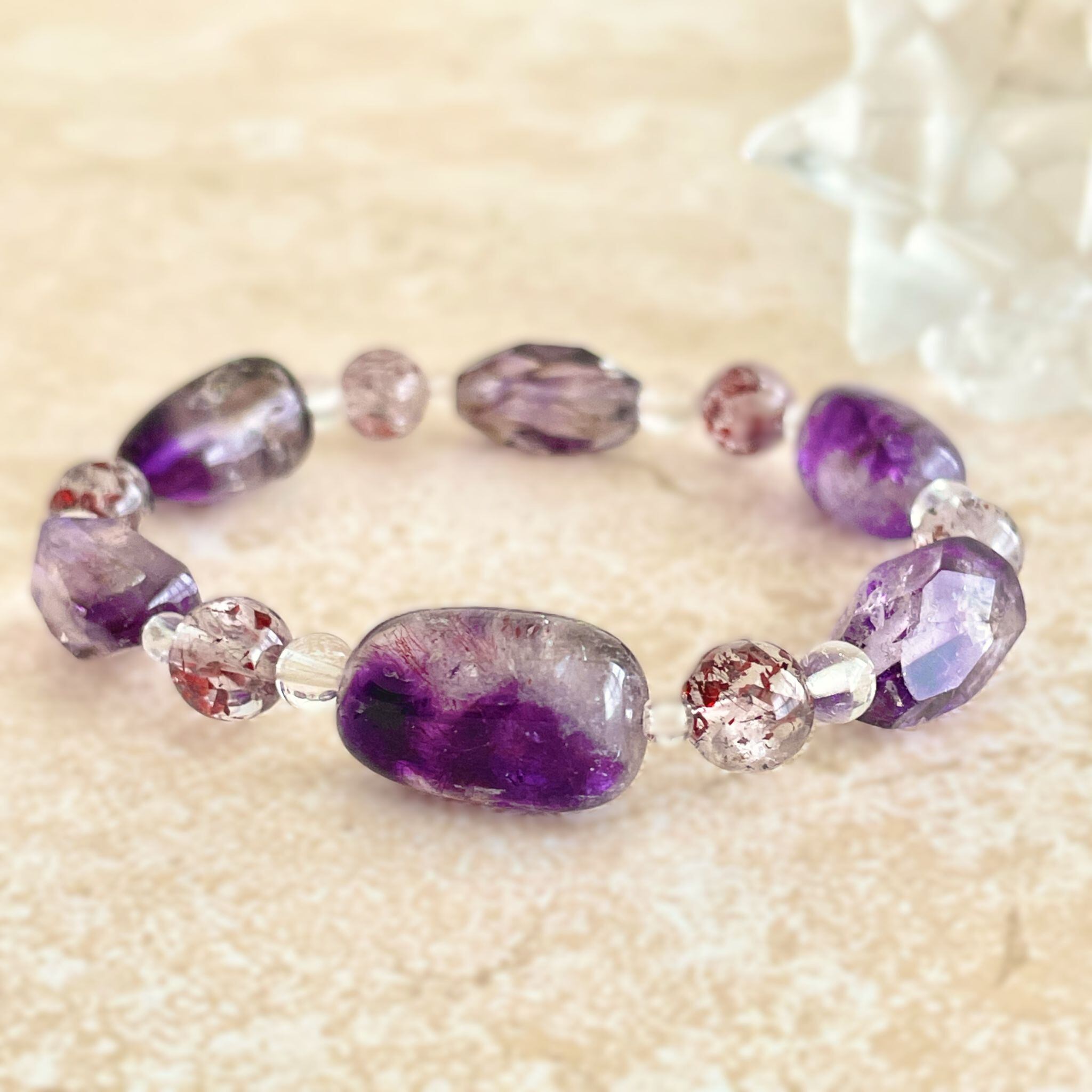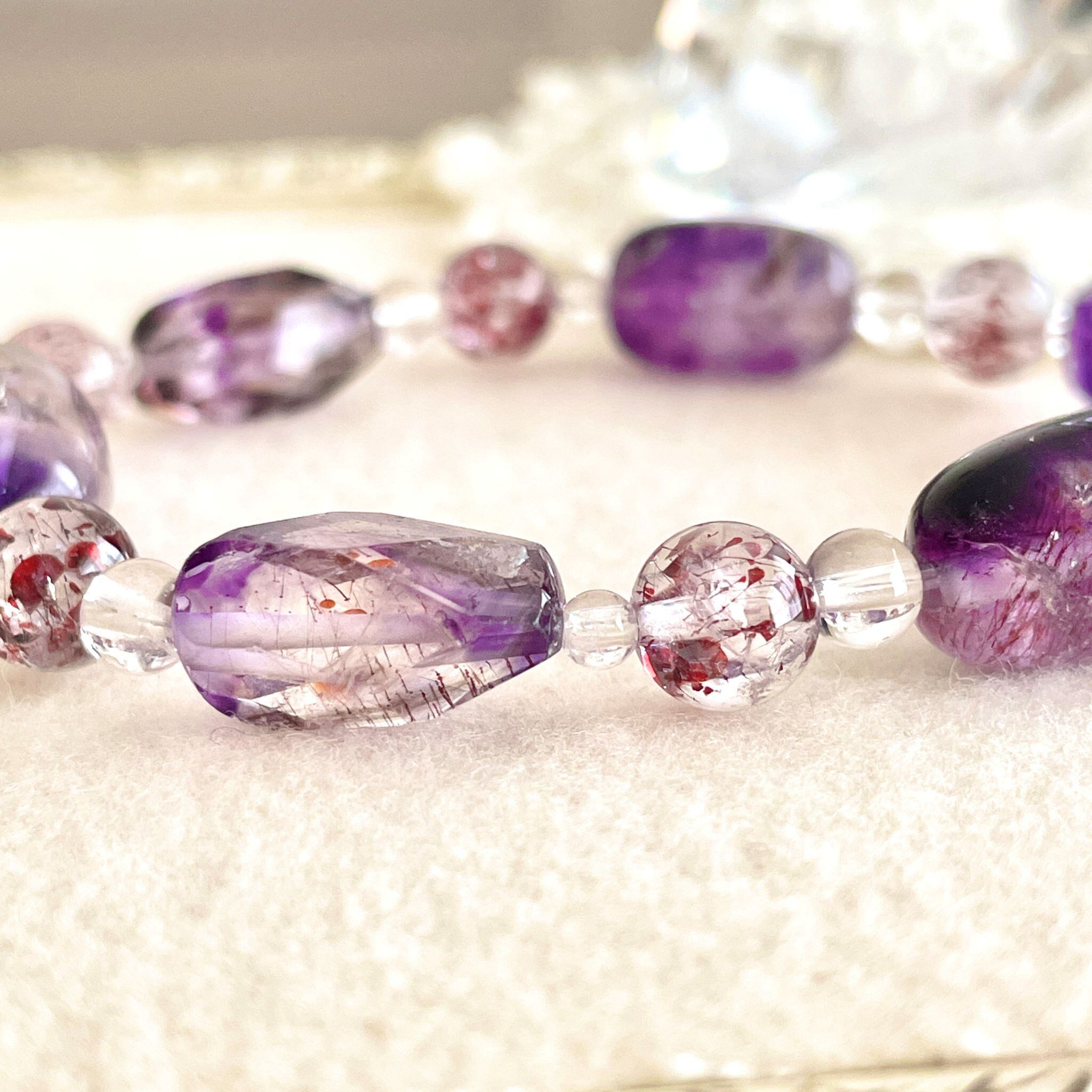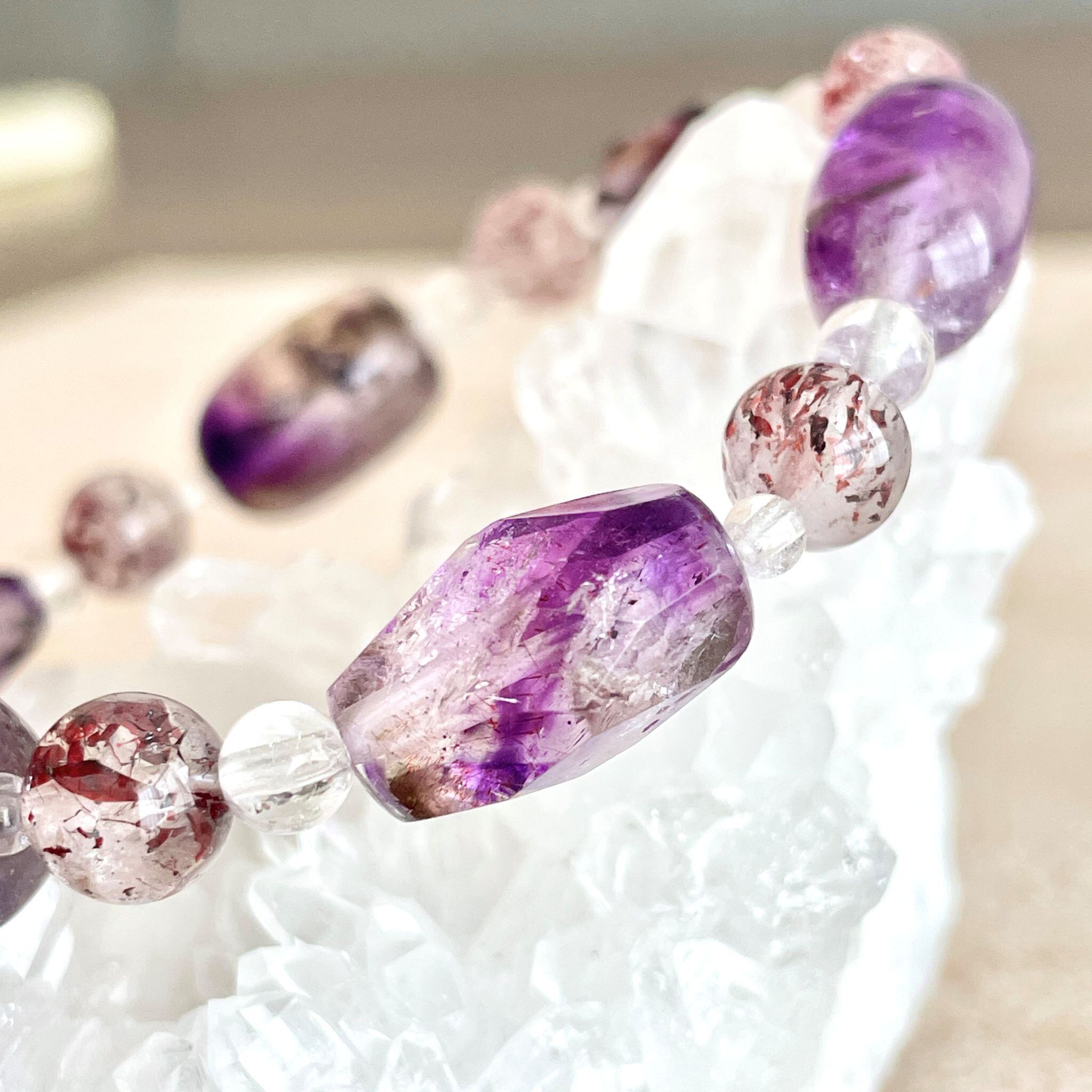 アメシストが印象的なエレスチャルクォーツは、