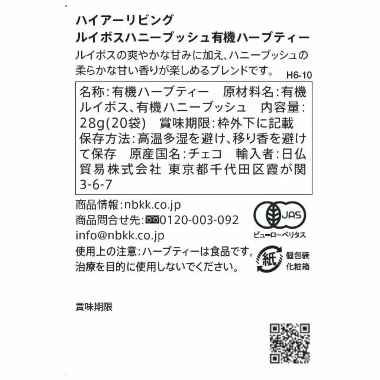 オーガニックハーブティー HIGHER LIVING(ハイアーリビング) ~ルイボス ハニーブッシュ~