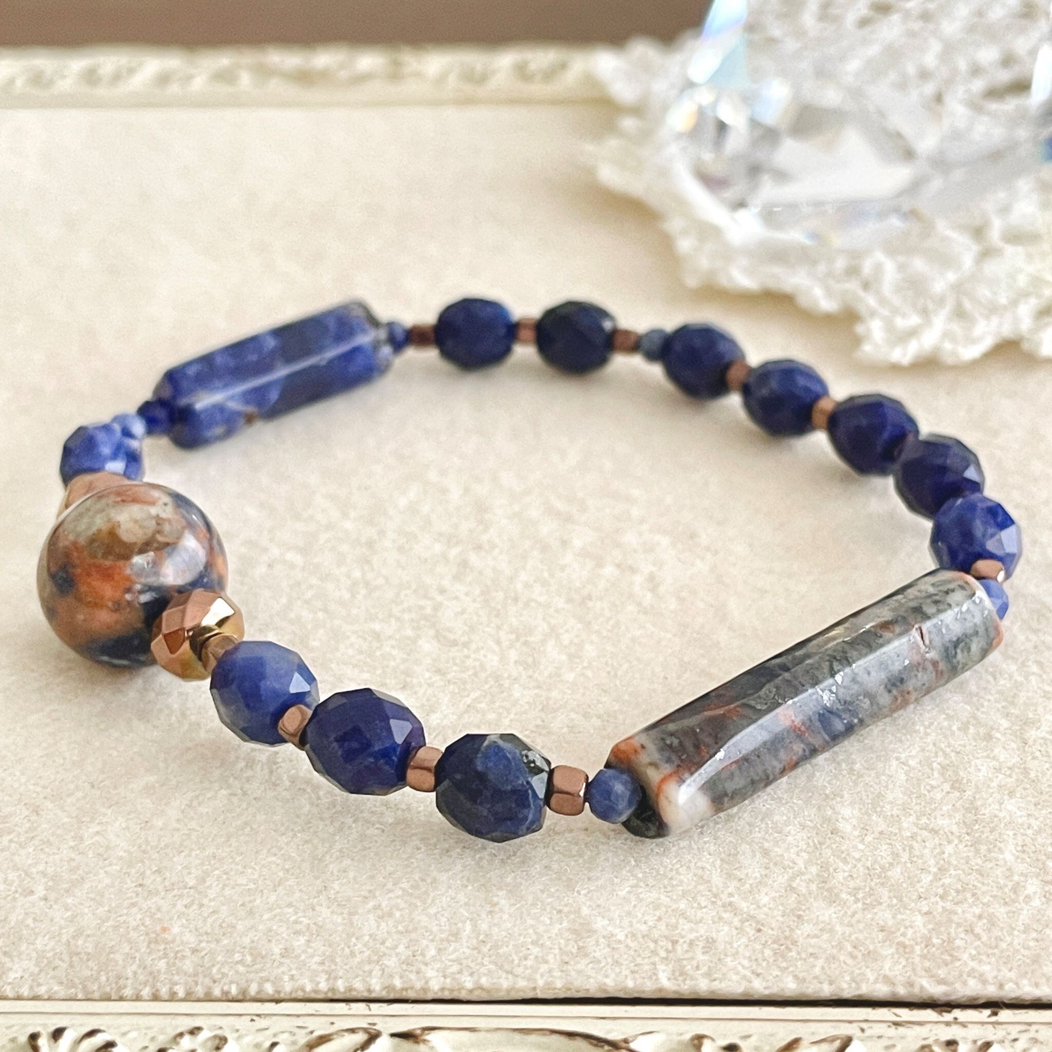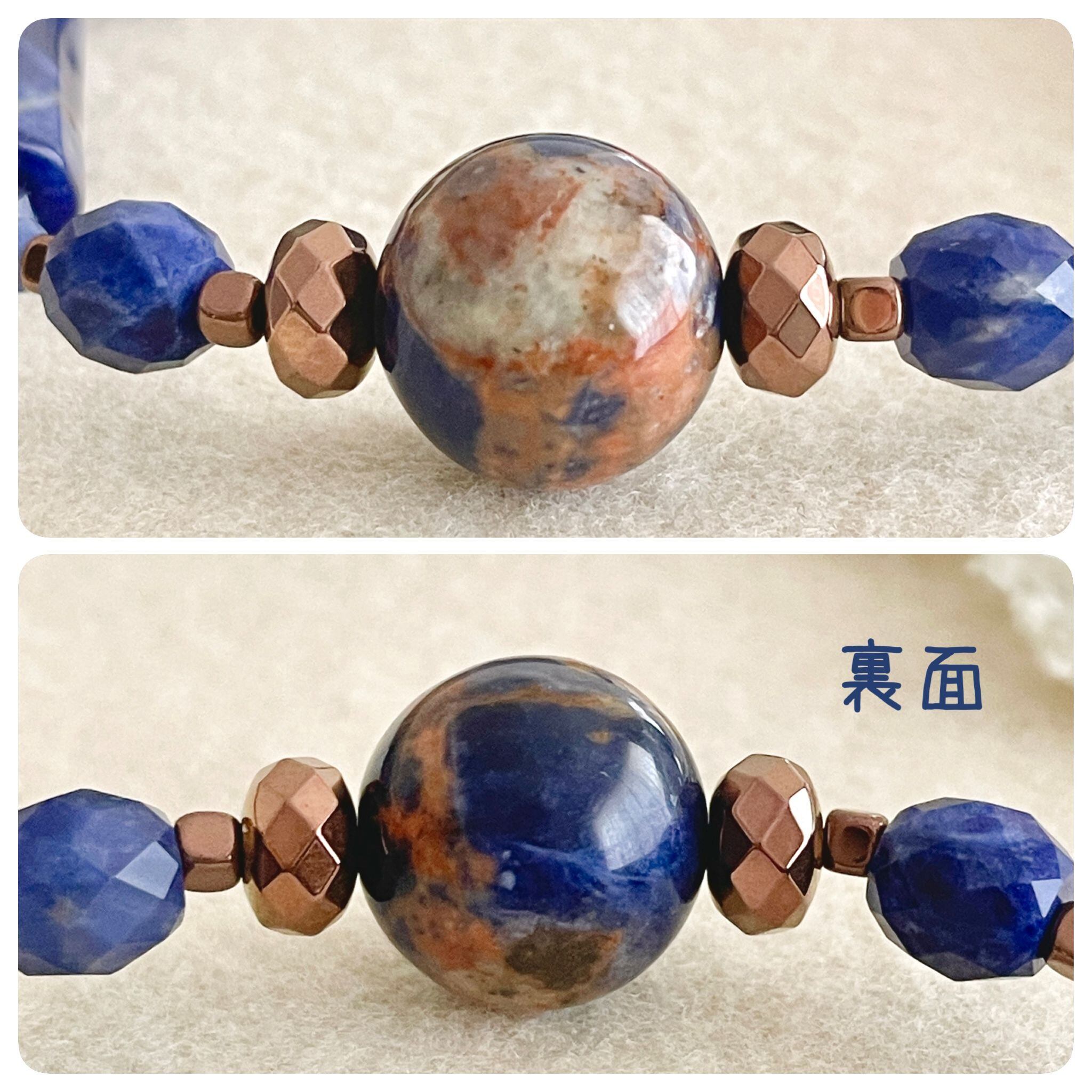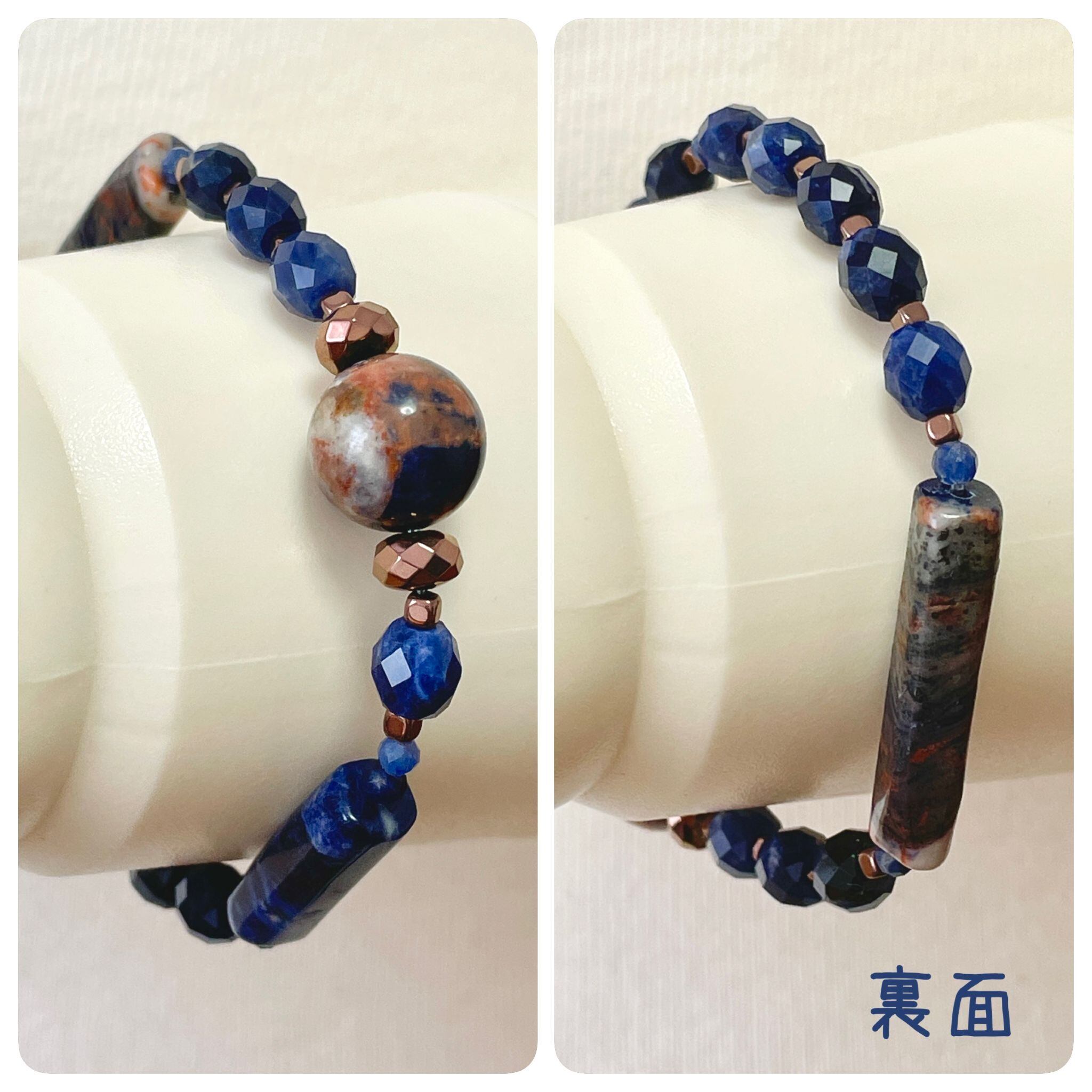 その柄が活きるよう、濃紺のソーダライトたちで全体をまとめました。