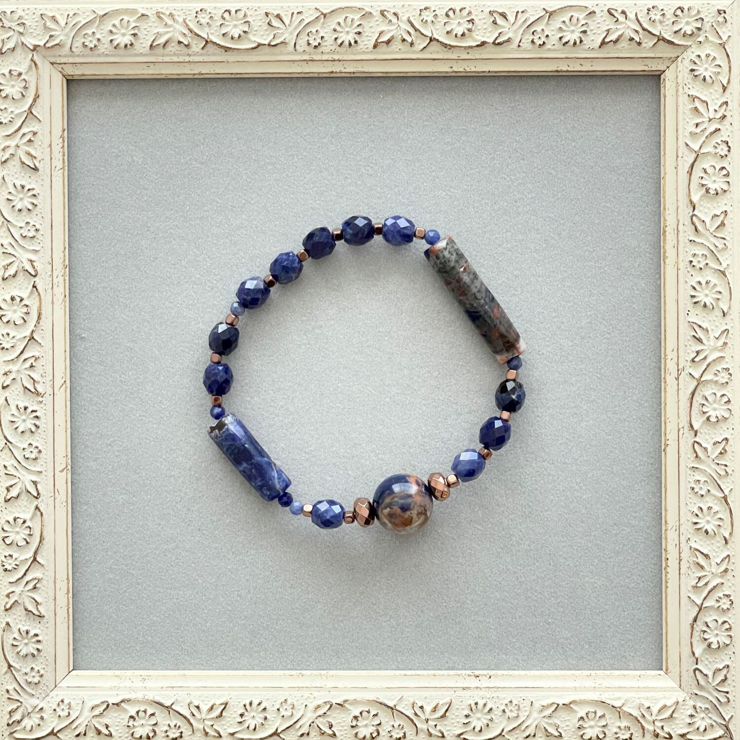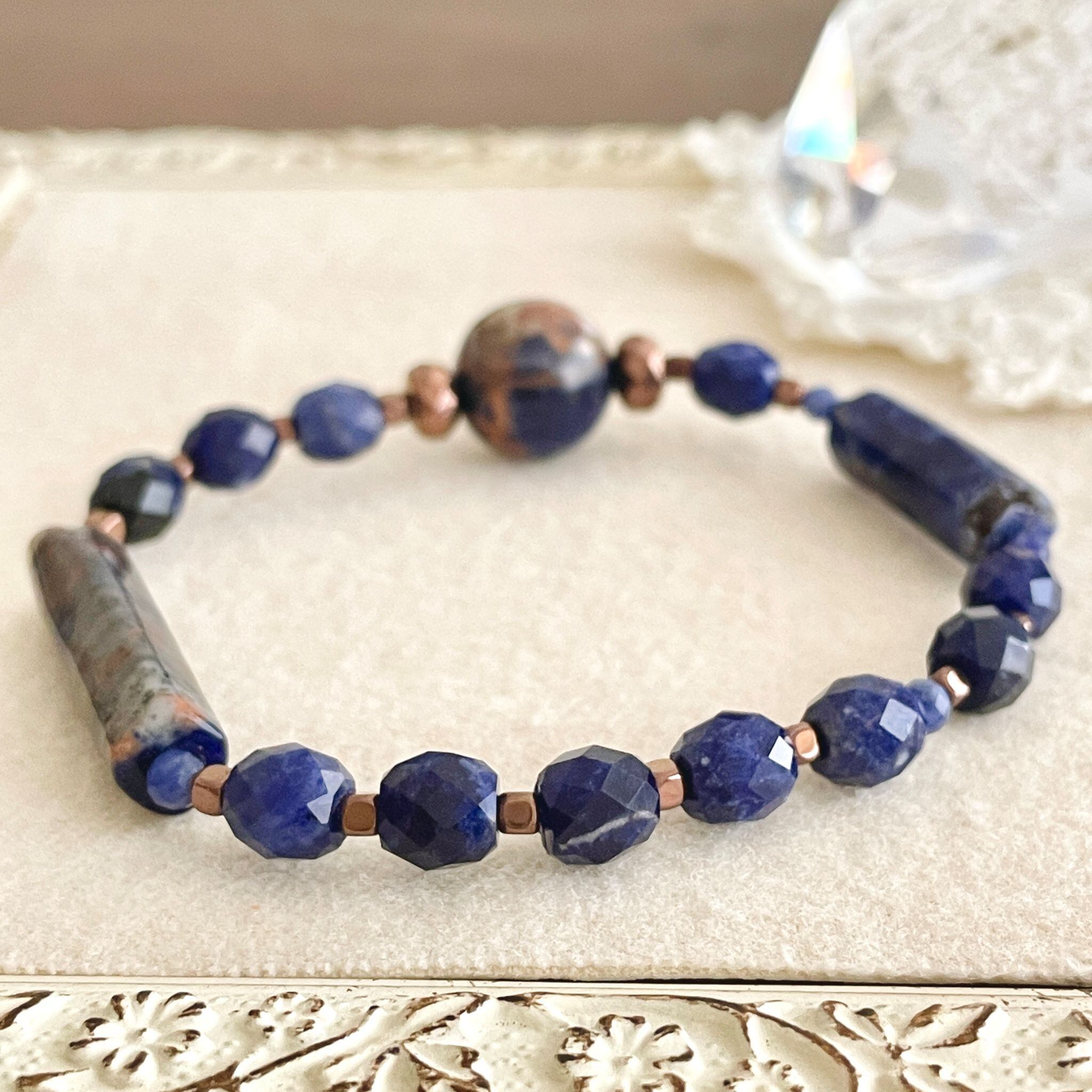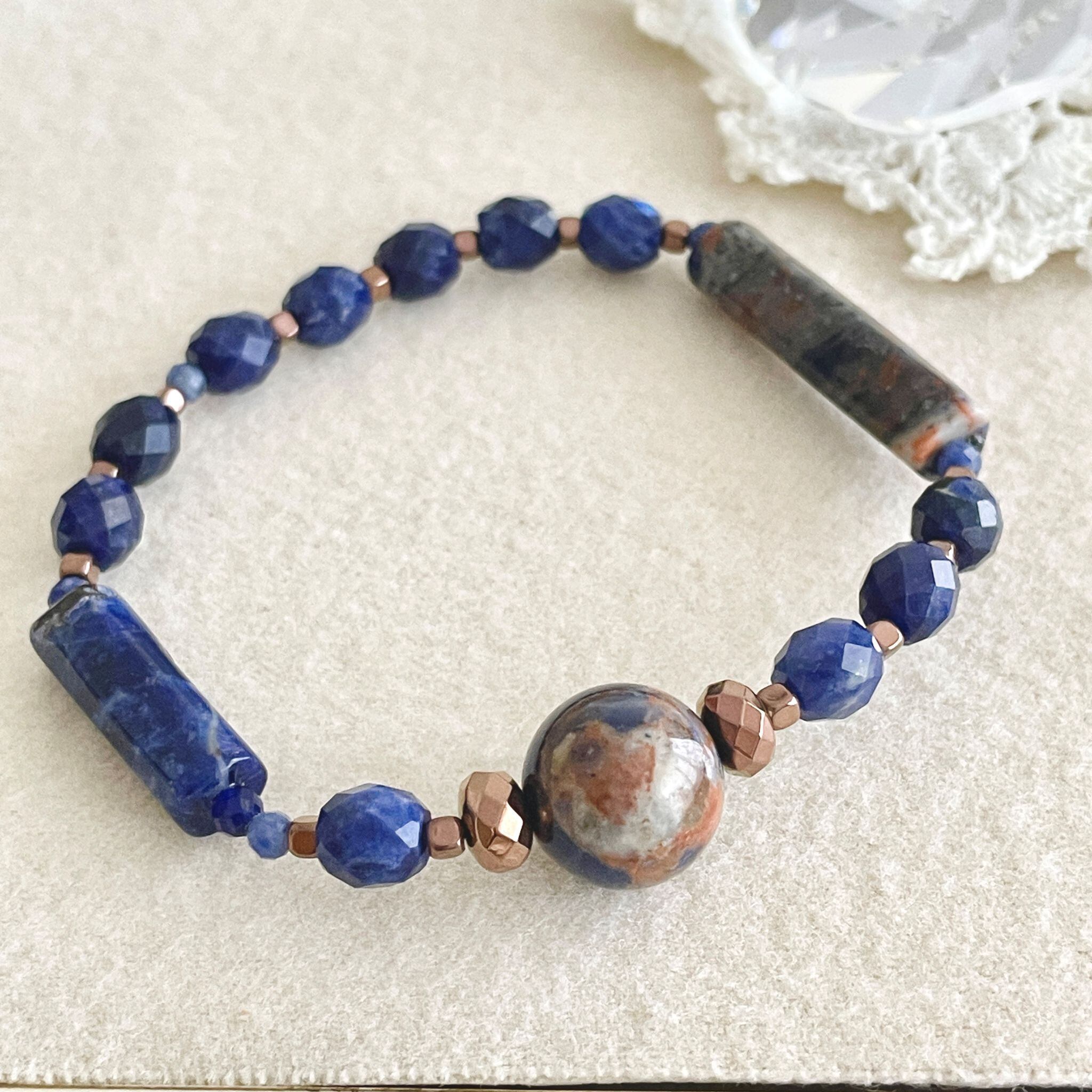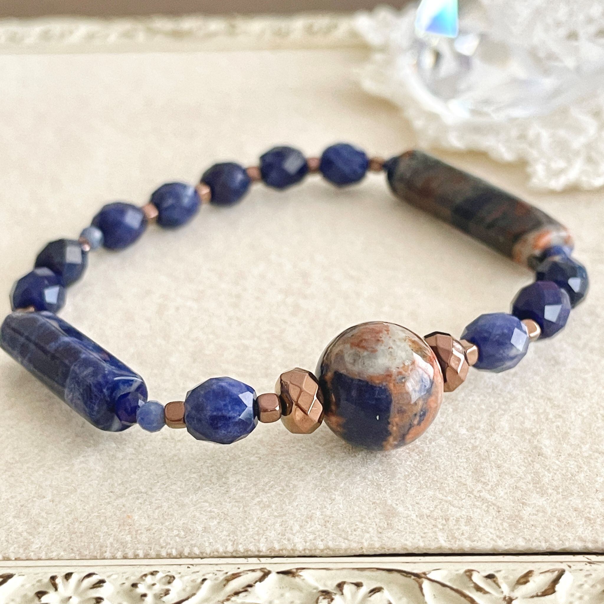 その柄が活きるよう、濃紺のソーダライトたちで全体をまとめました。