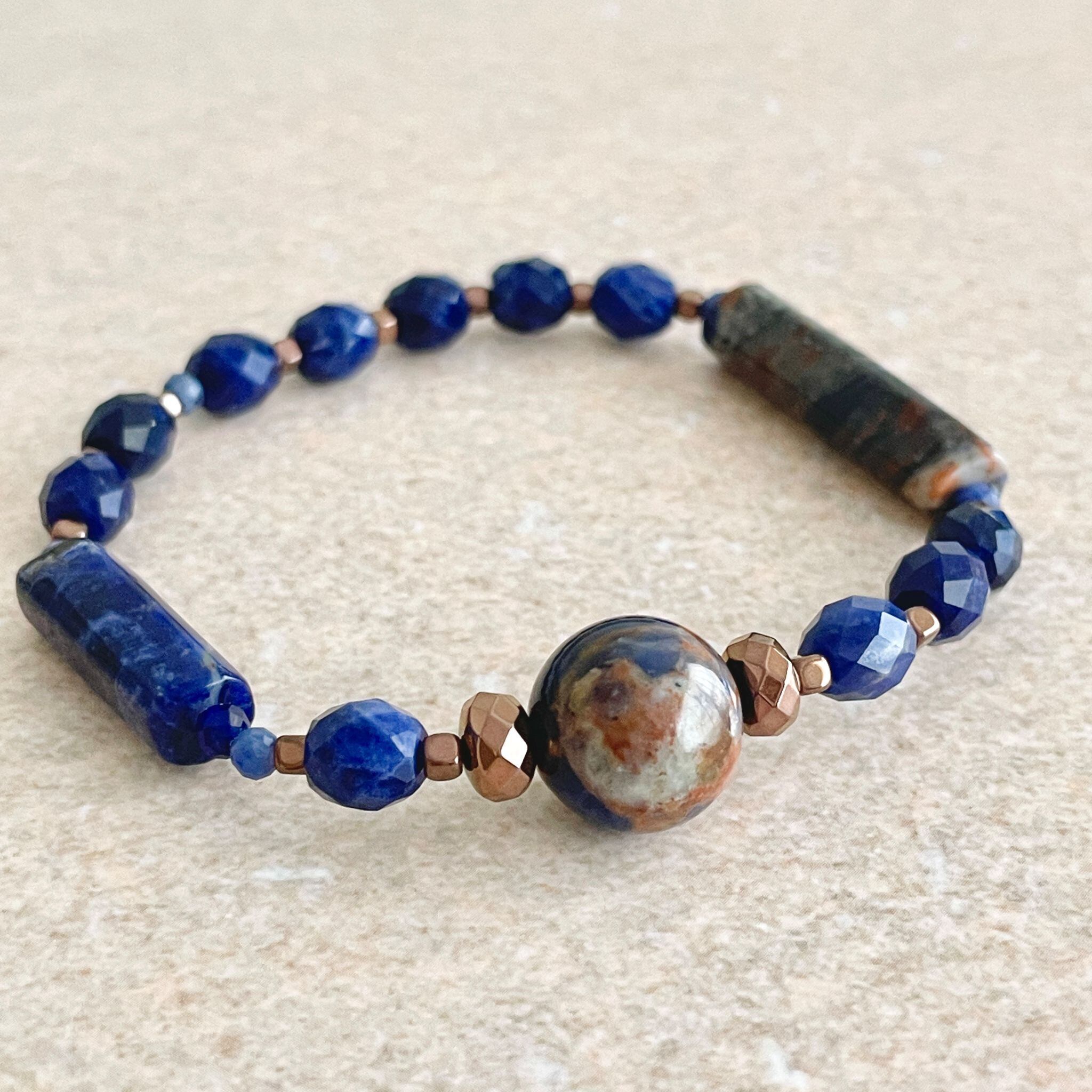 ronde レッドラインソーダライト+ヘマタイト(六角形)のブレスレット sdl-b-2508-07