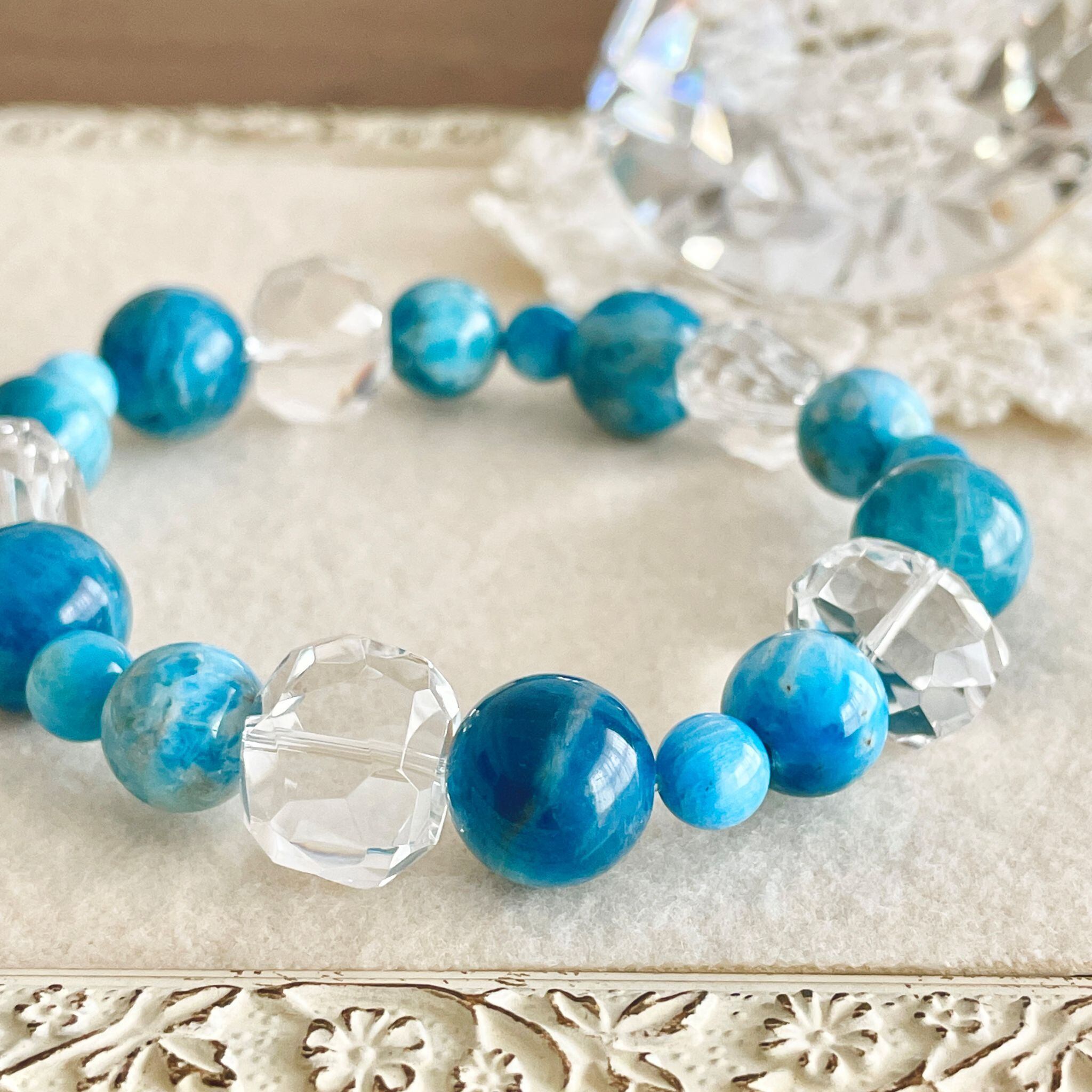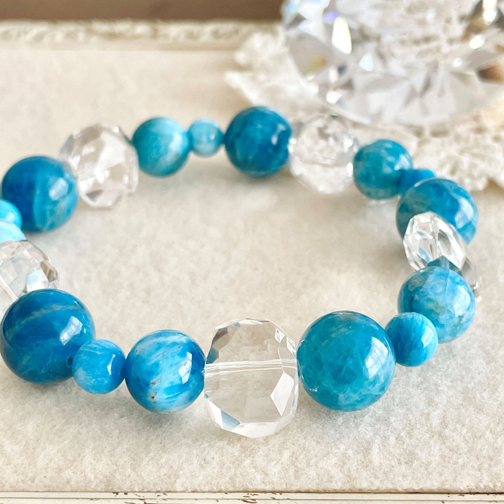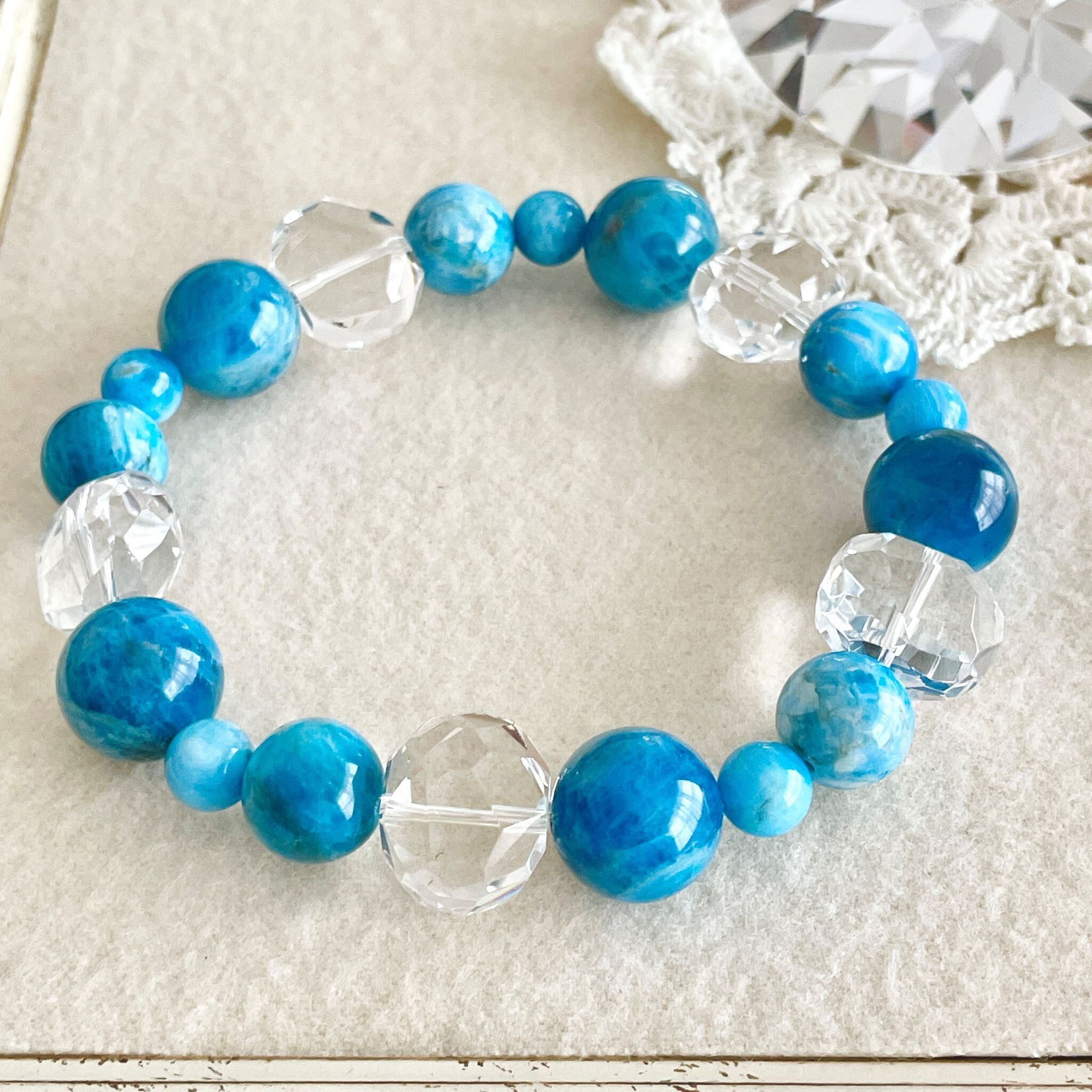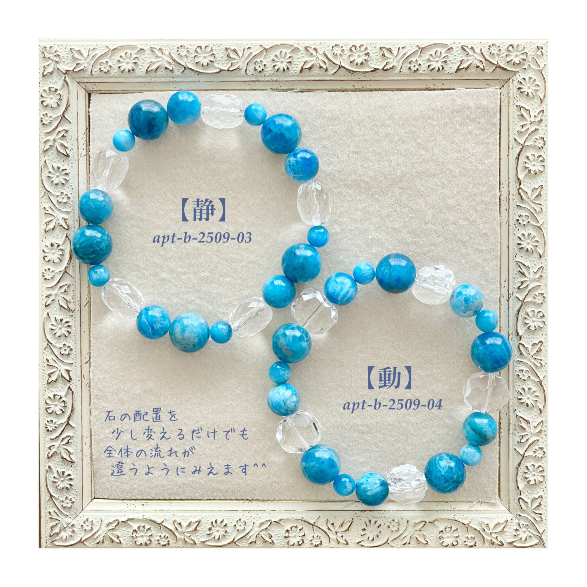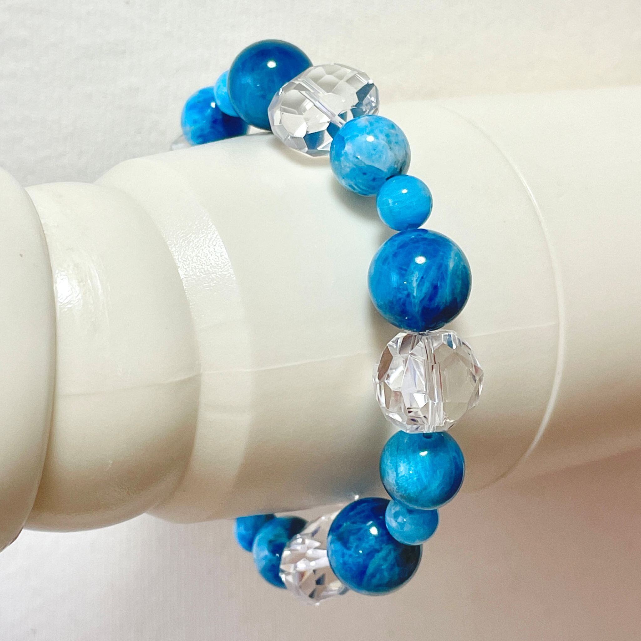 ronde ブルーアパタイト+天然水晶のブレスレット(動) apt-b-2509-03