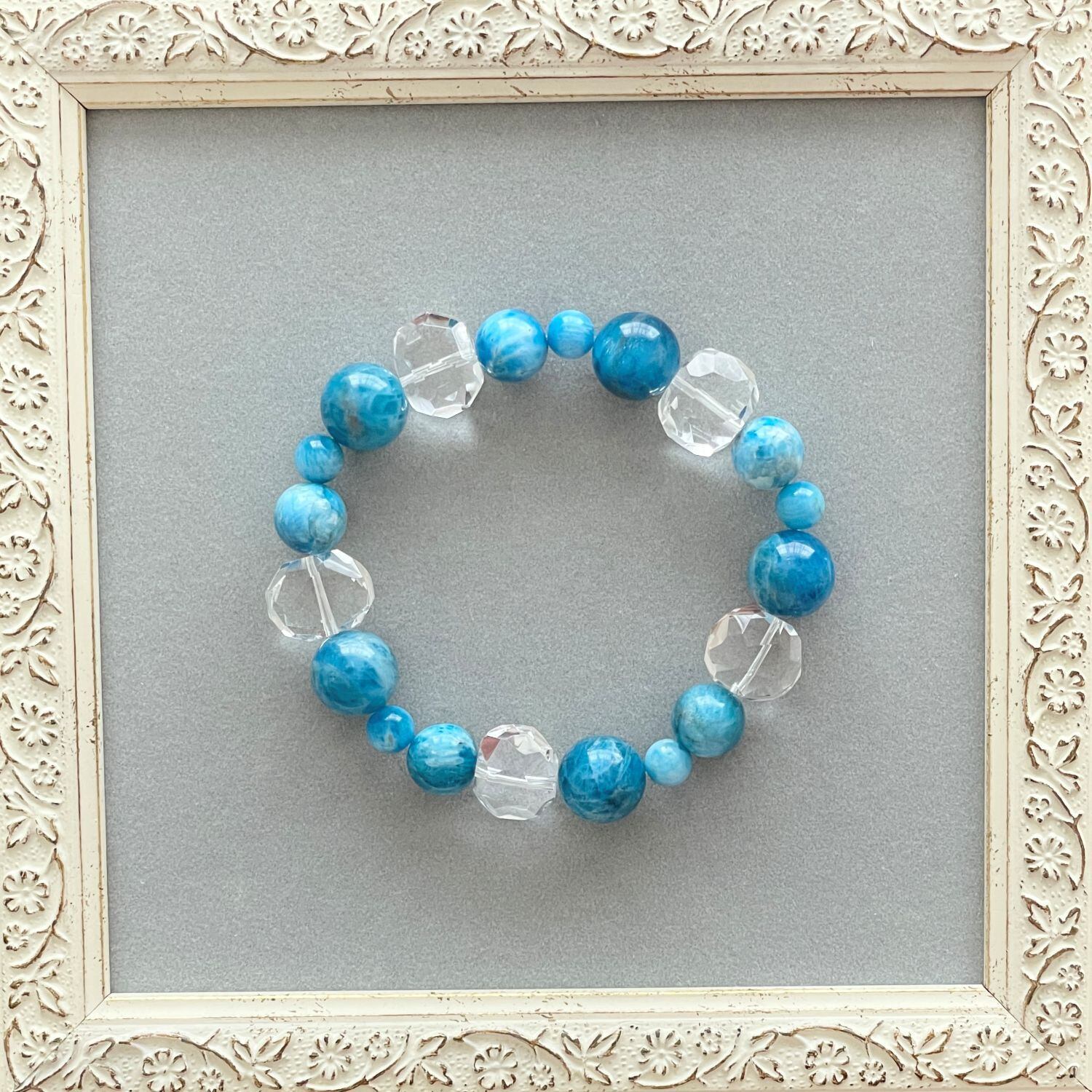鮮やかな青色のブルーアパタイトを楽しめるブレスレットです。