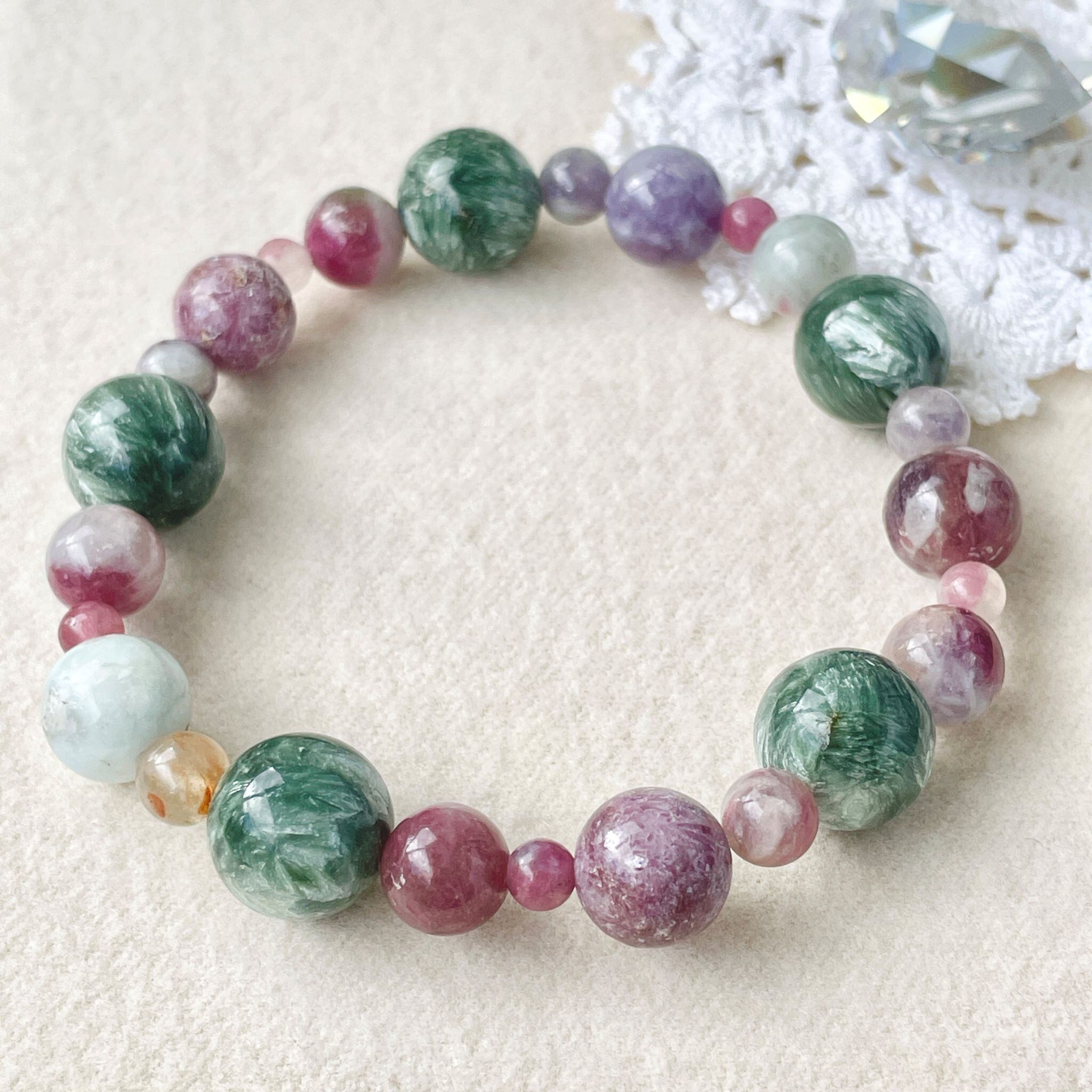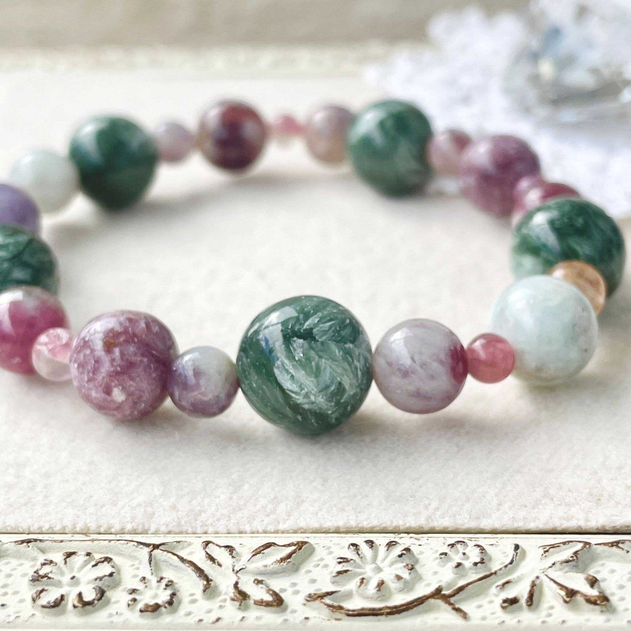 ronde セラフィナイト+ユニコーンストーン(レピドライトwithピンクトルマリン)のブレスレット srp-b-2510-05