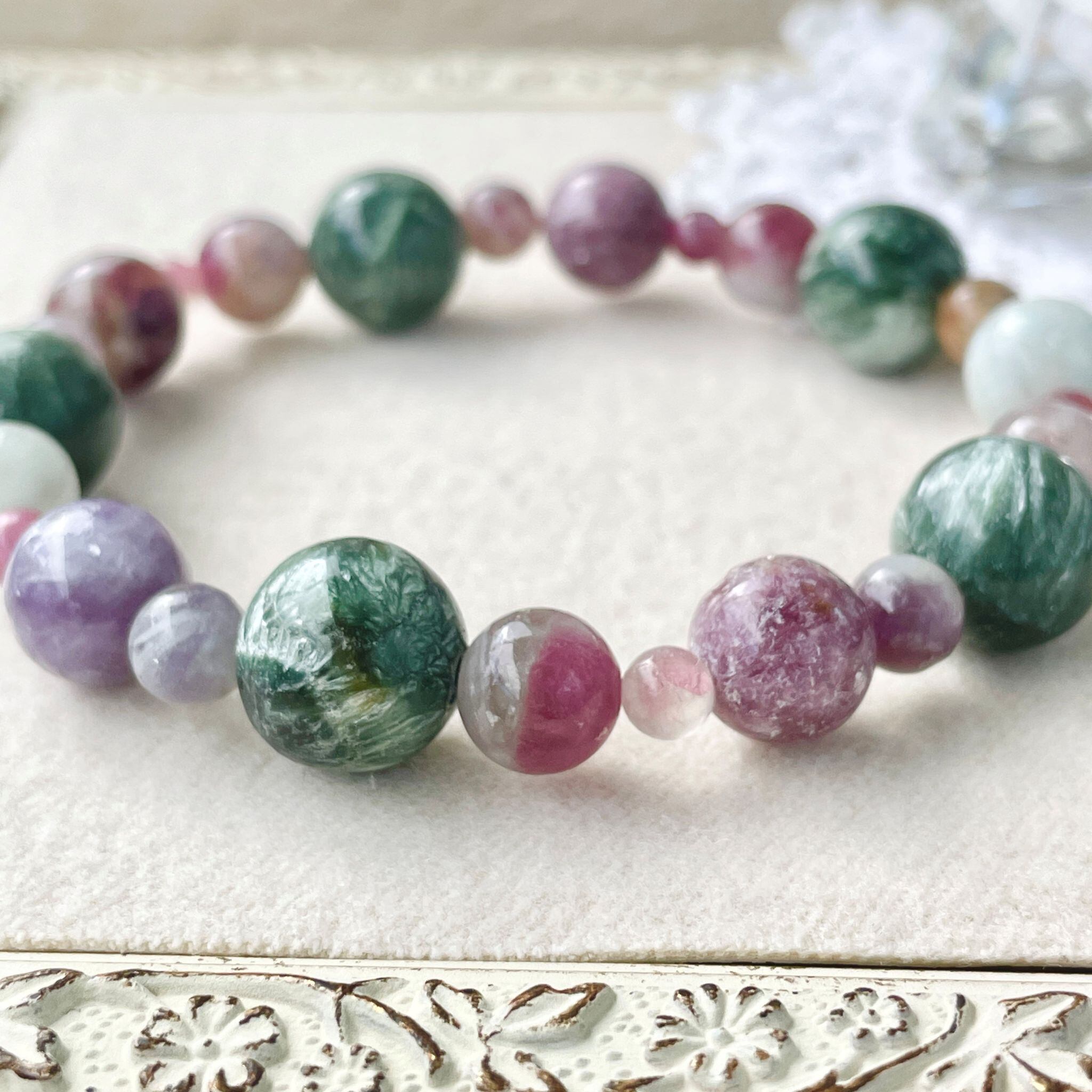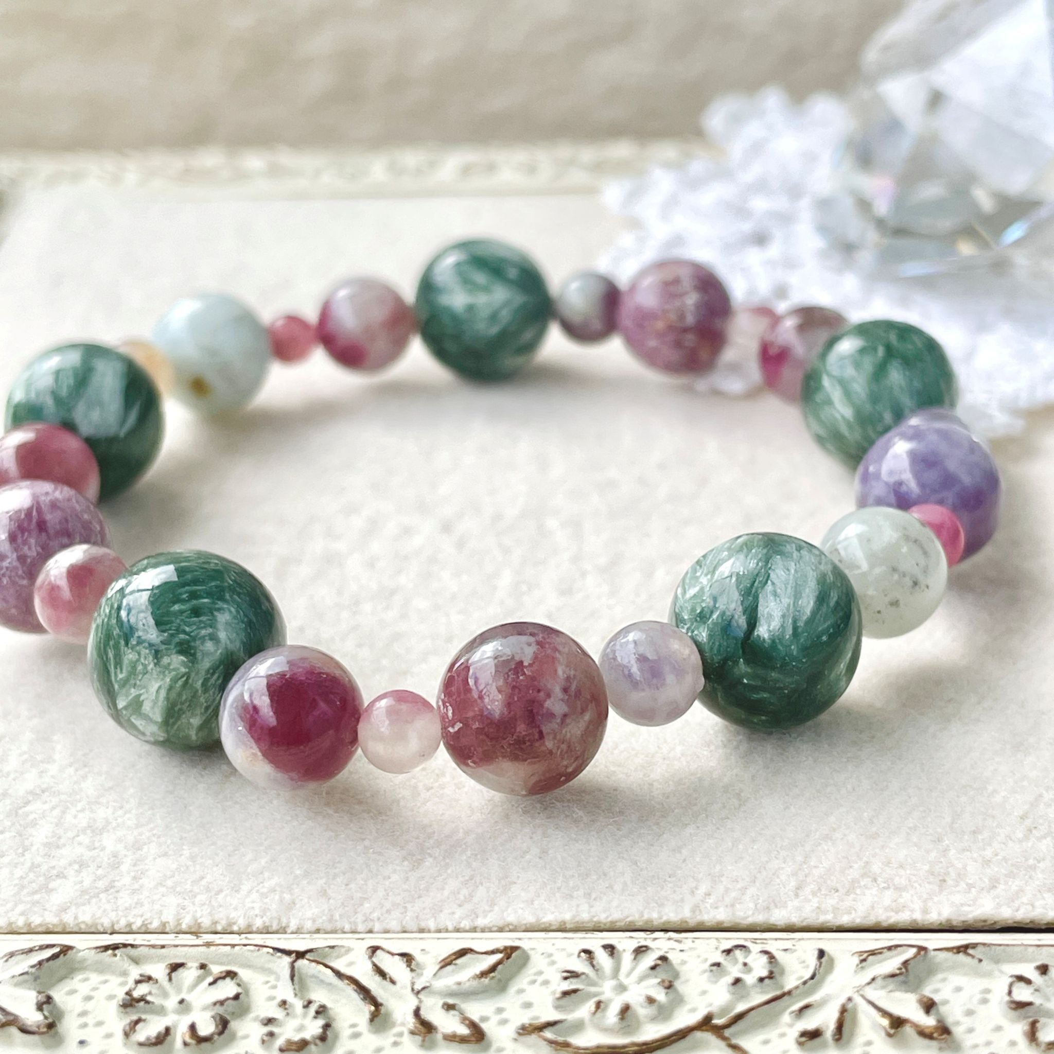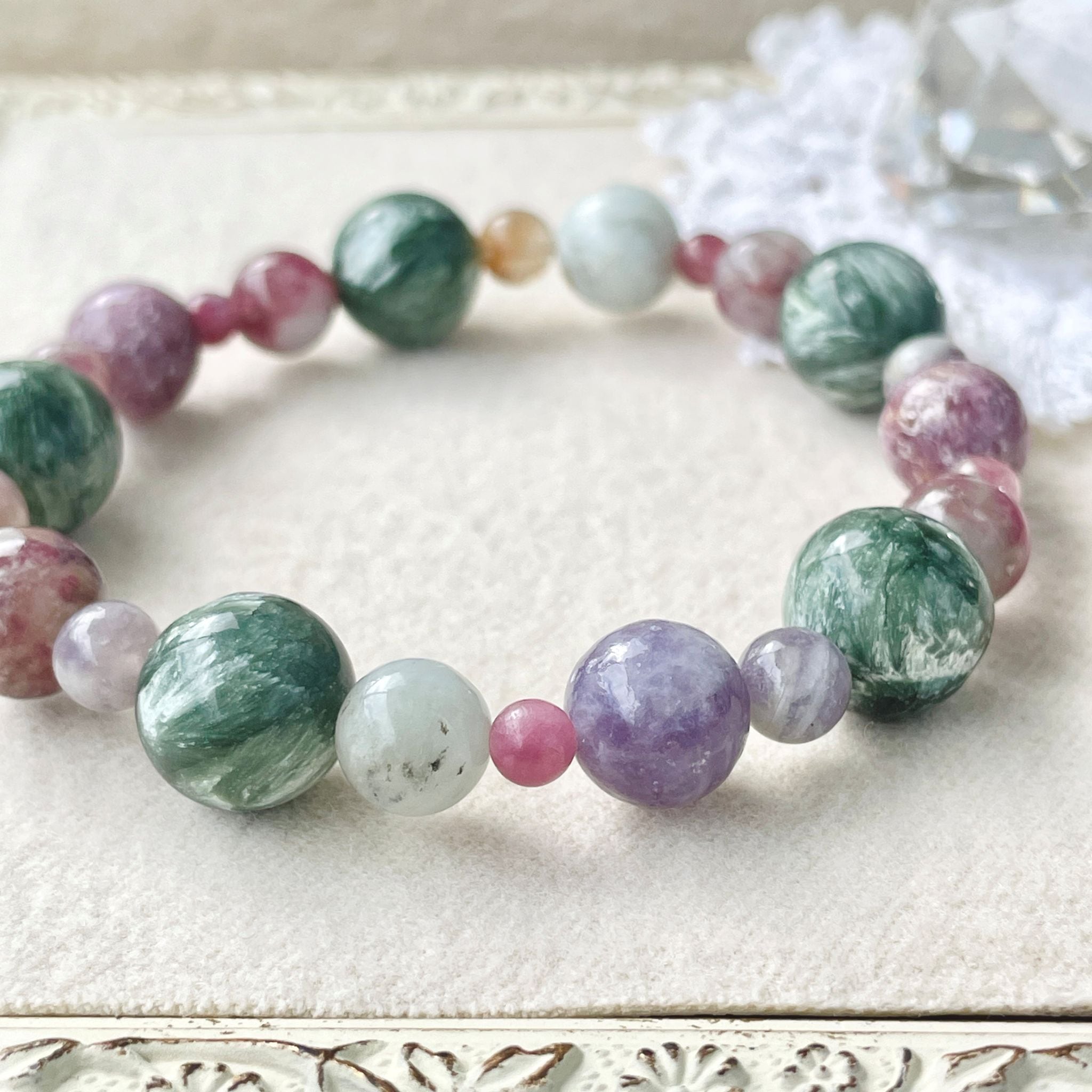 ※セラフィナイト…柔らかい石質。太陽光、水分に注意。