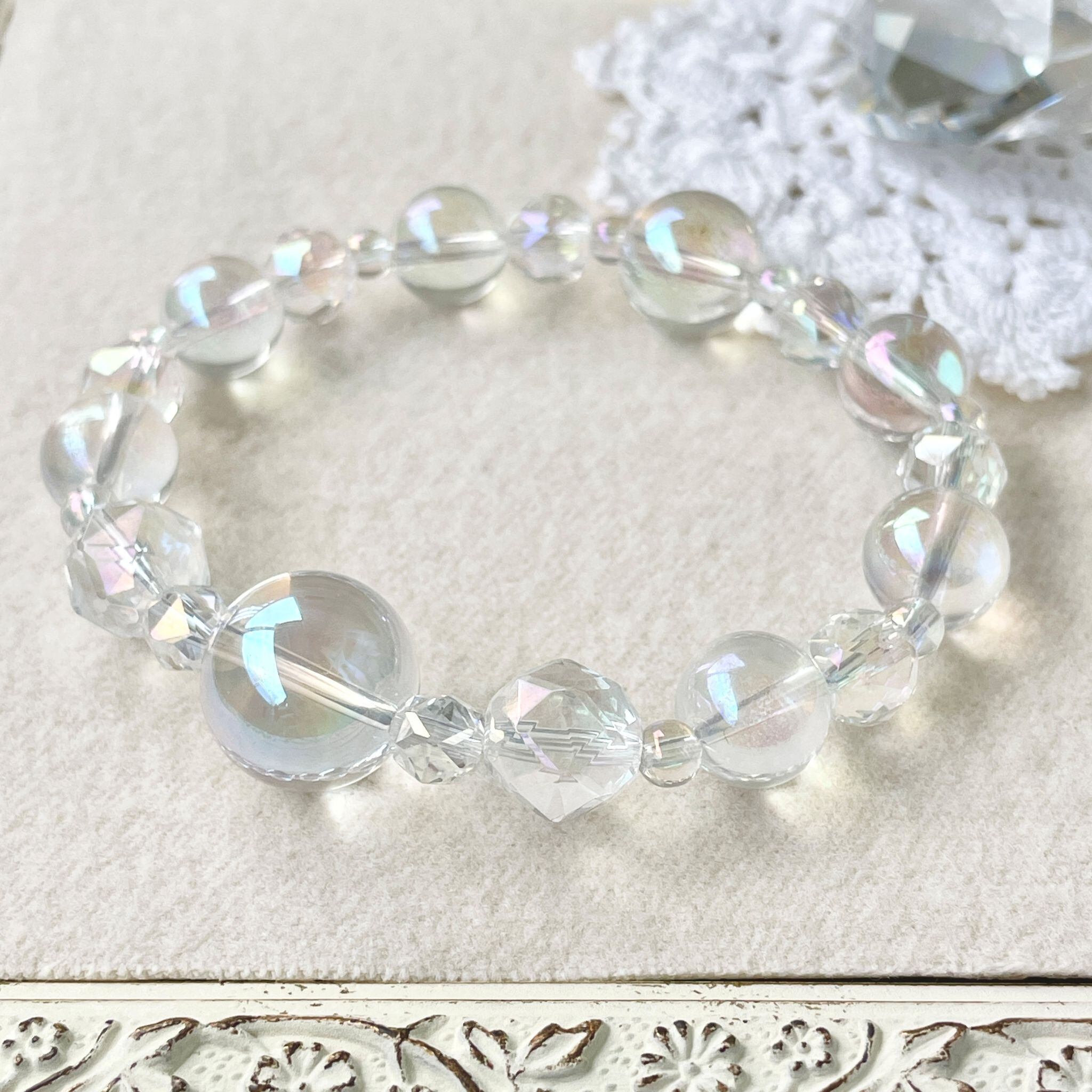 (追記)クリスタル(水晶)表記には天然水晶の他に溶錬水晶のものがあるようです。両者の違いは結晶の有無です。気になる方はご確認されるとよいかと思いますが、表面のフラッシュの輝きを主に楽しみたい方はひとつの知識とだけ捉えていただければと思います。