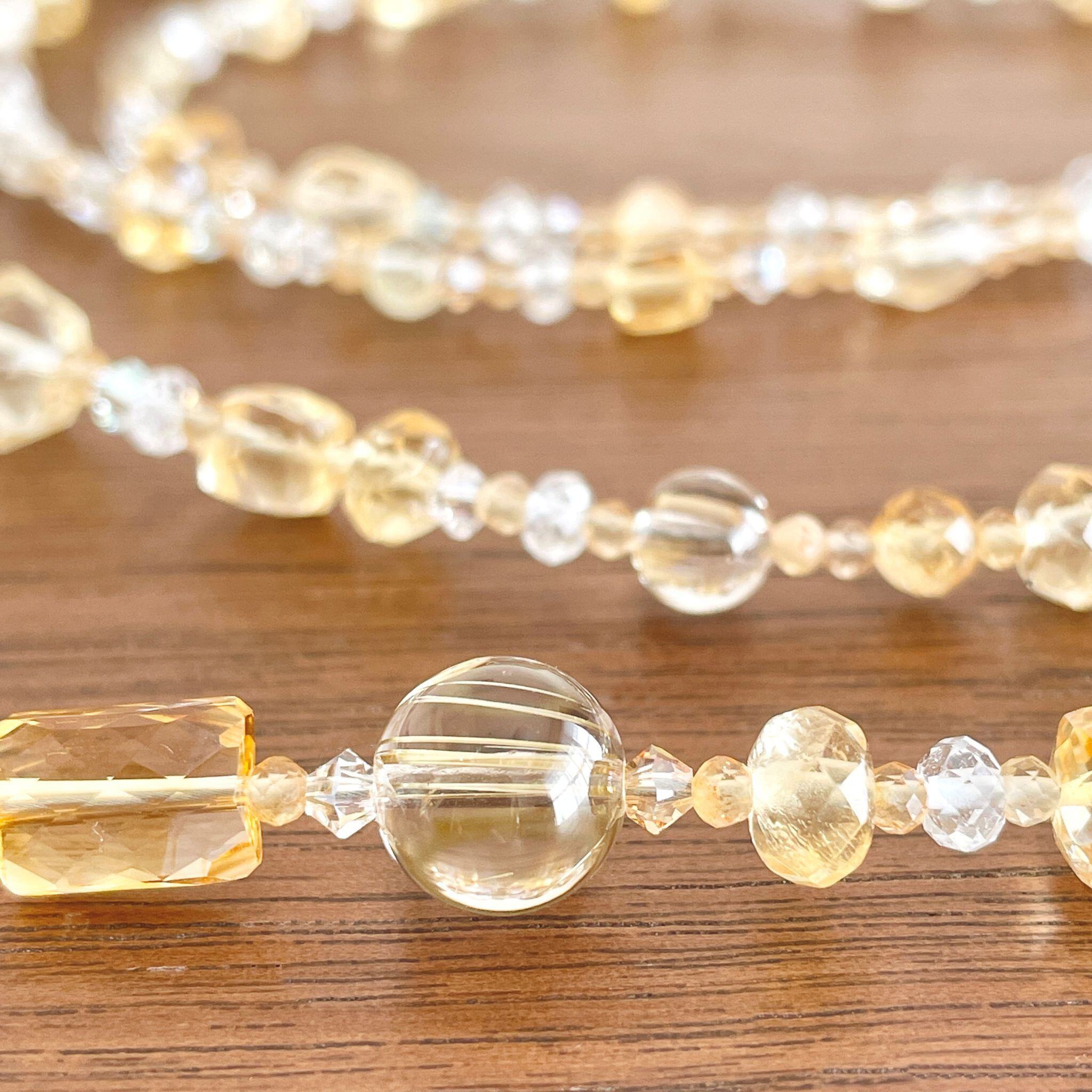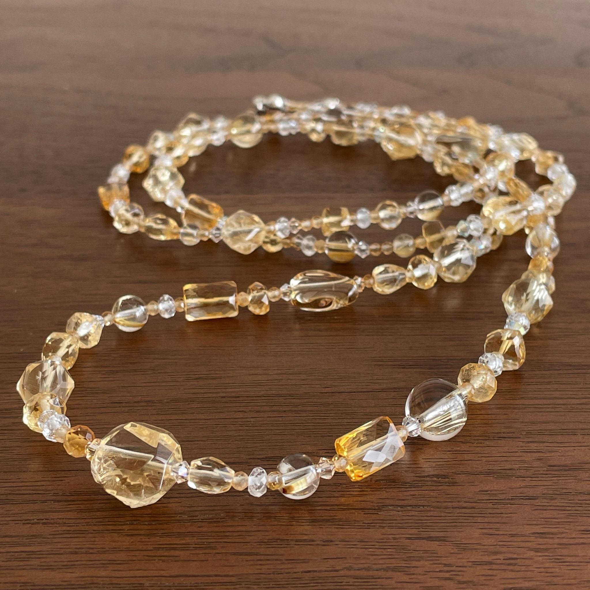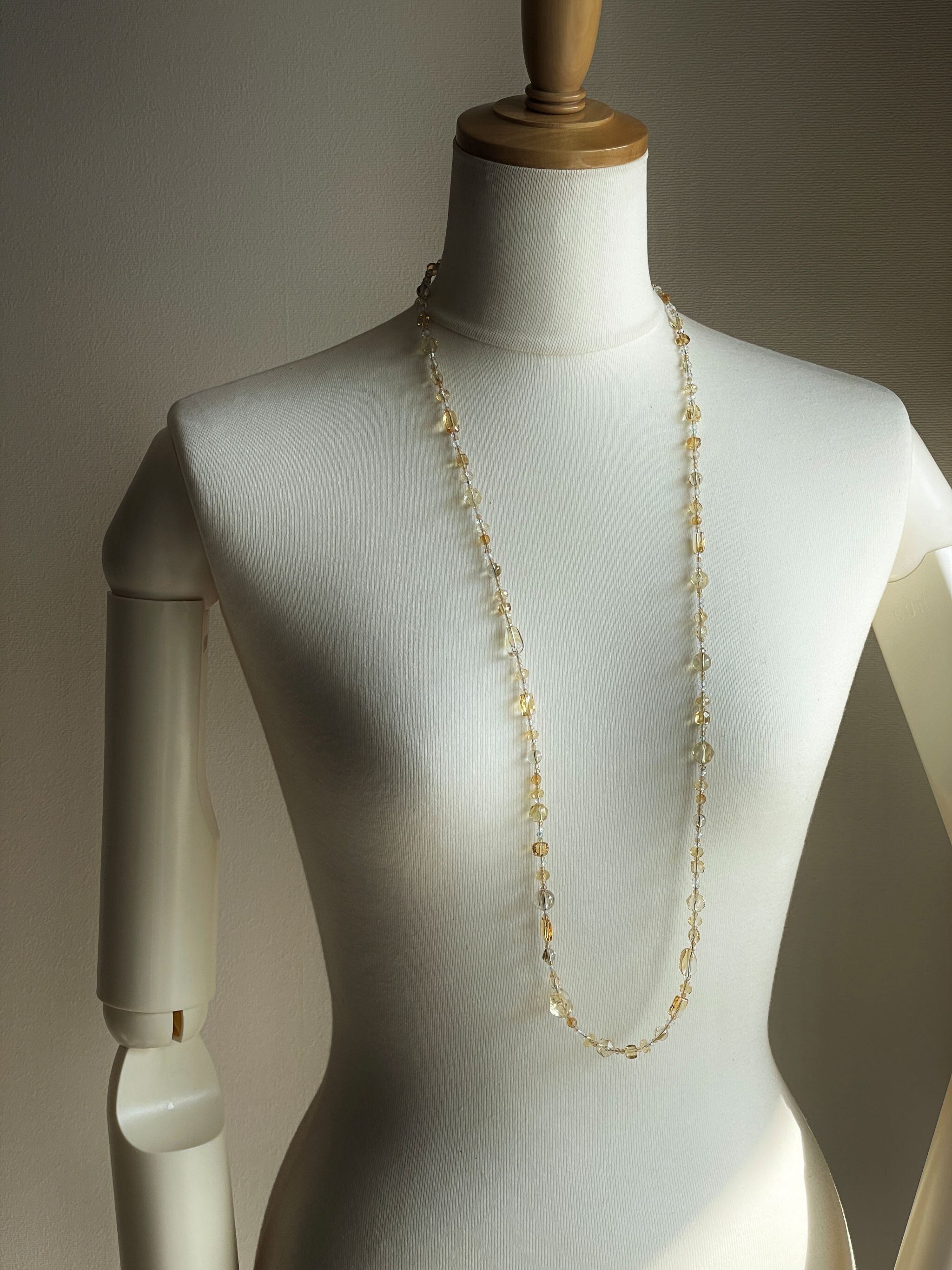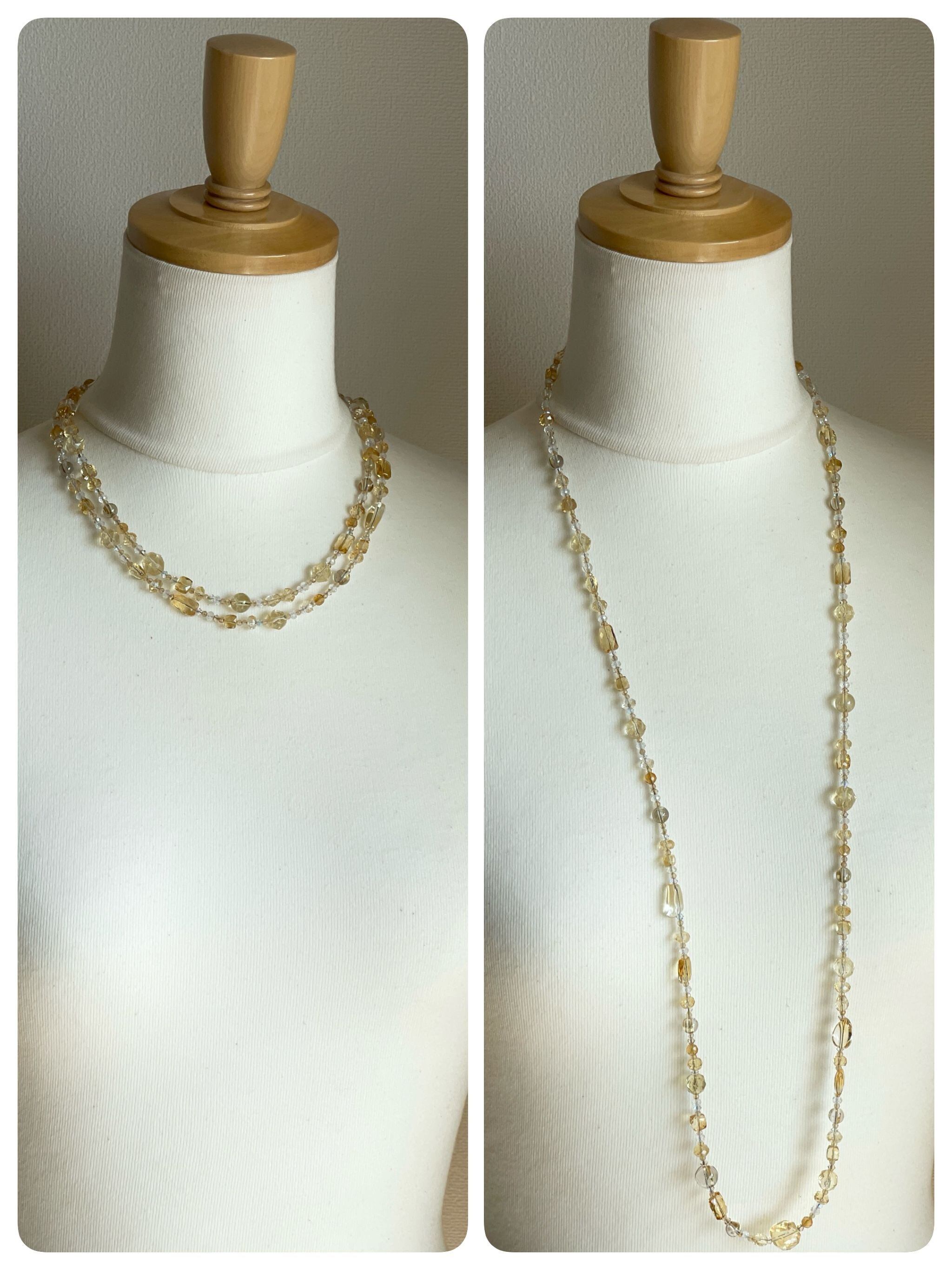 シトリンを中心に構成したロングネックレスです。