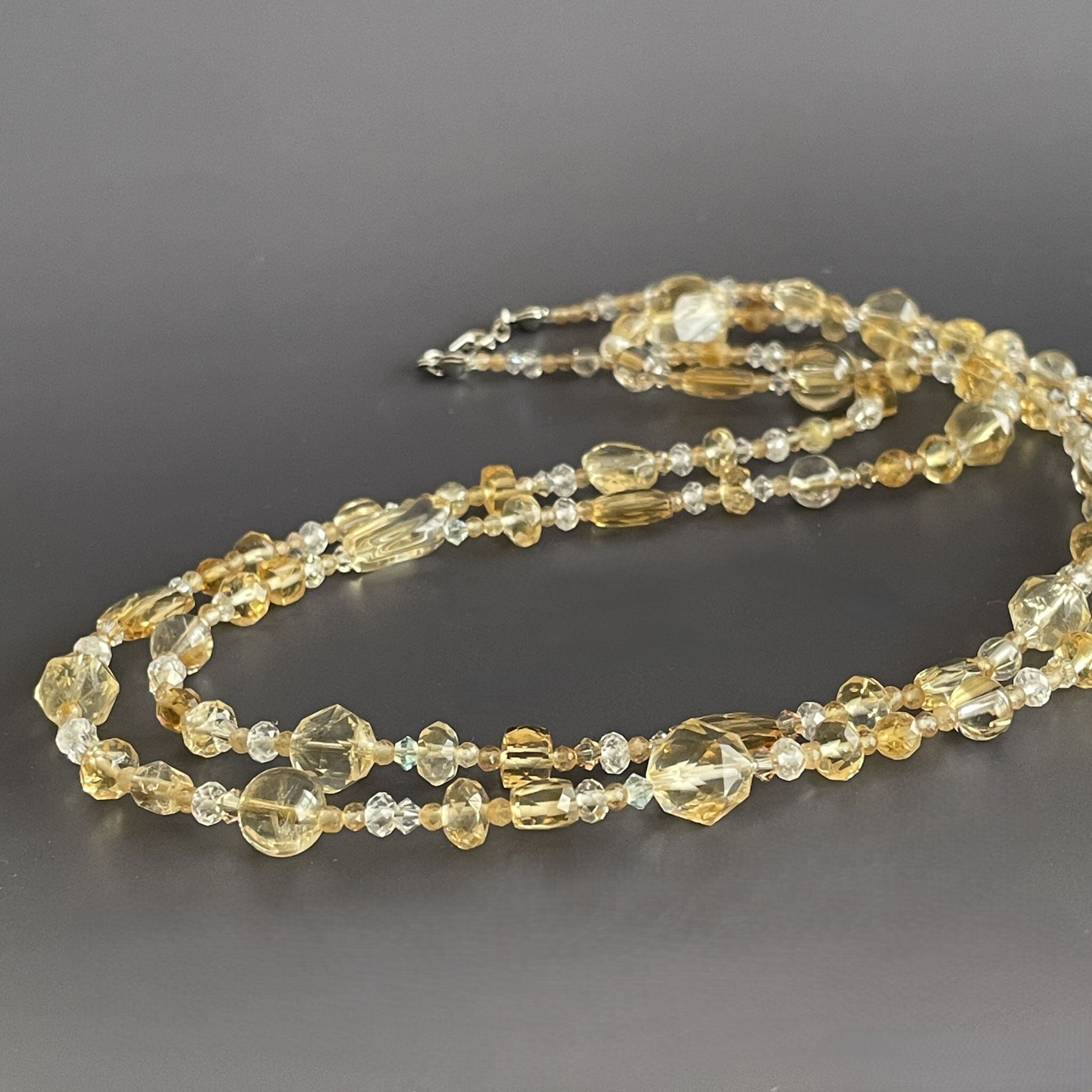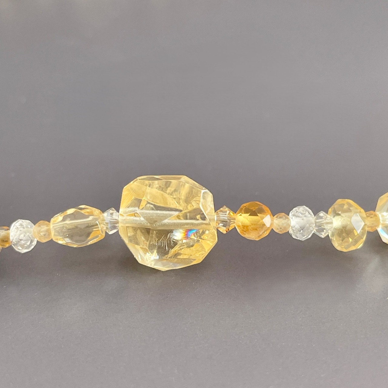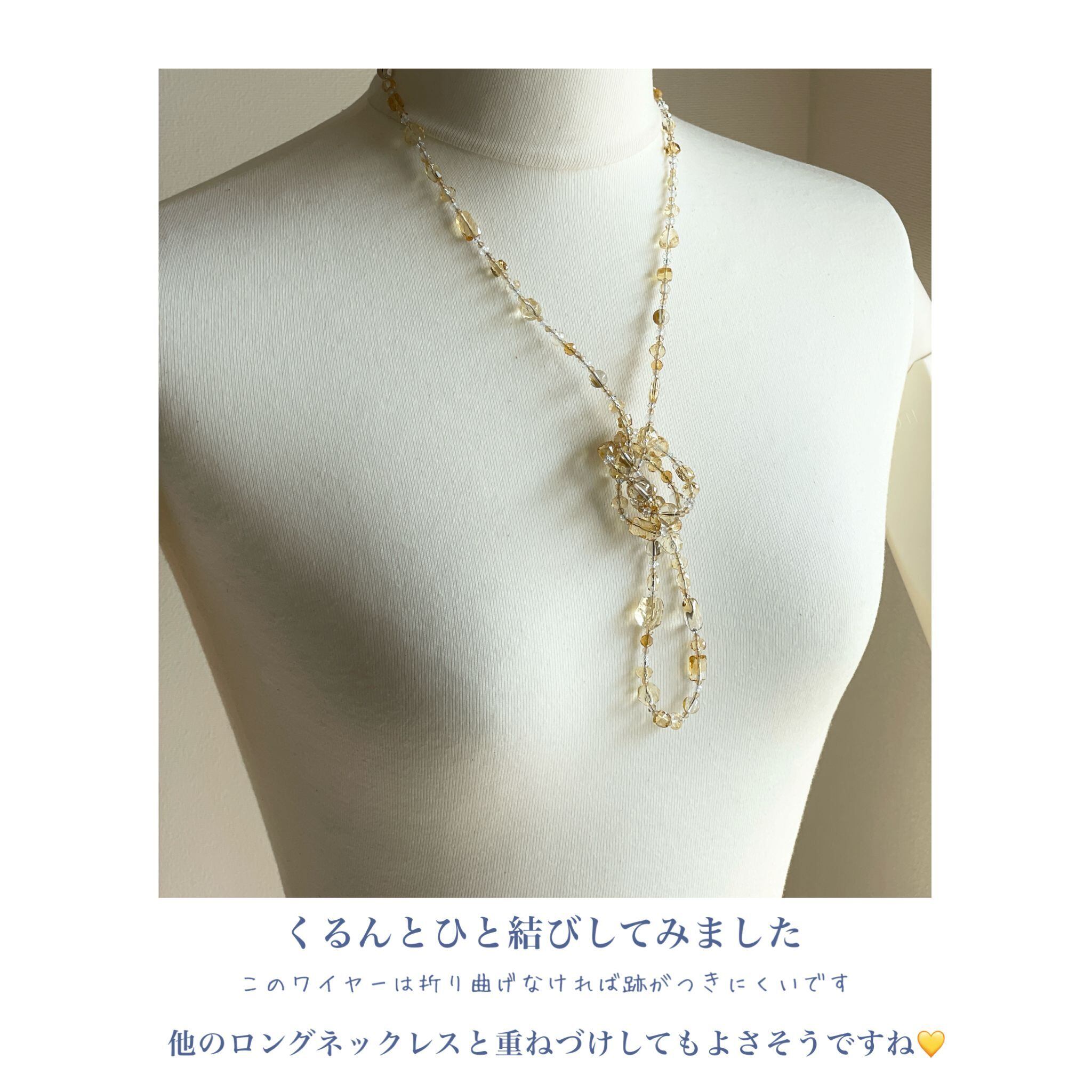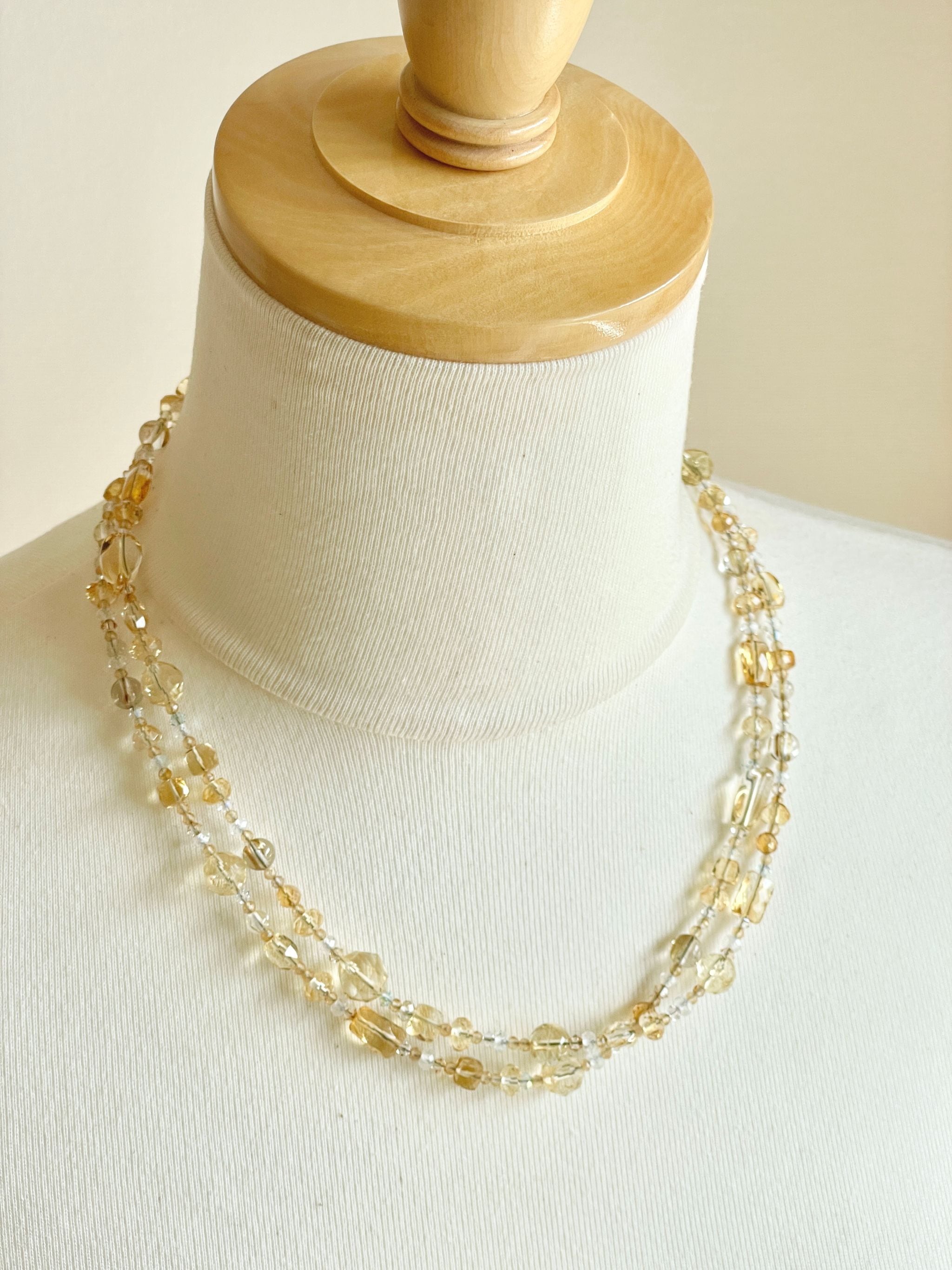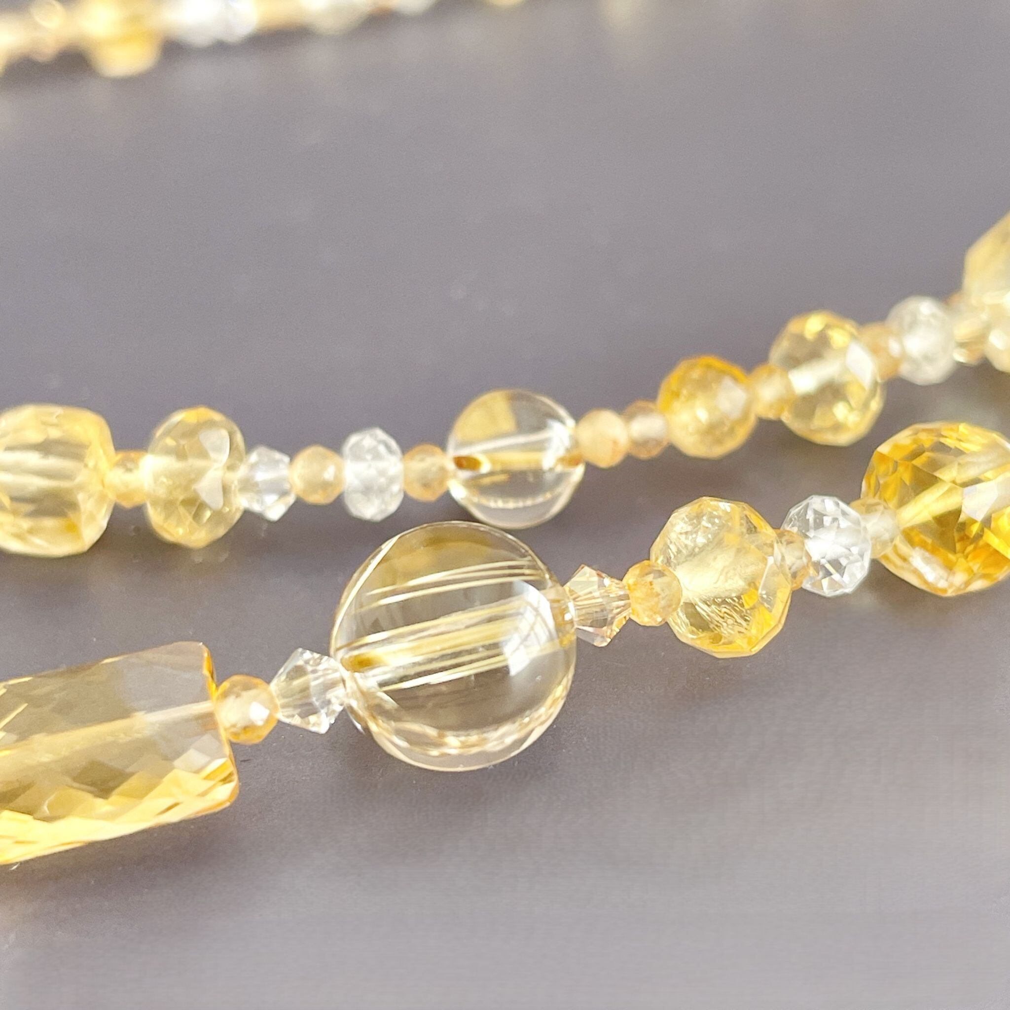 シトリンを中心に構成したロングネックレスです。