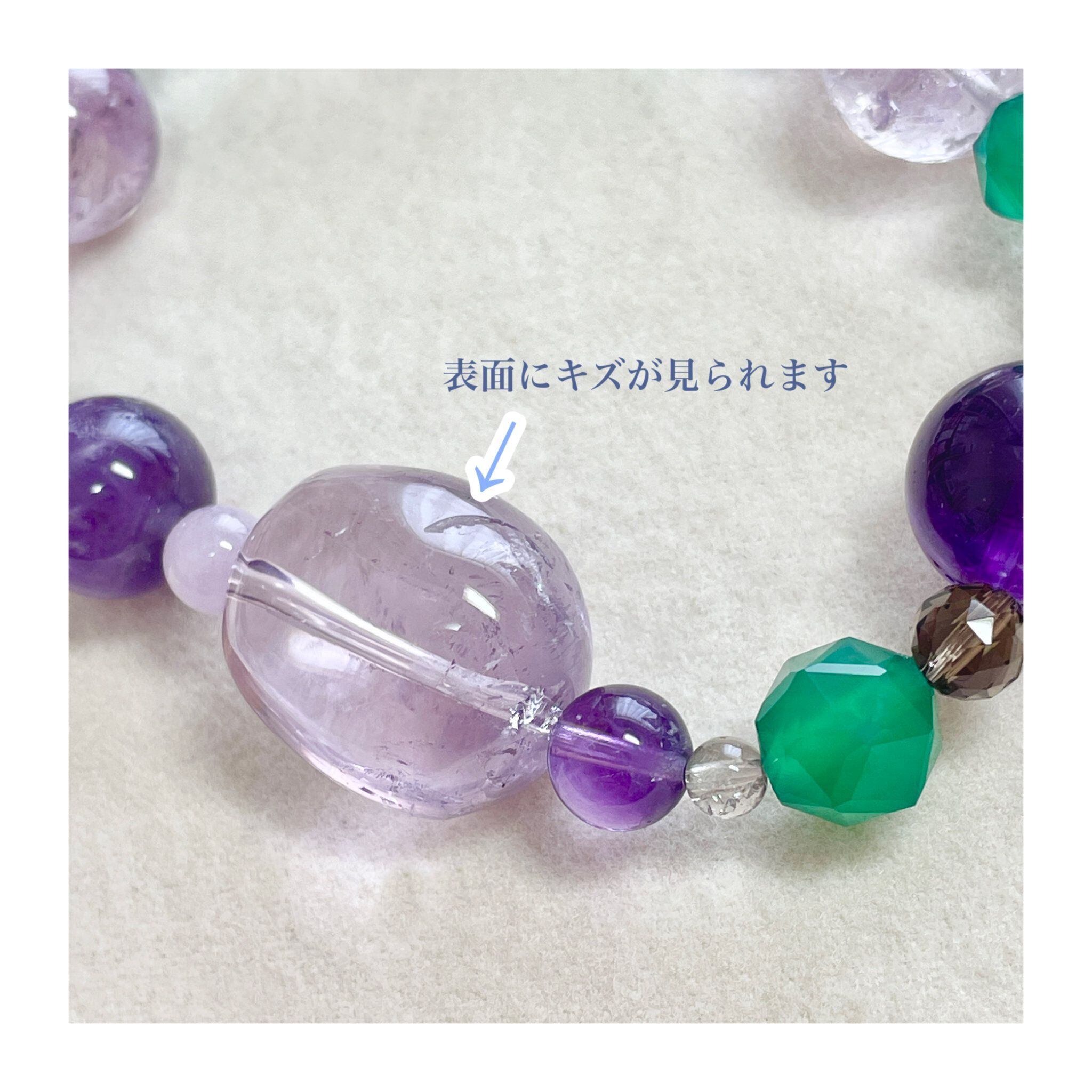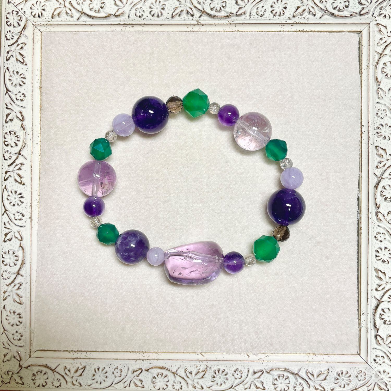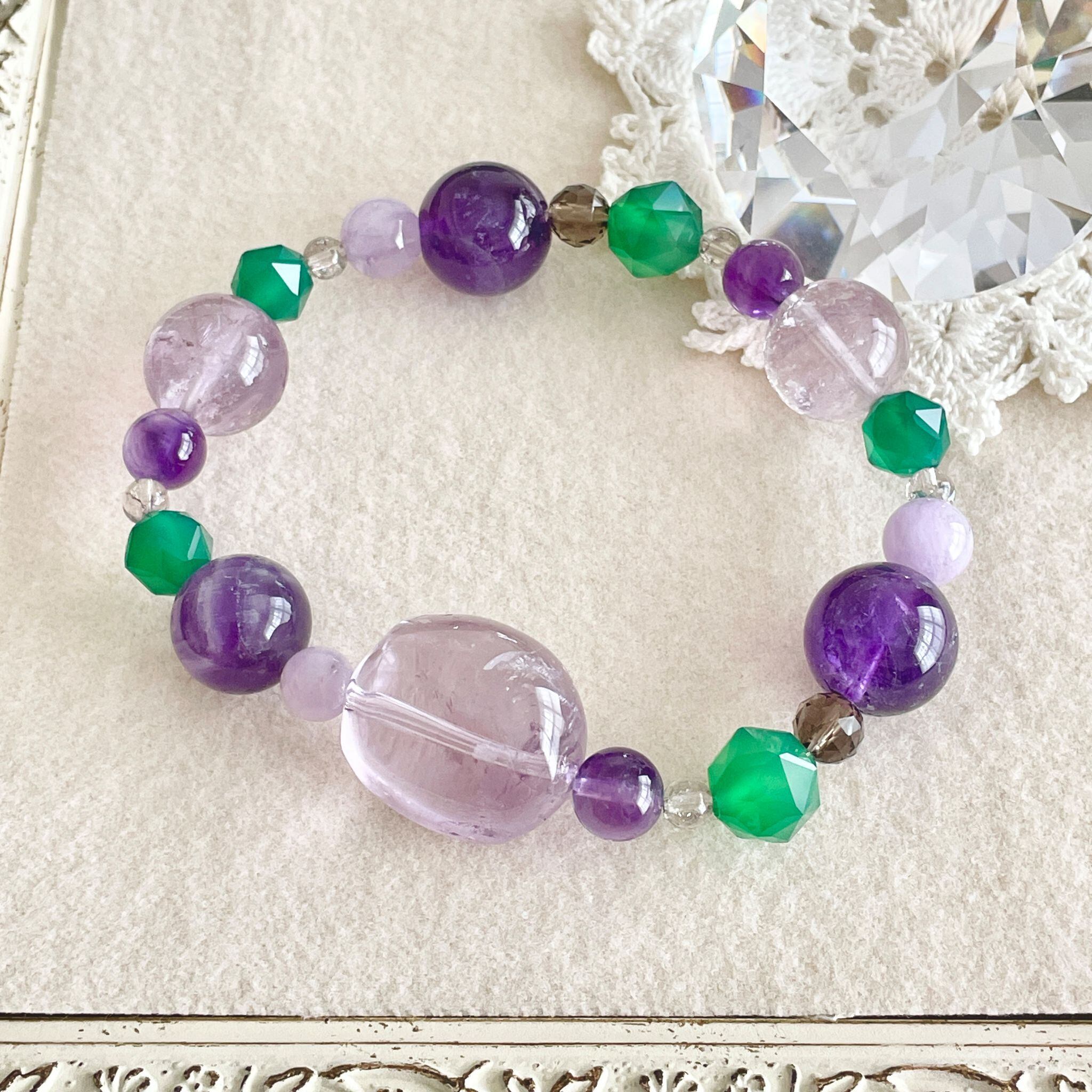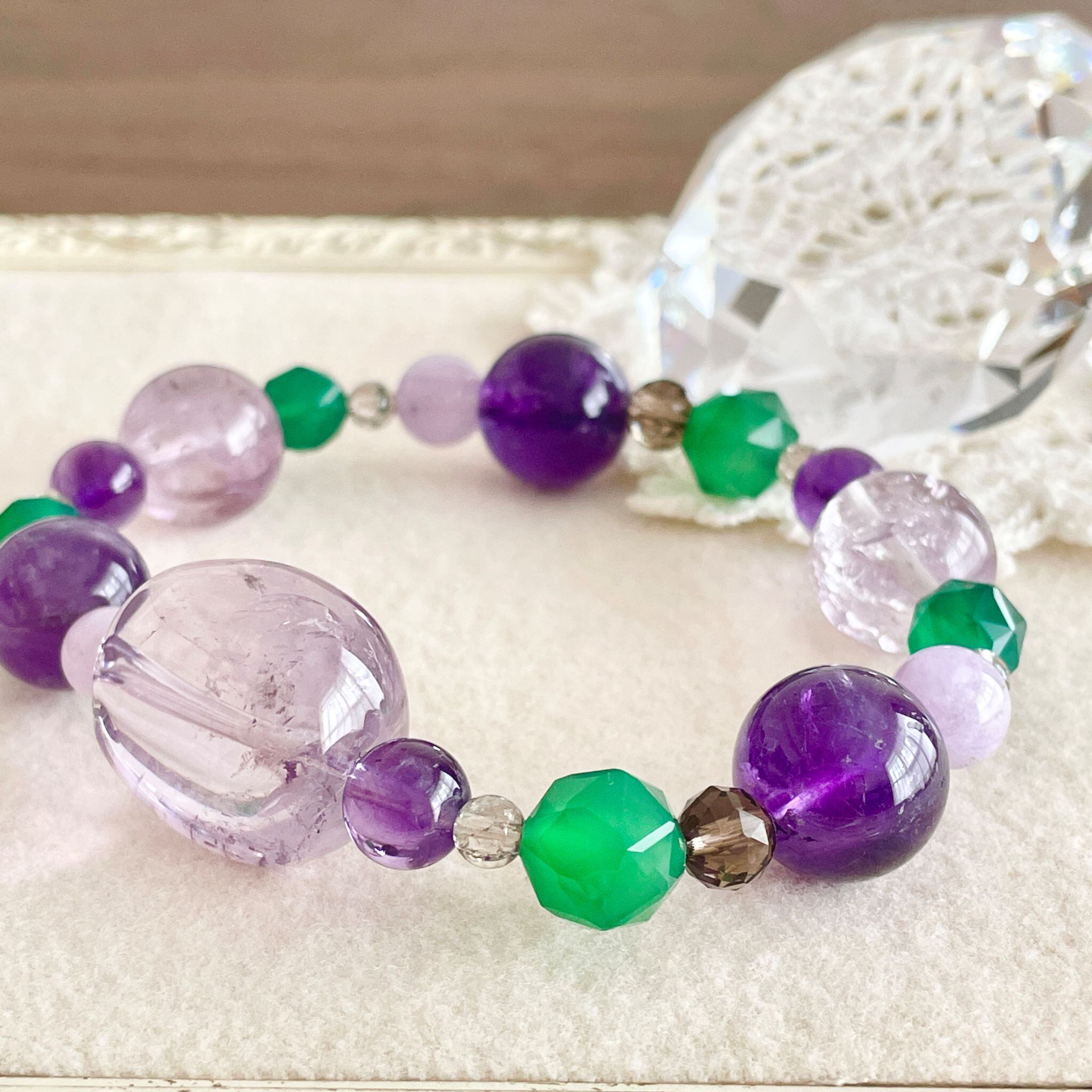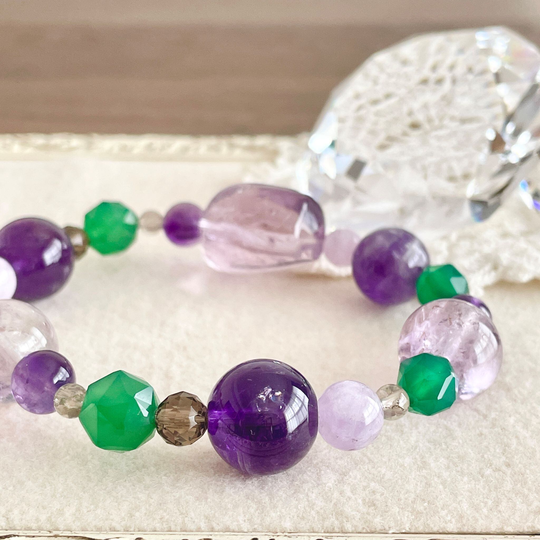 ronde アメシスト+グリーンオニキス+スモーキークォーツのブレスレット ams-b-2511-02