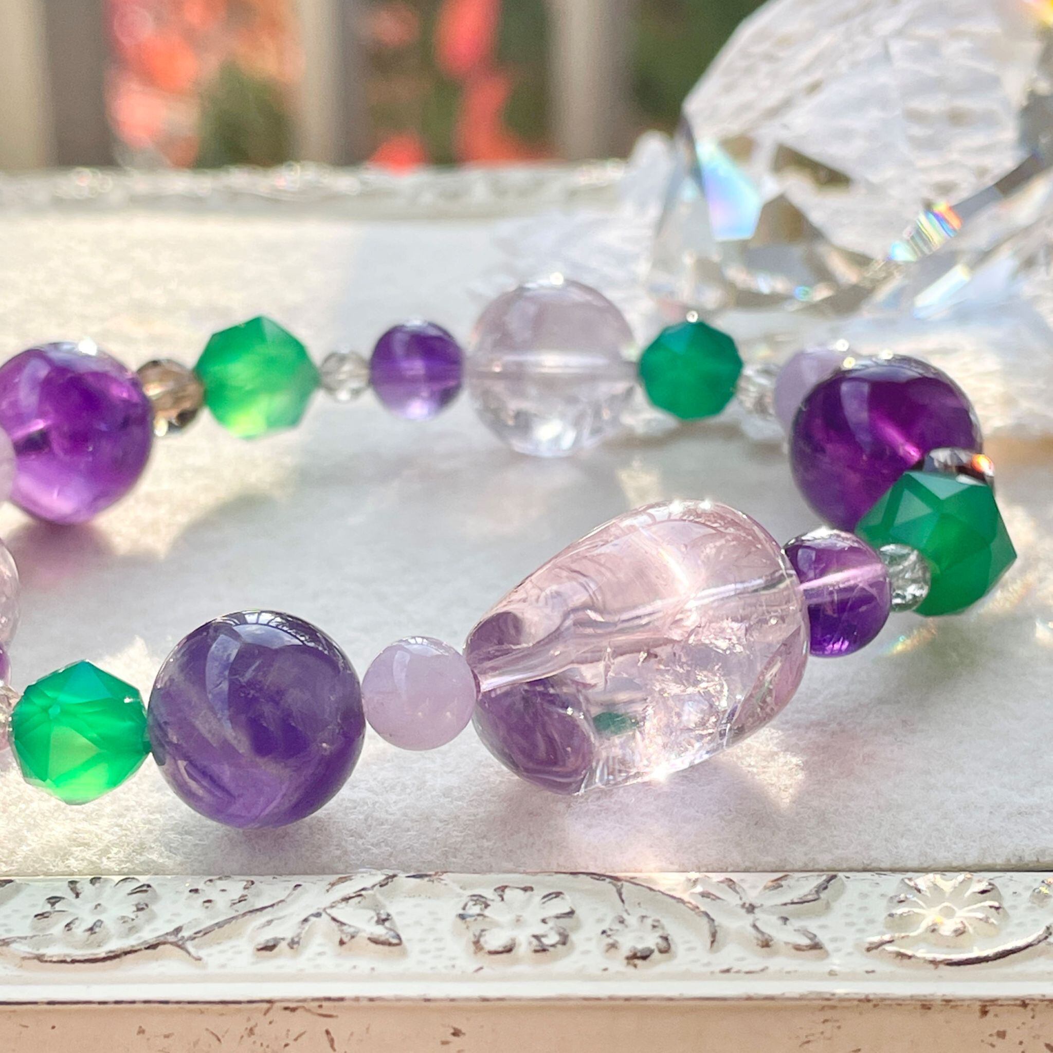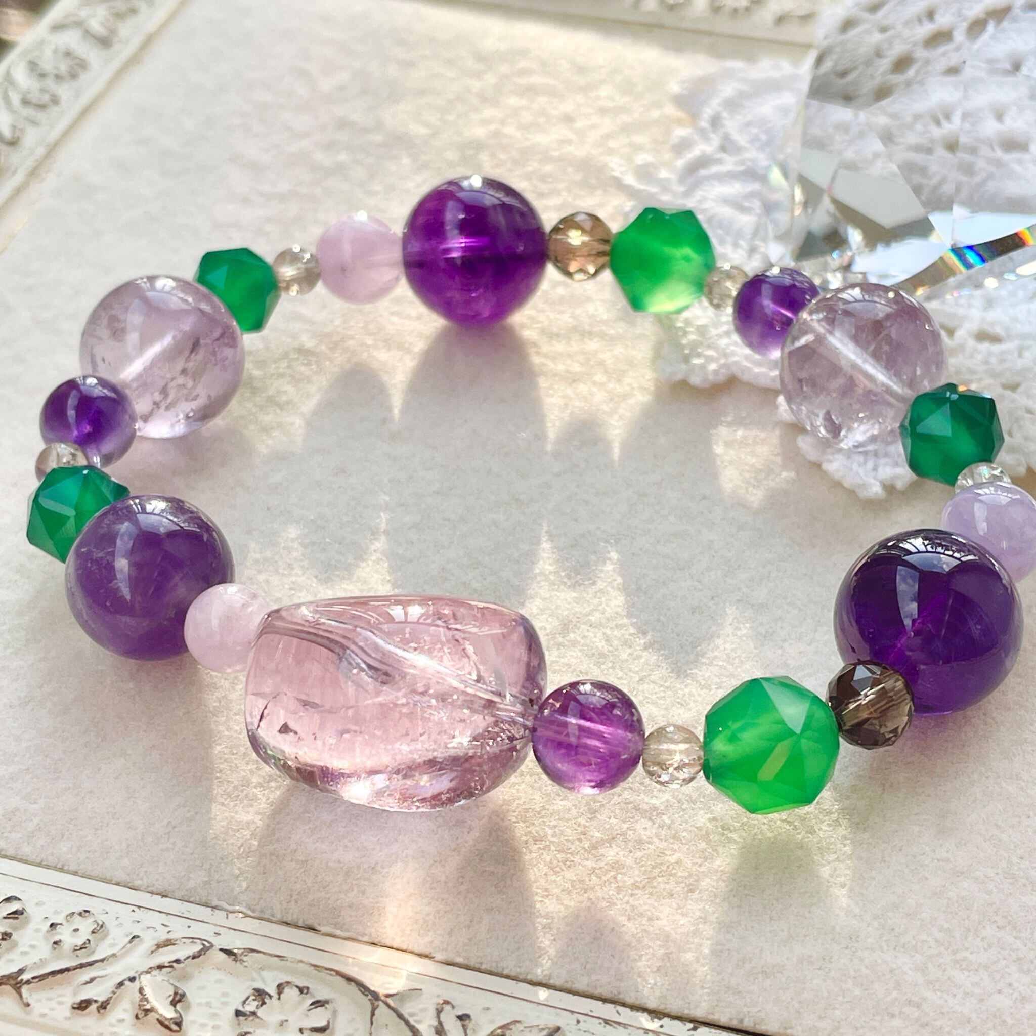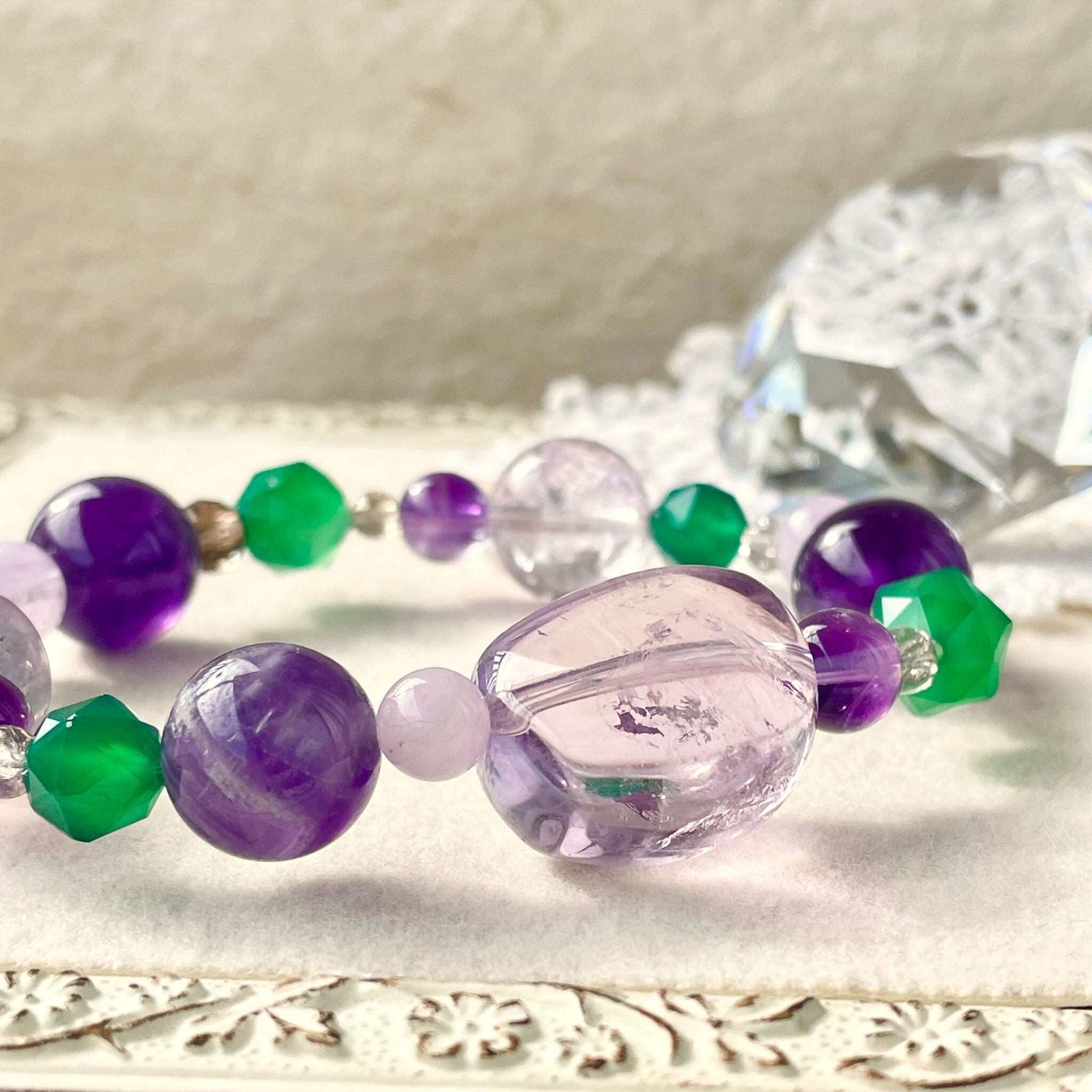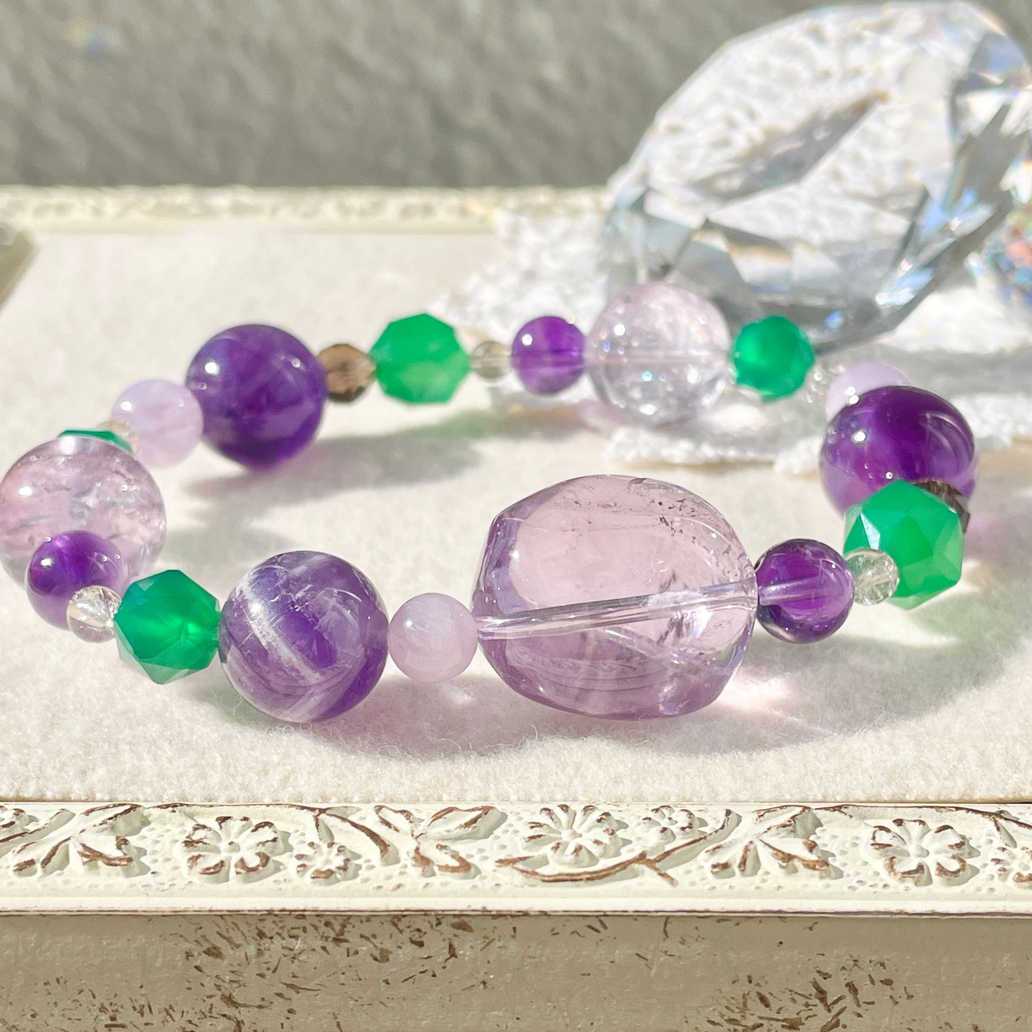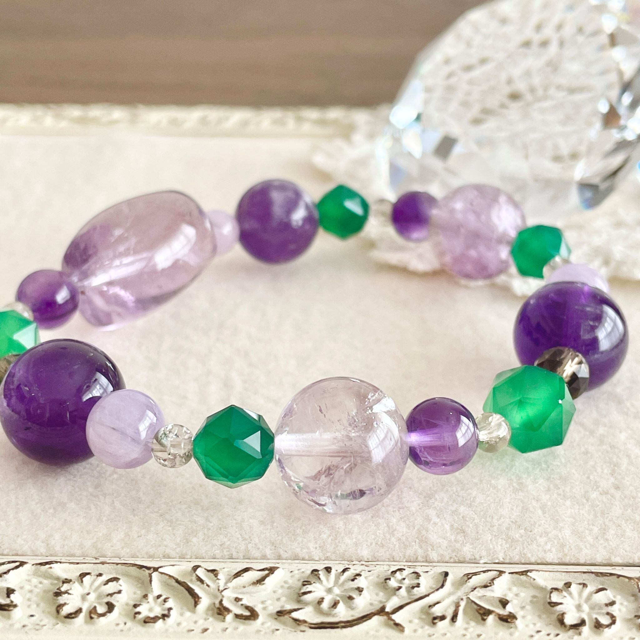 ronde アメシスト+グリーンオニキス+スモーキークォーツのブレスレット ams-b-2511-02