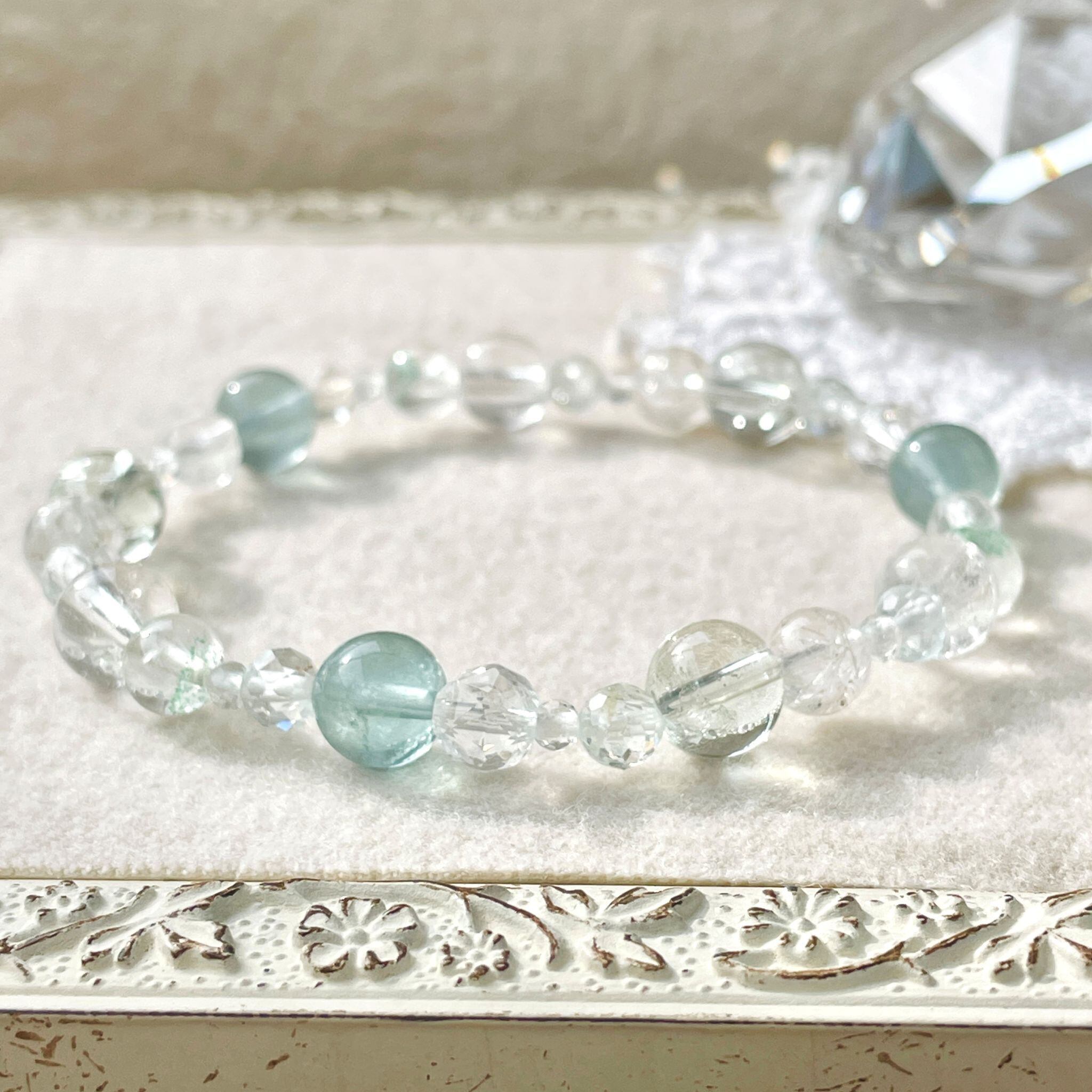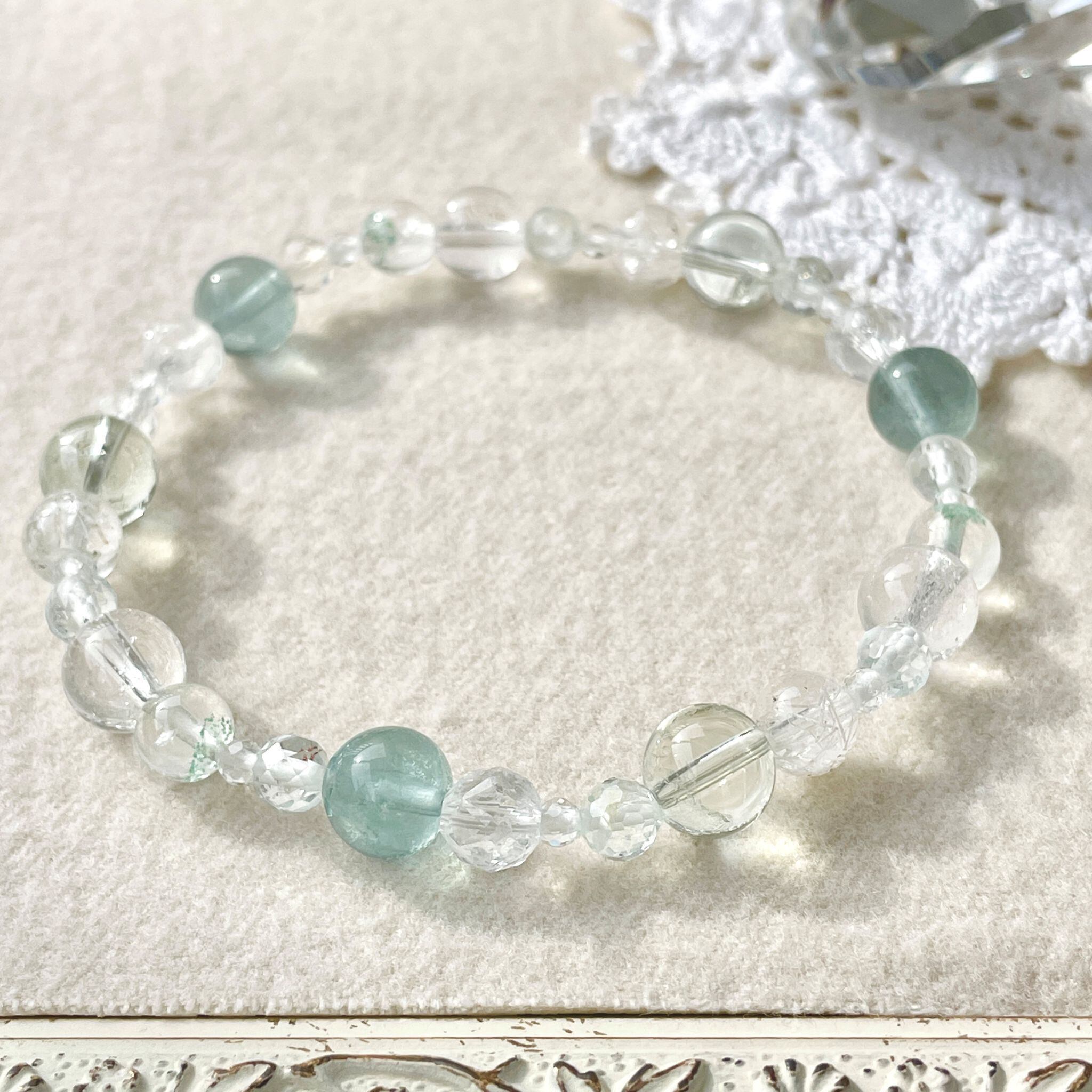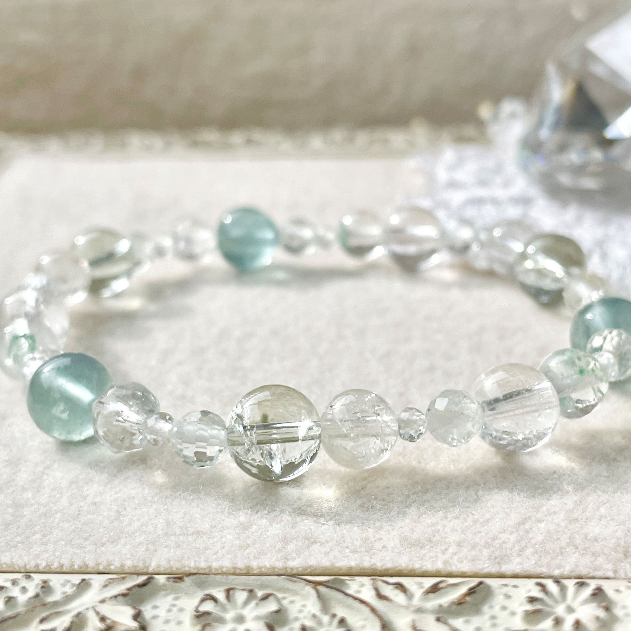 ronde ~白南風~ブルーフローライト+プラジオライト+ヒマラヤクォーツのブレスレット ful-b-2512-04