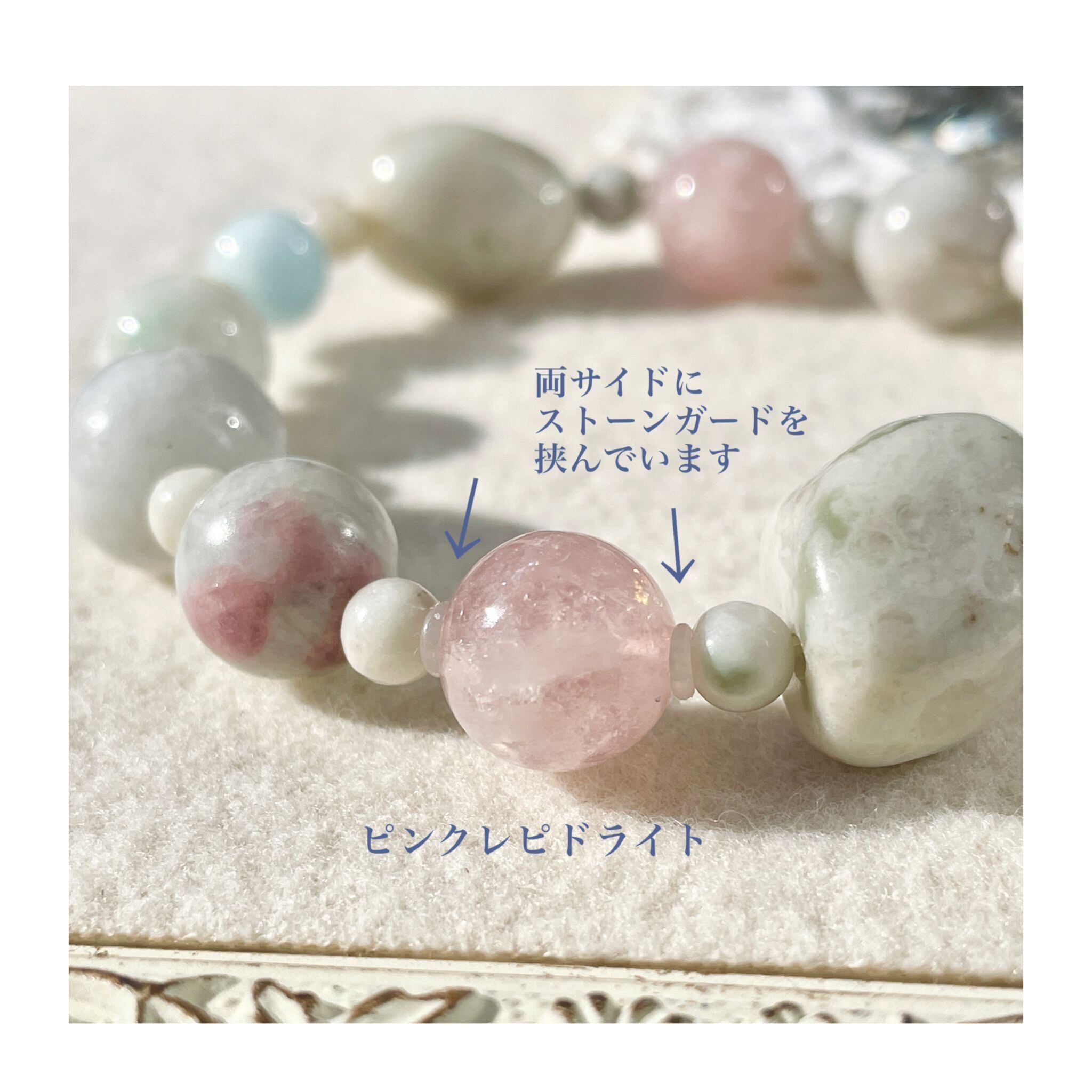 ※ピンクレピドライト…傷のつきやすい石質をしていますので、両サイドにシリコン製のストーンガードを挟み入れています。