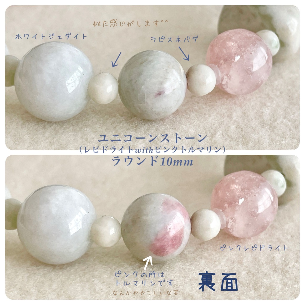 合わせた石は、白の多いラピスネバダに似た感じの石を選んでいます。