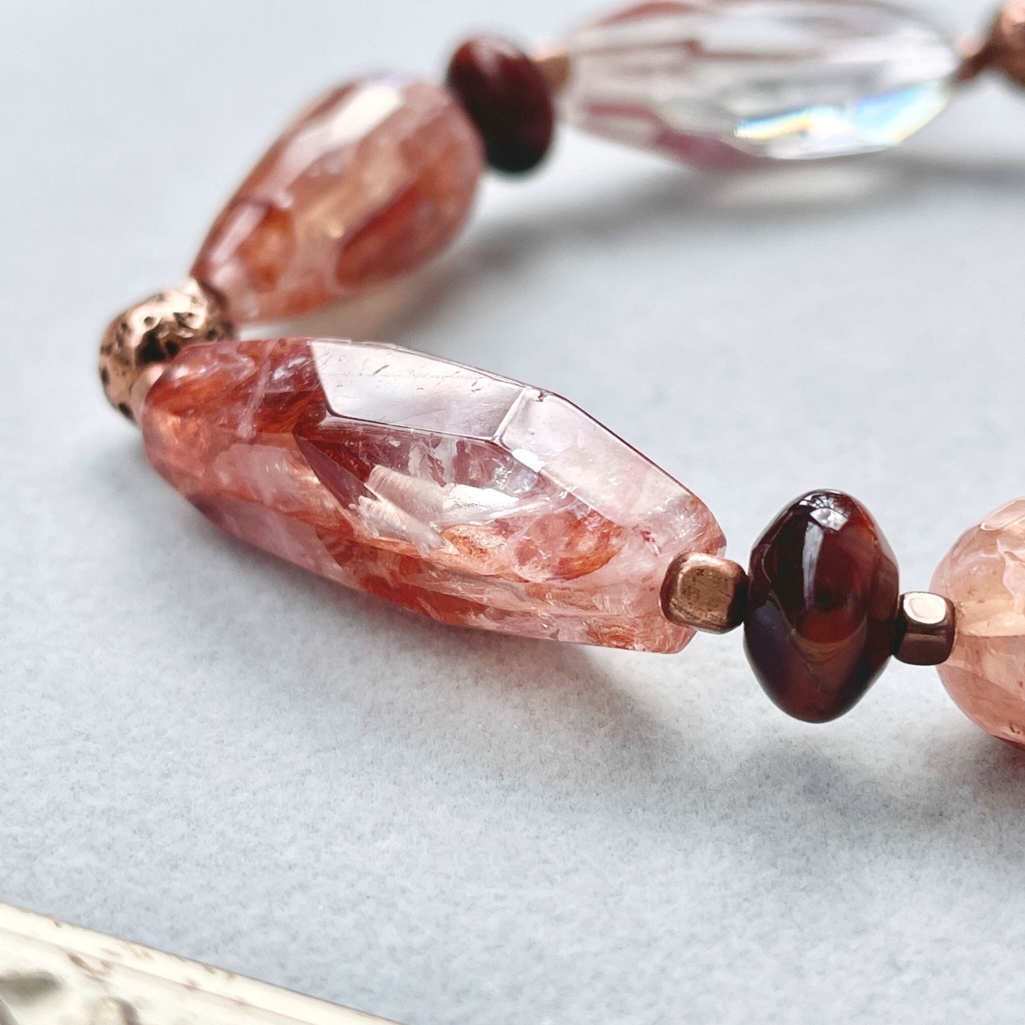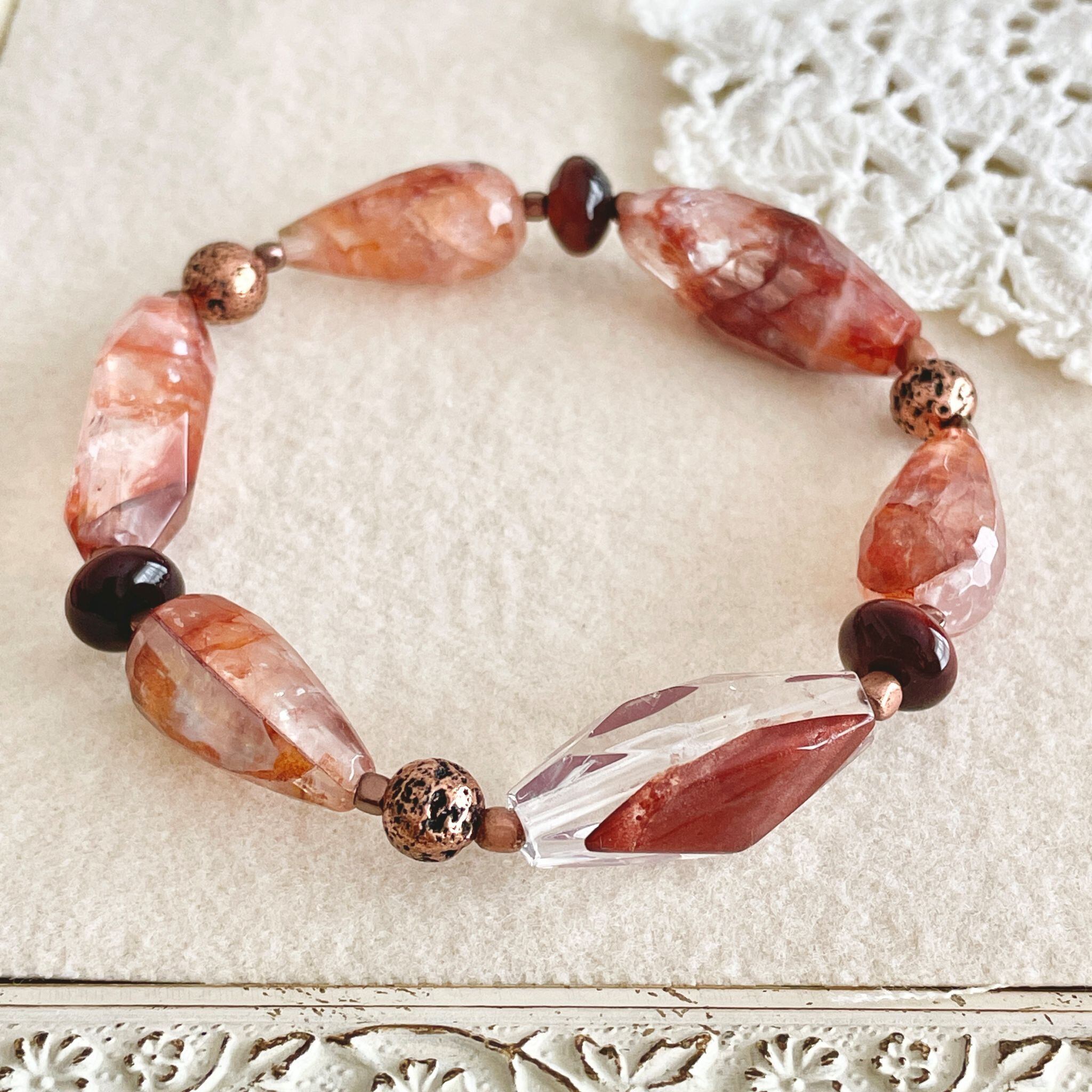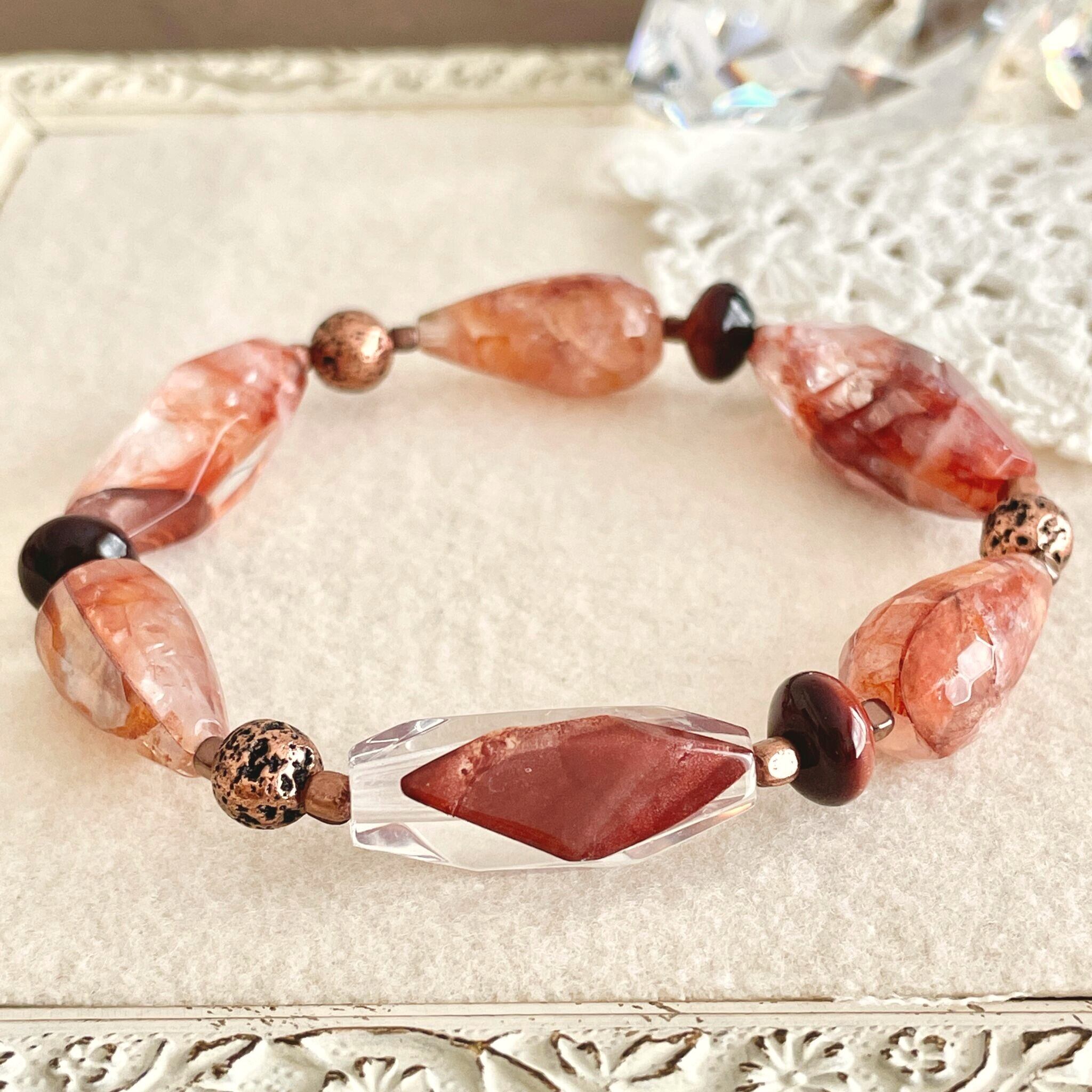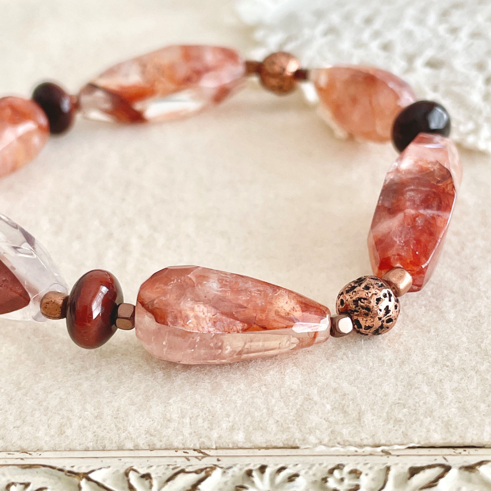 赤茶系のレッドヘマタイトクォーツを使ったブレスレットです。