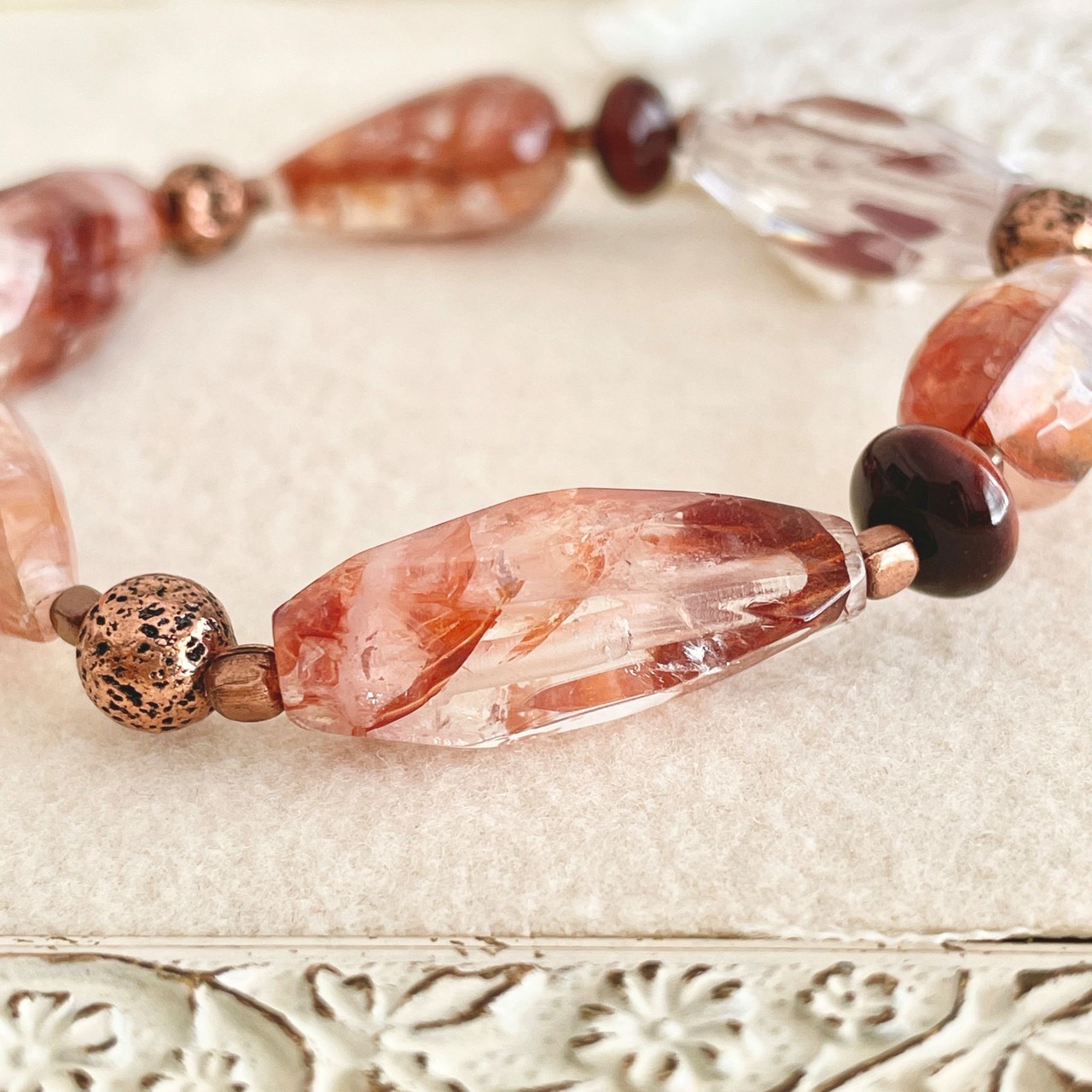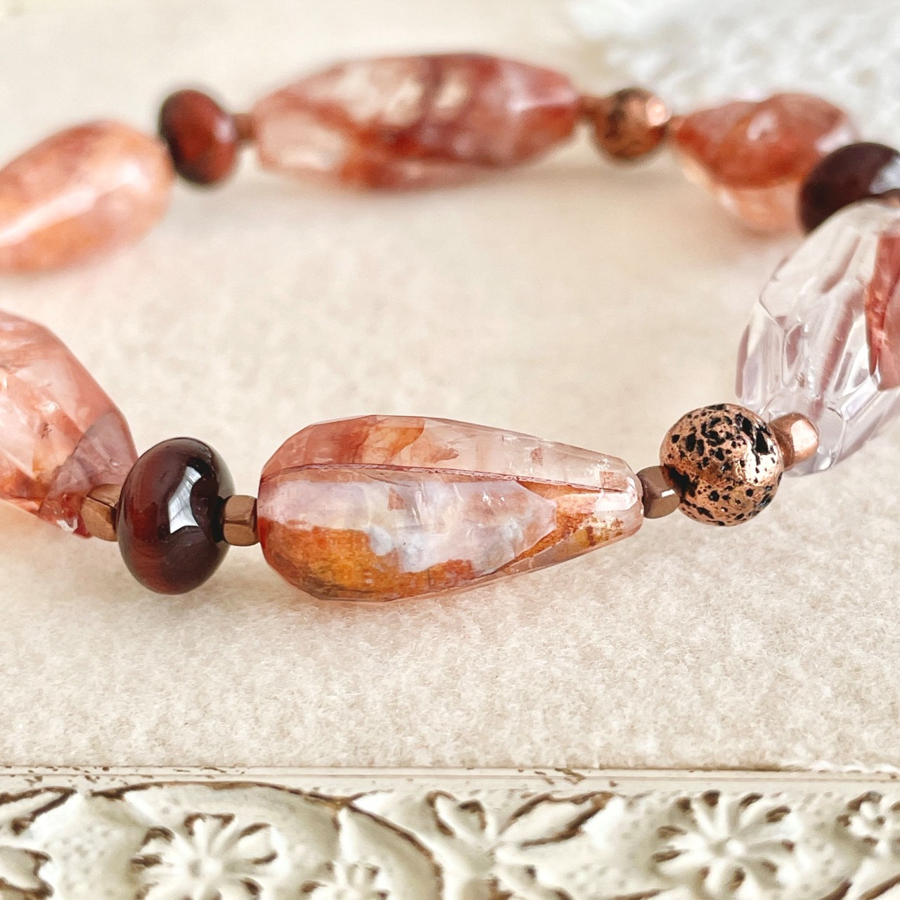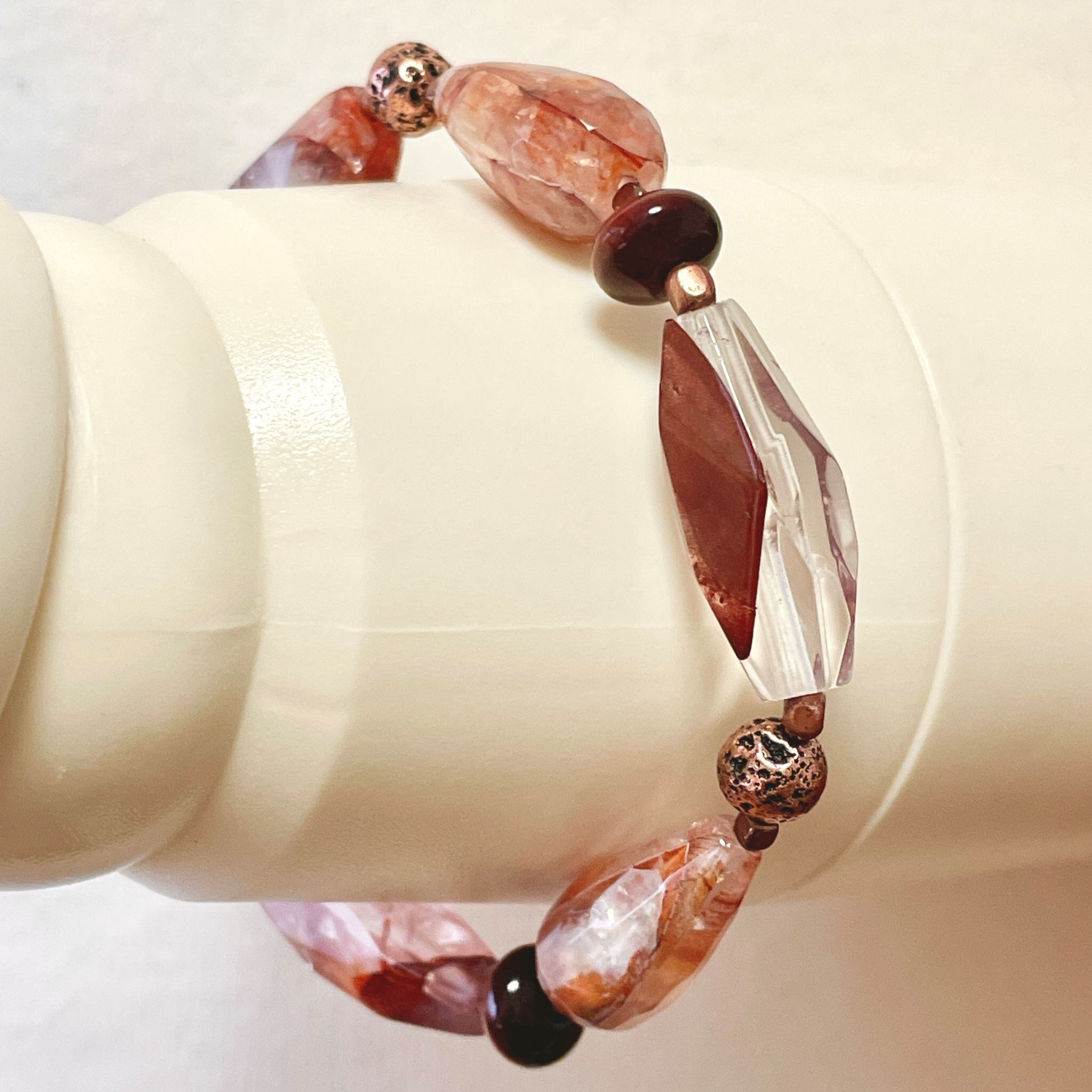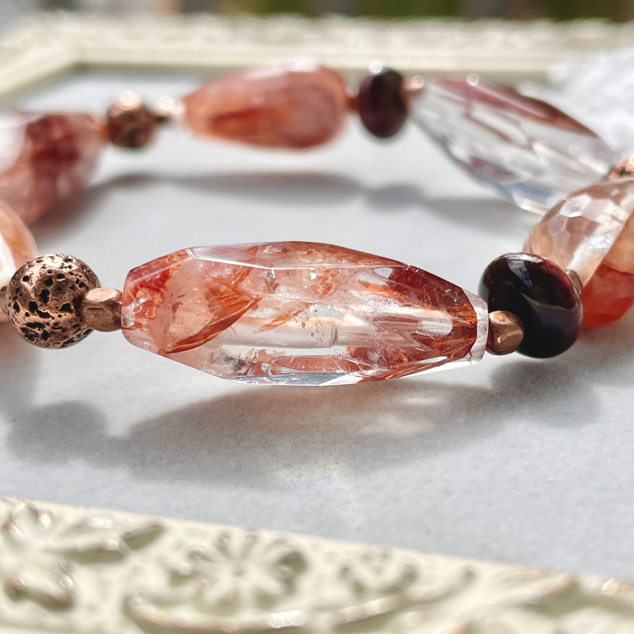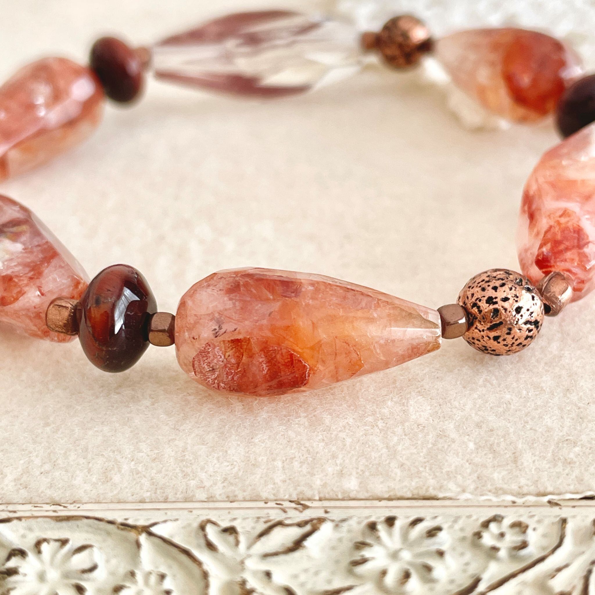 赤茶系のレッドヘマタイトクォーツを使ったブレスレットです。