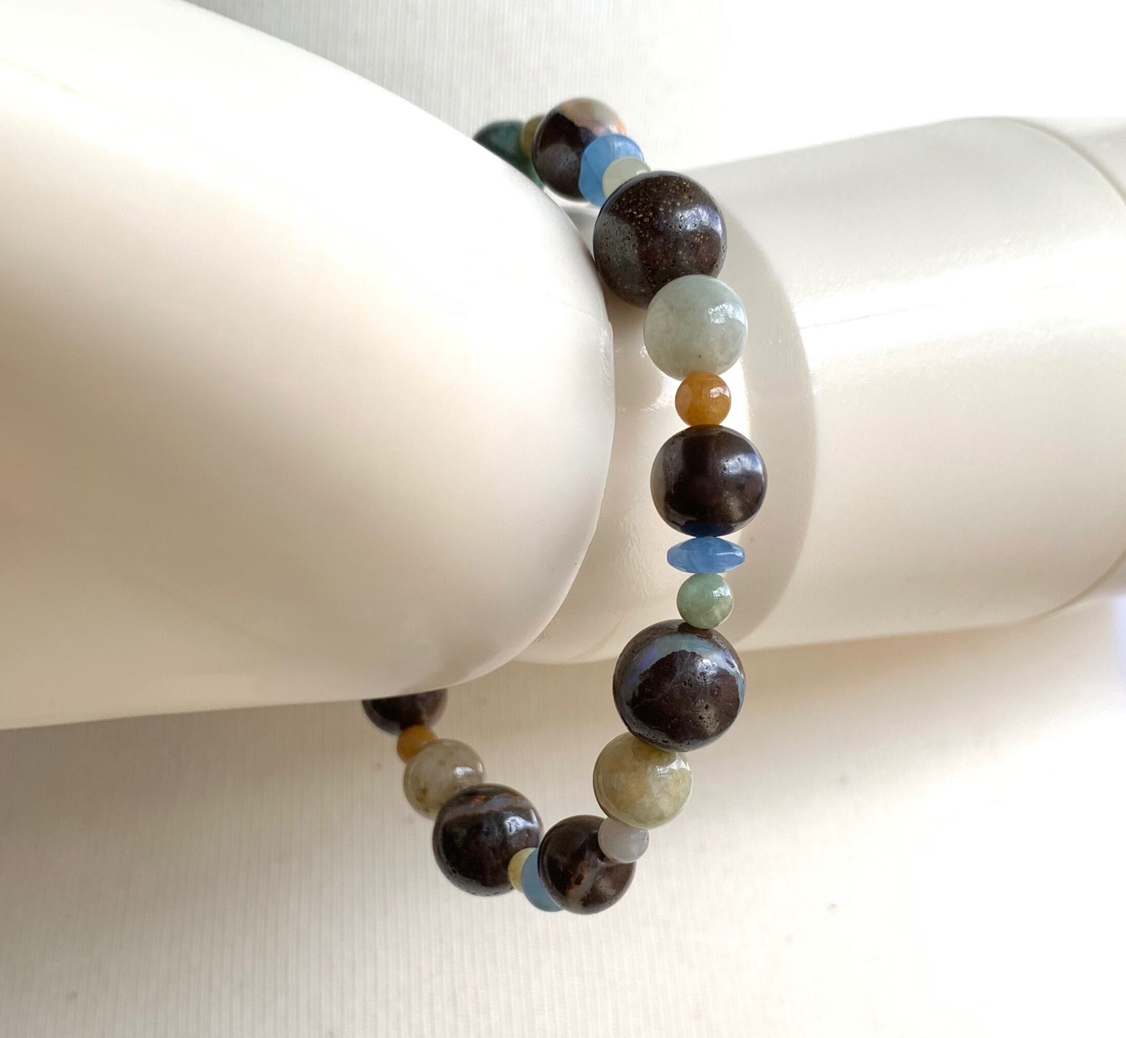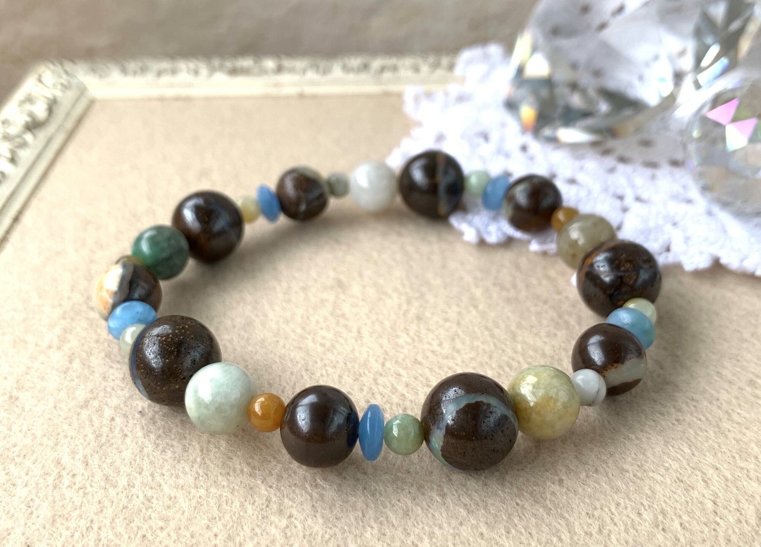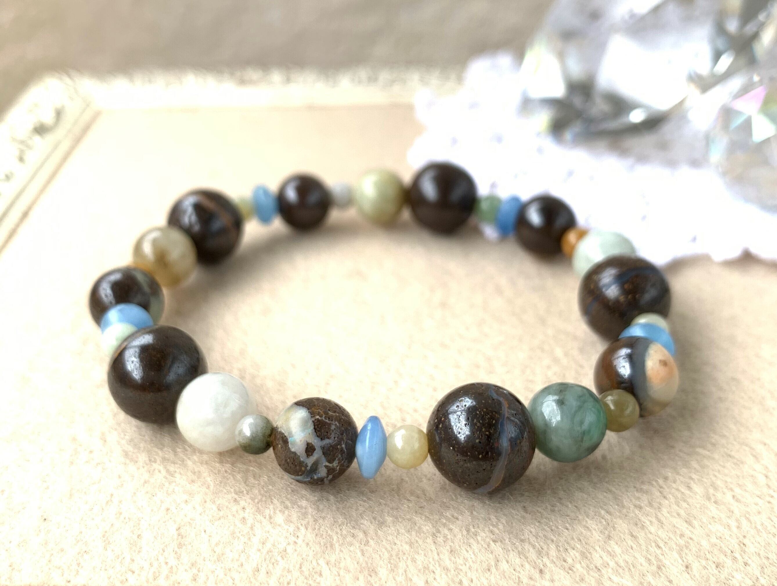 ronde ボルダーオパール+ジェダイトのブレスレット opb-b-2009-04
