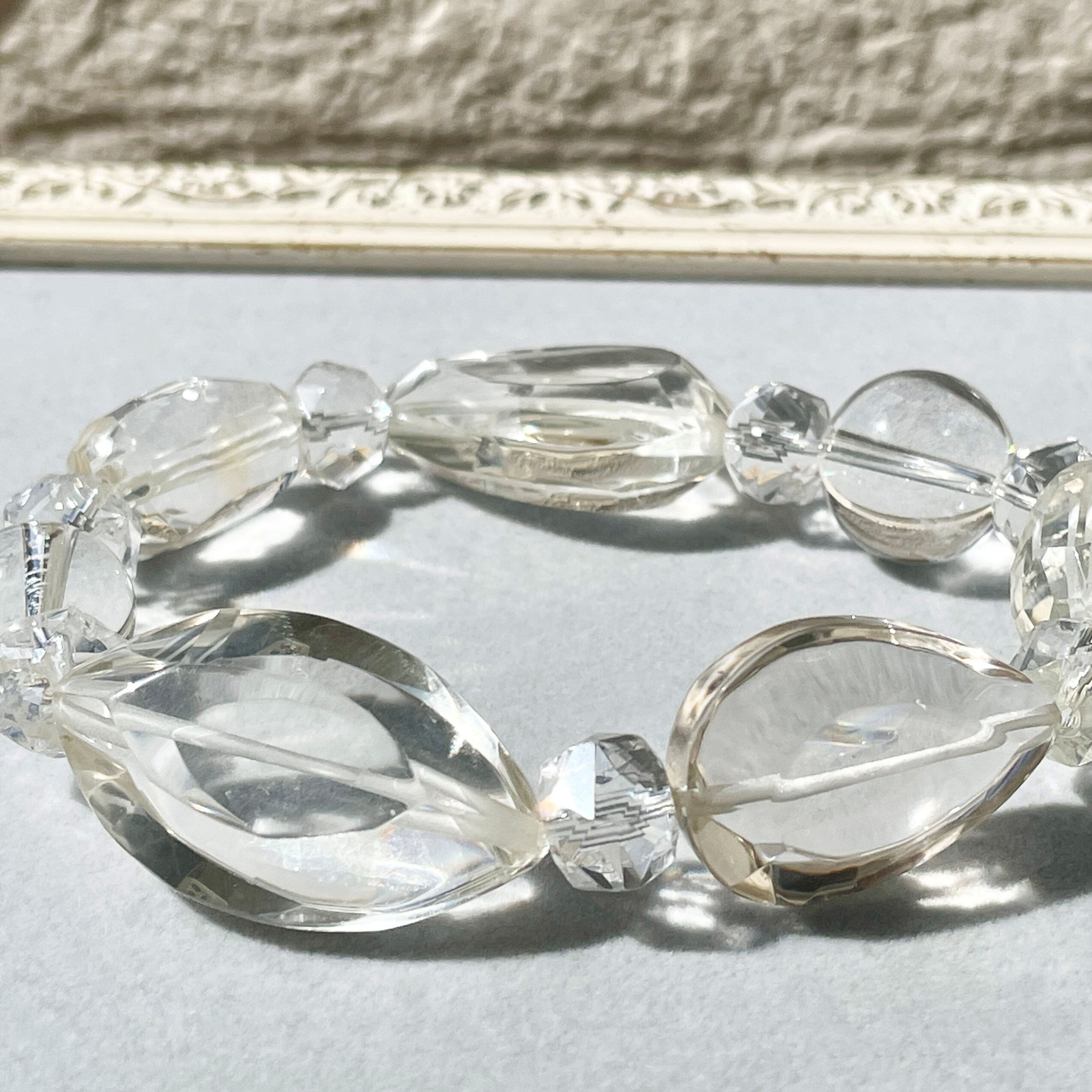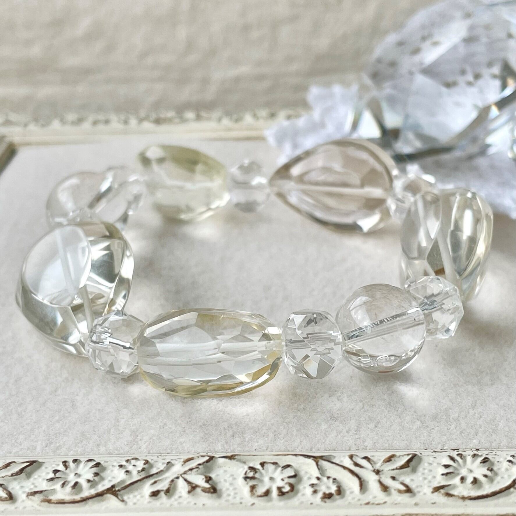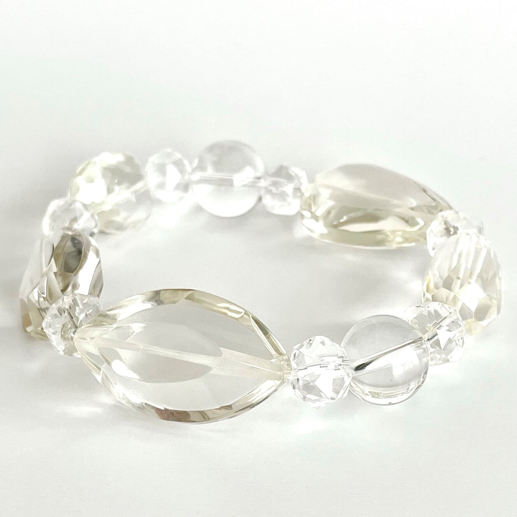 【ご予約品】ronde ライトカラーシトリン(非加熱)+アイスクォーツ+クリスタル(天然水晶)のブレスレット cit-b-2202-08