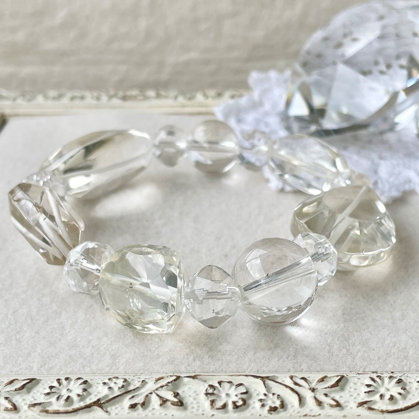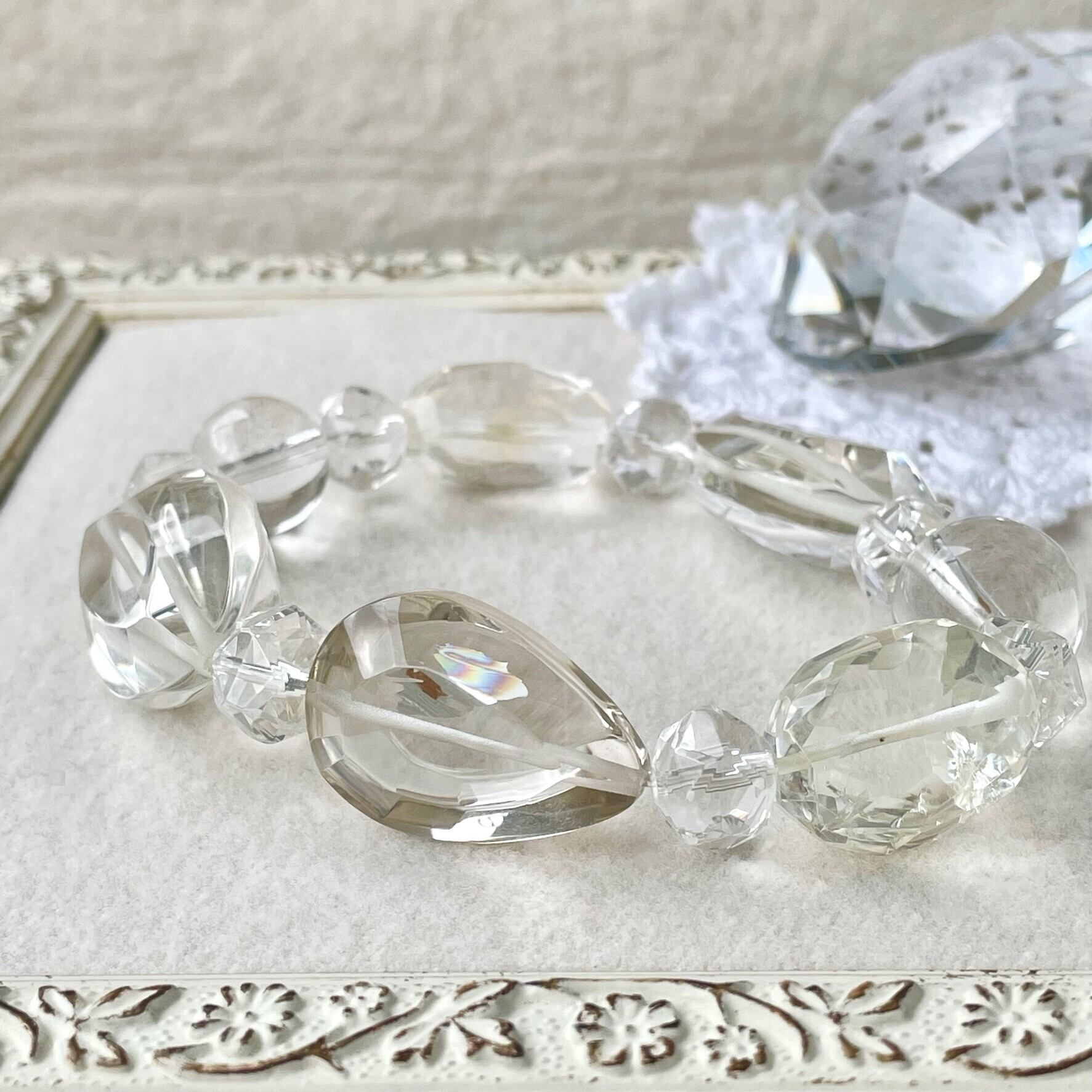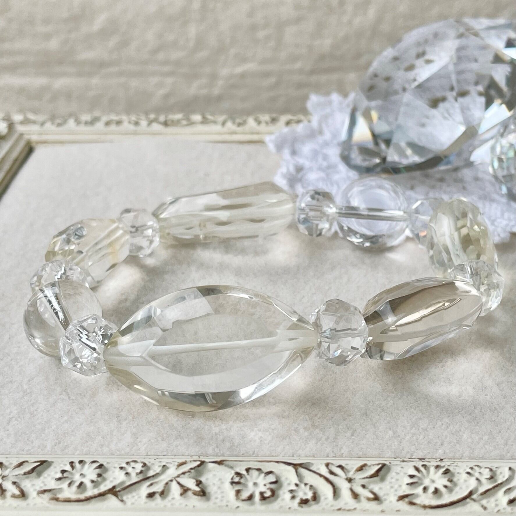 【ご予約品】ronde ライトカラーシトリン(非加熱)+アイスクォーツ+クリスタル(天然水晶)のブレスレット cit-b-2202-08