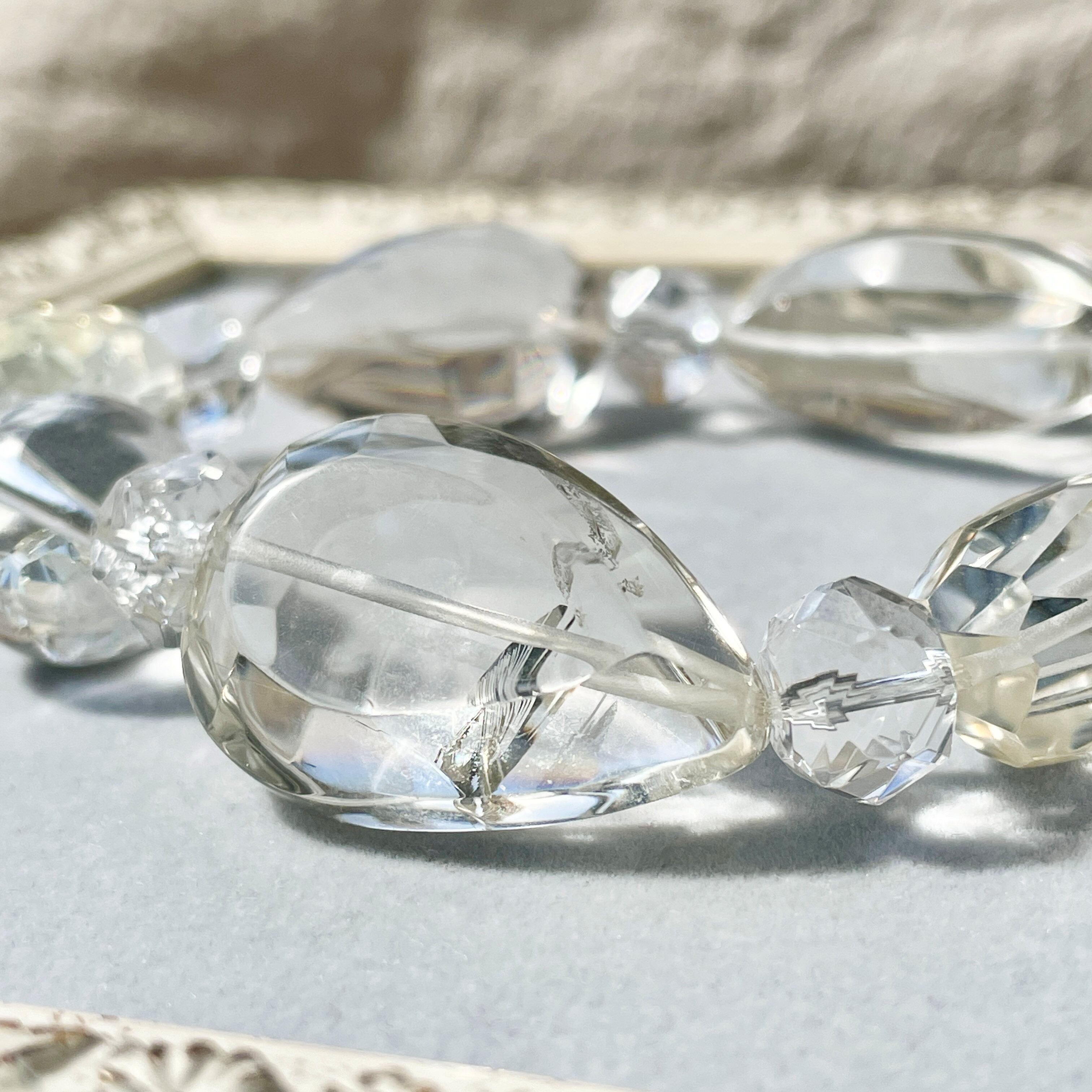 クセがなく浄化作用が強力な石です。カットや内包物、コーティングによってその特性が変わると言われています。他の石からの影響を受ける事がないので、水晶を使って他の石を浄化する事もできます。