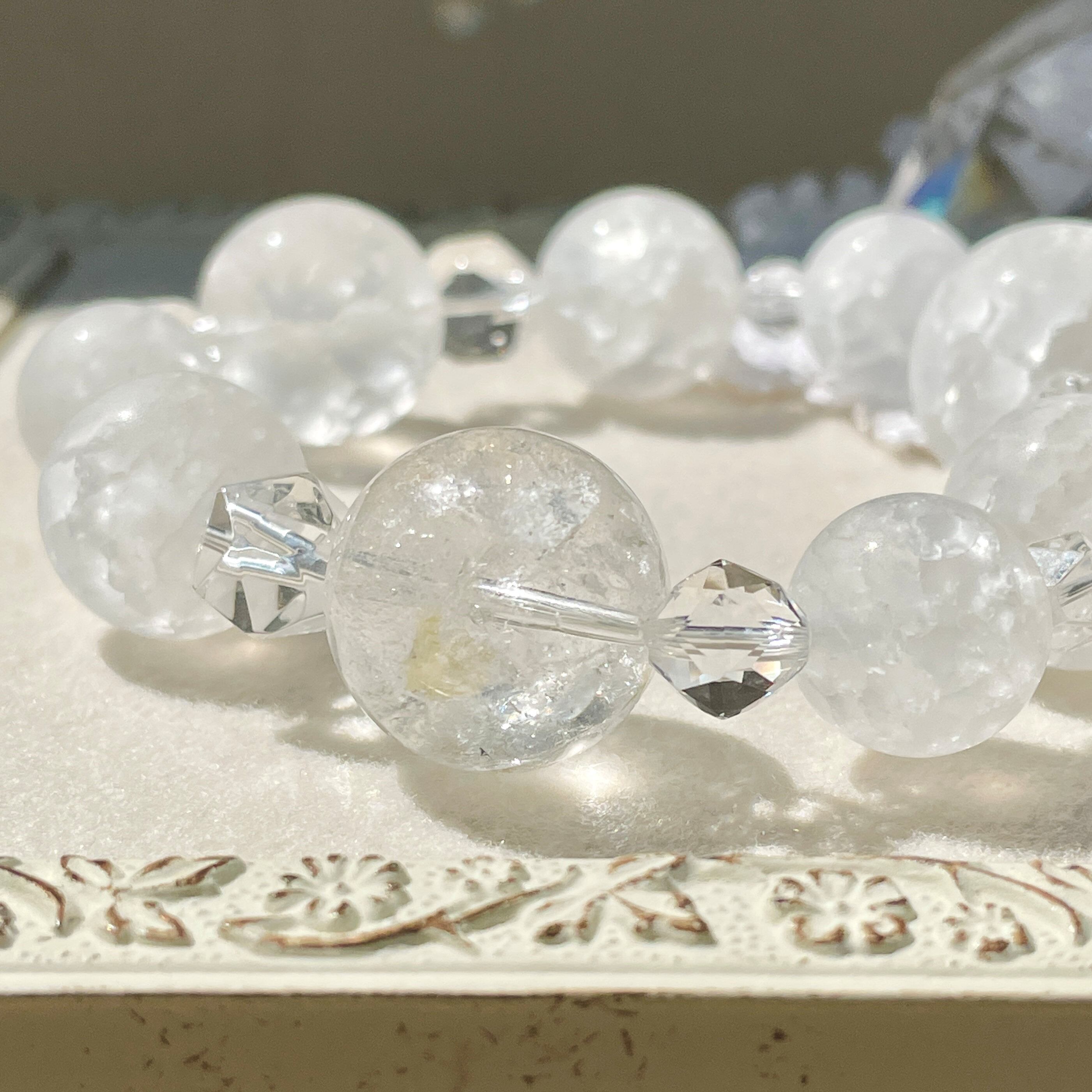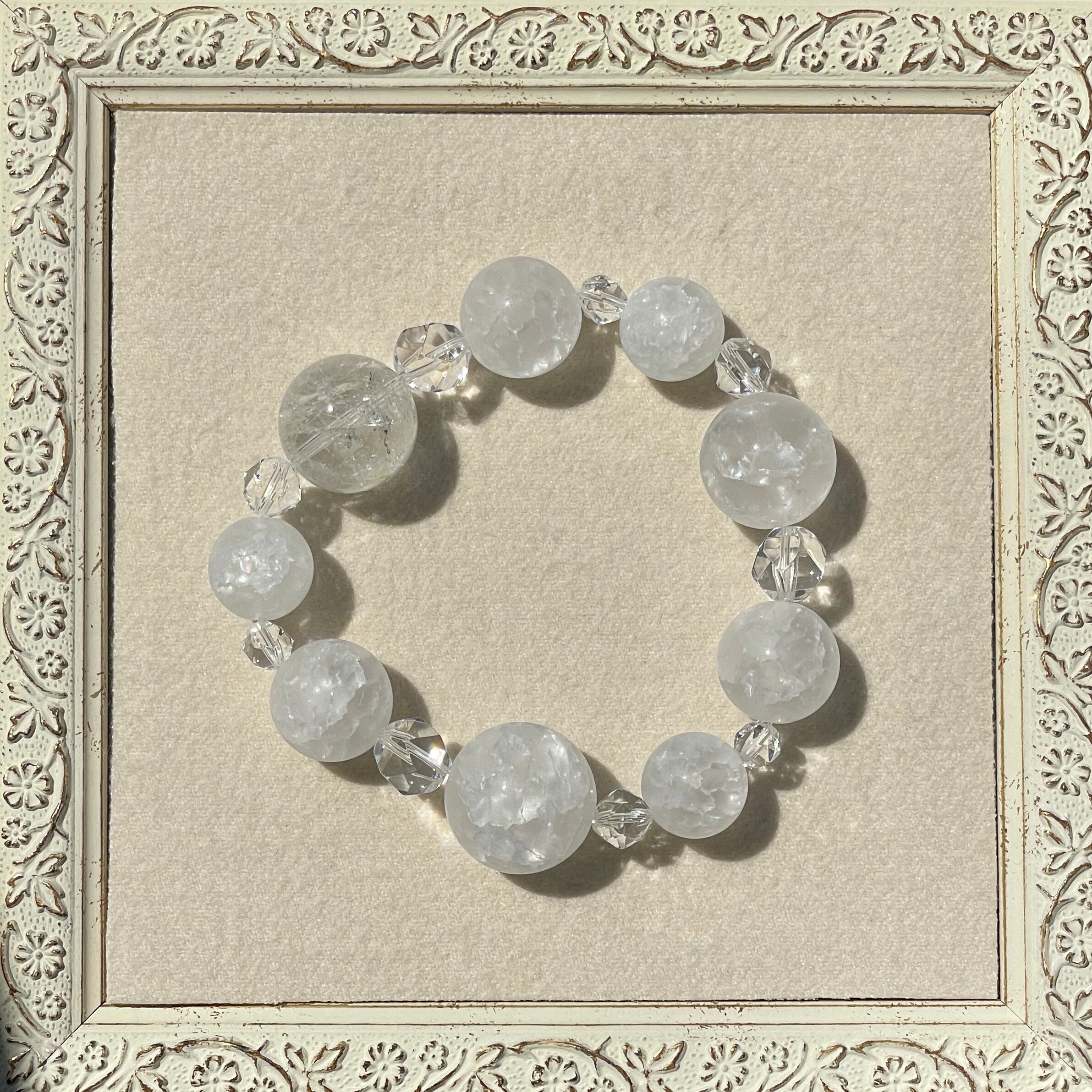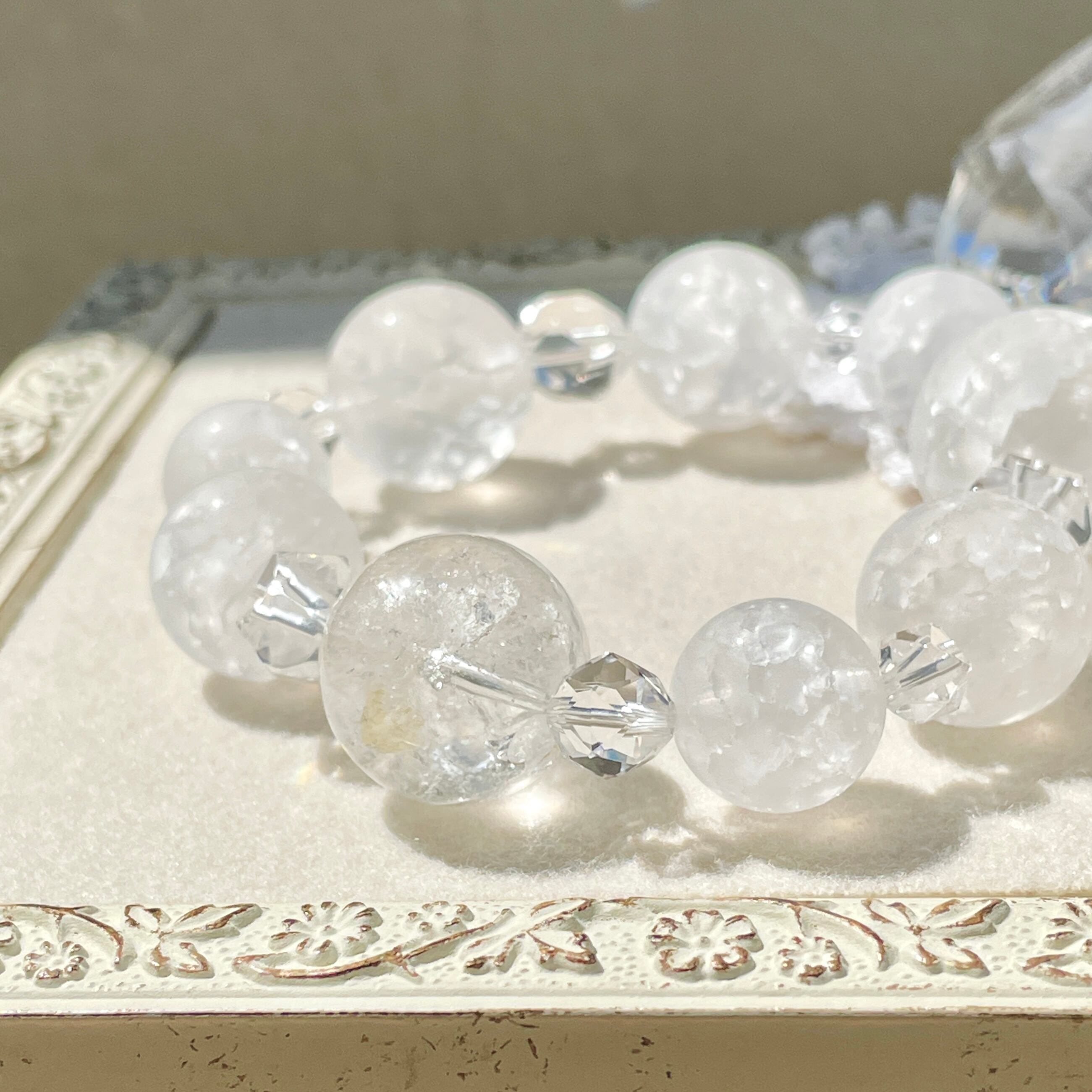 表情の違う2種のクラック入りの水晶を使った迫力のあるブレスレットです。