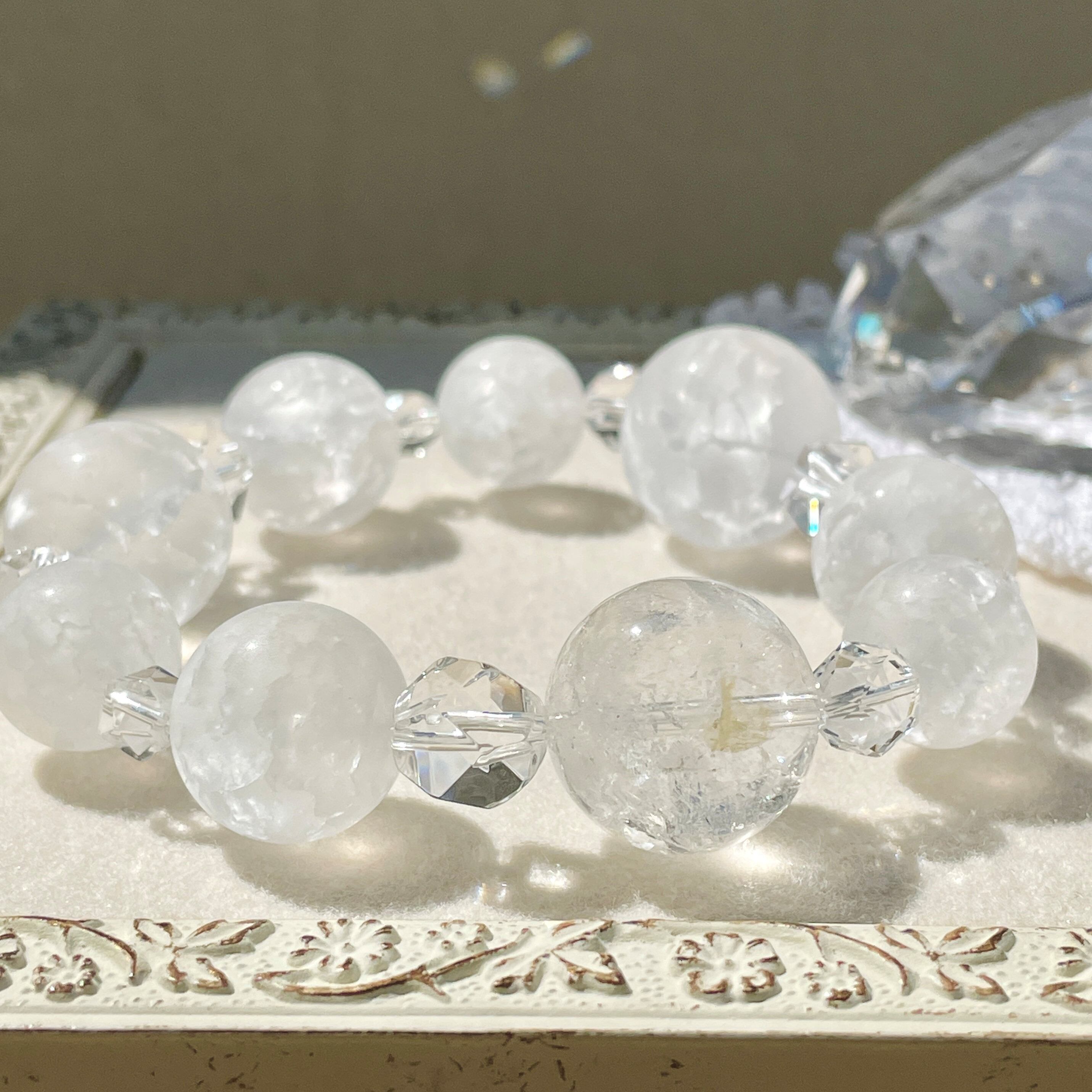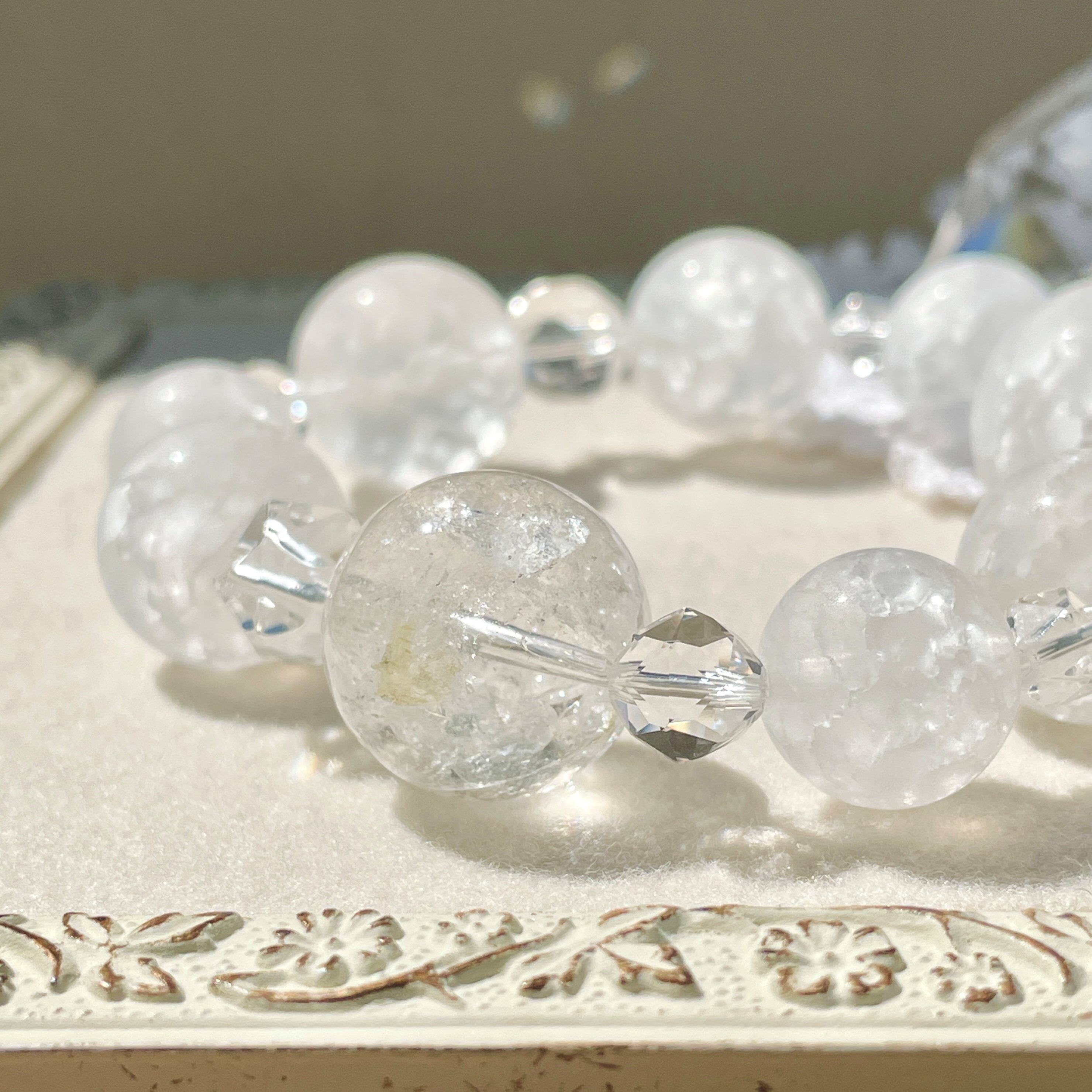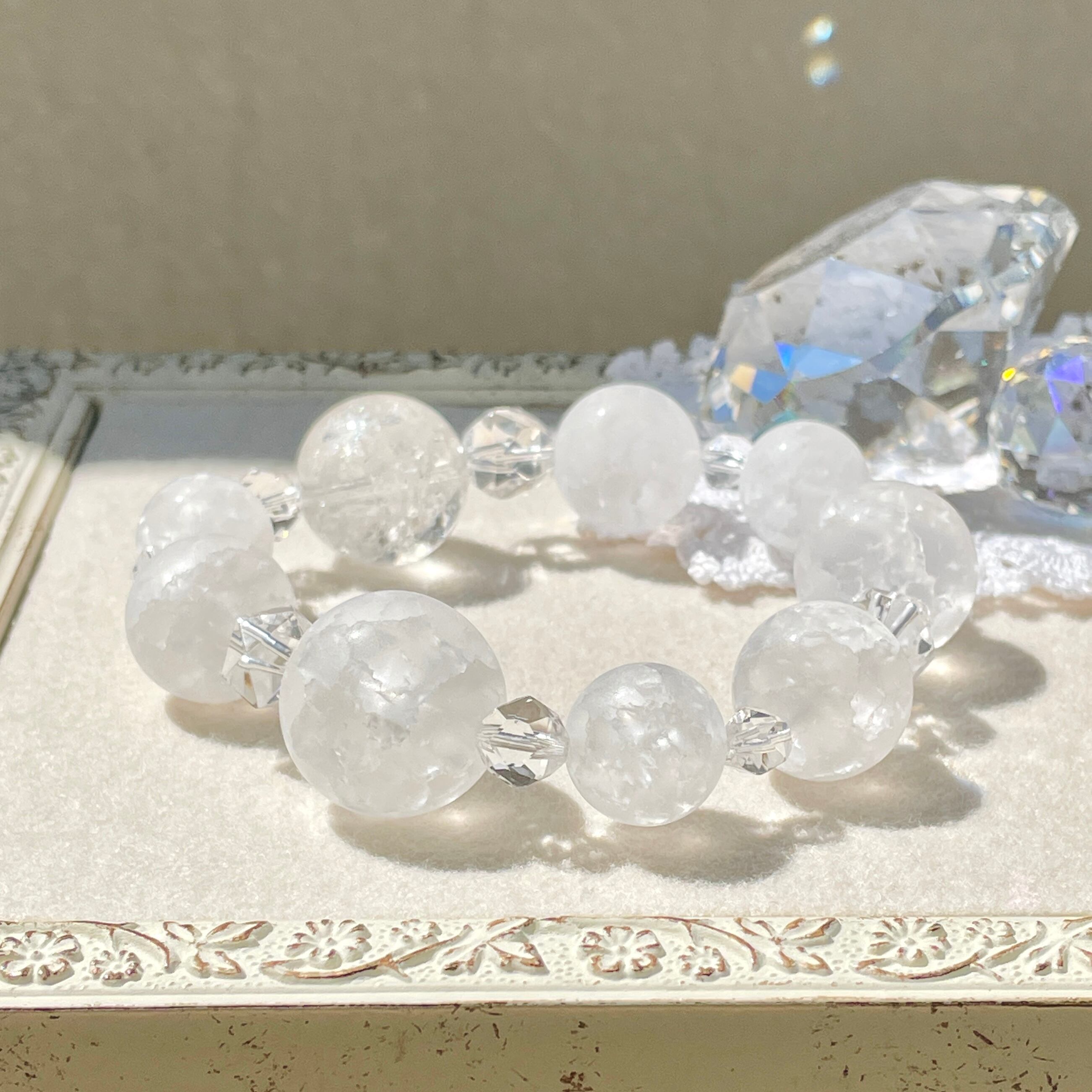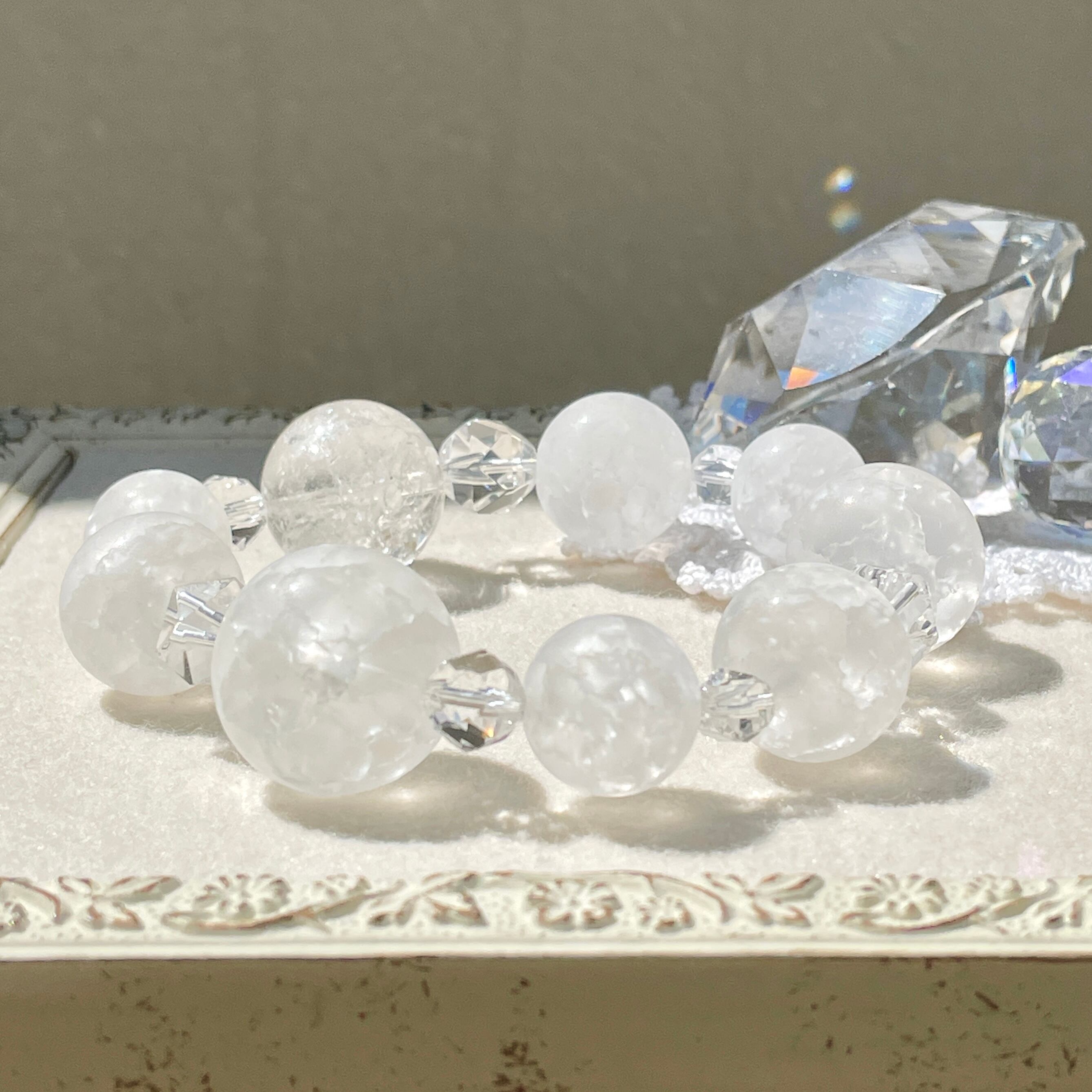表情の違う2種のクラック入りの水晶を使った迫力のあるブレスレットです。