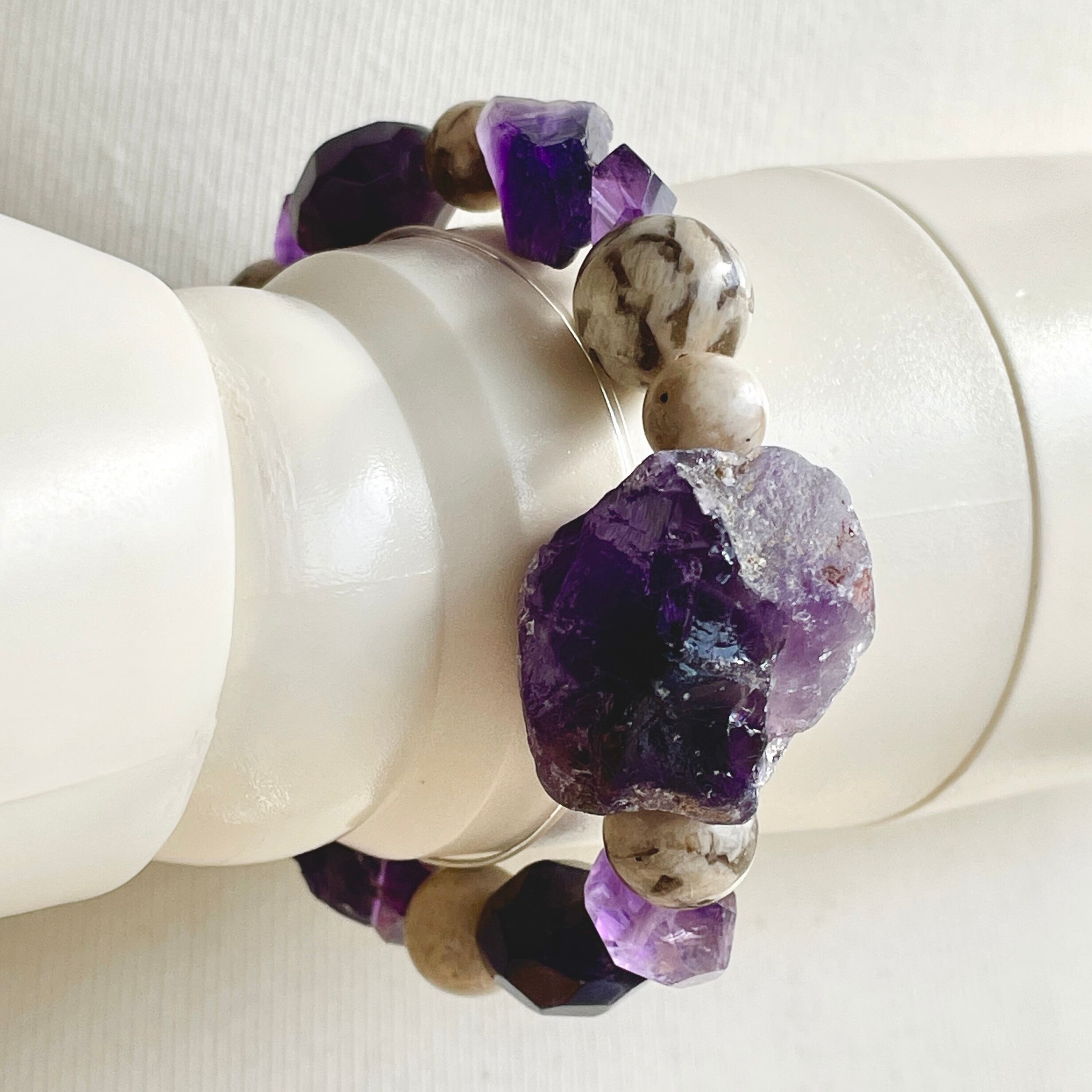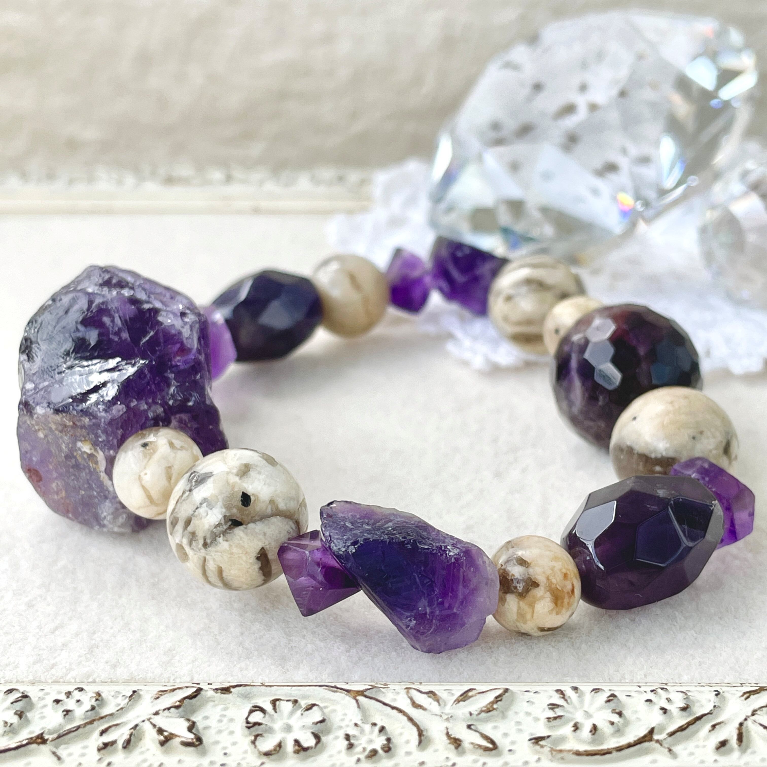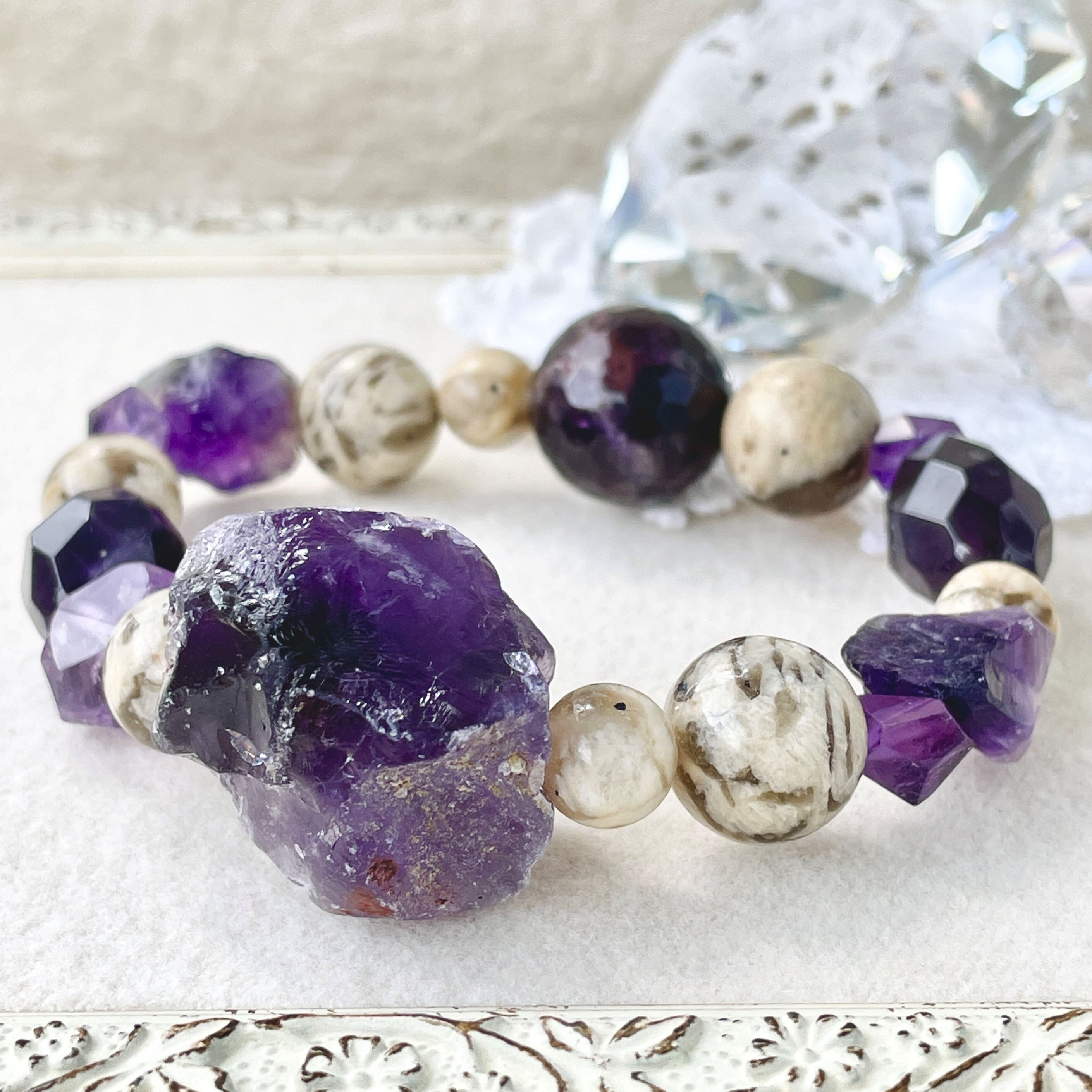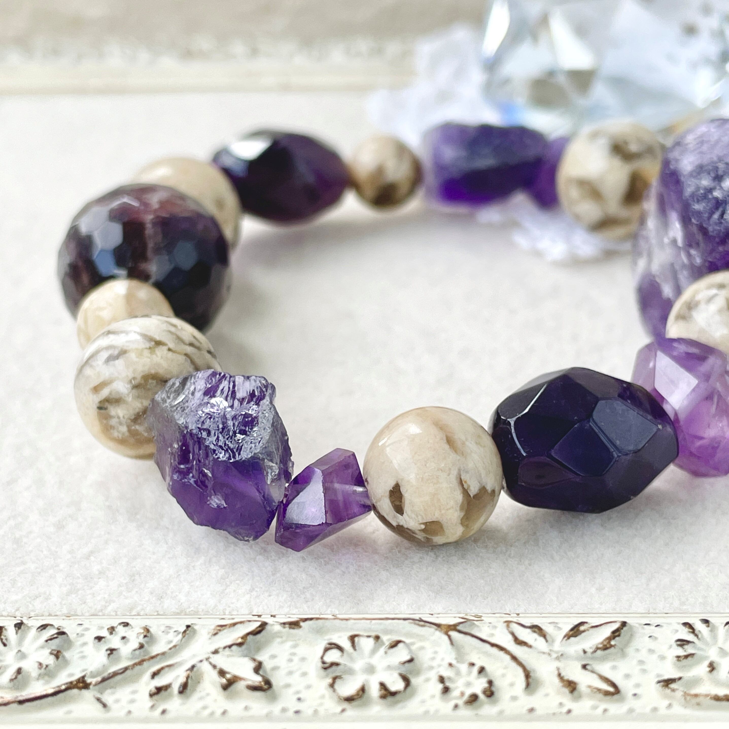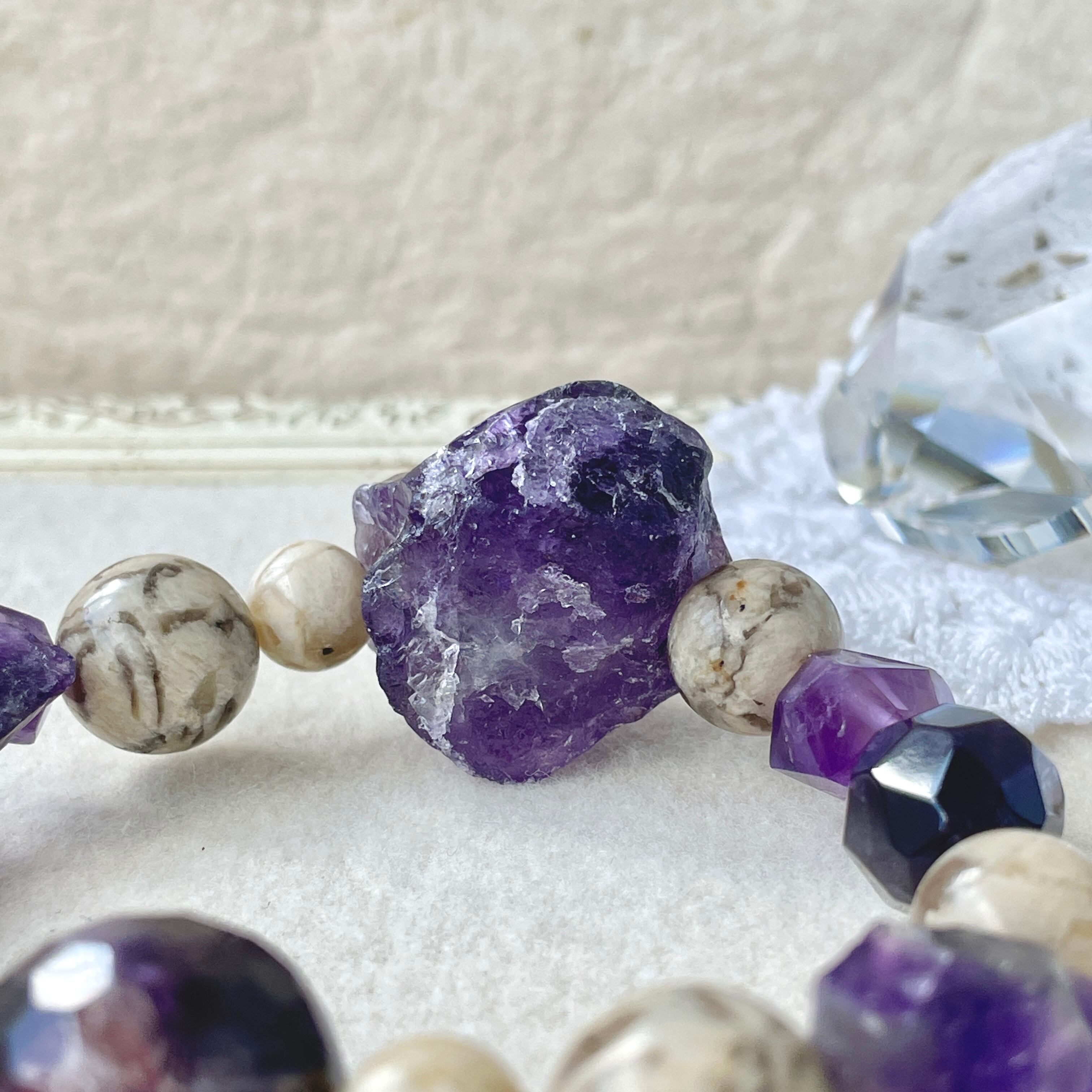 アメシストに母岩などが混じったミックスアメシストは、様々な表情を見せてくれる石です。