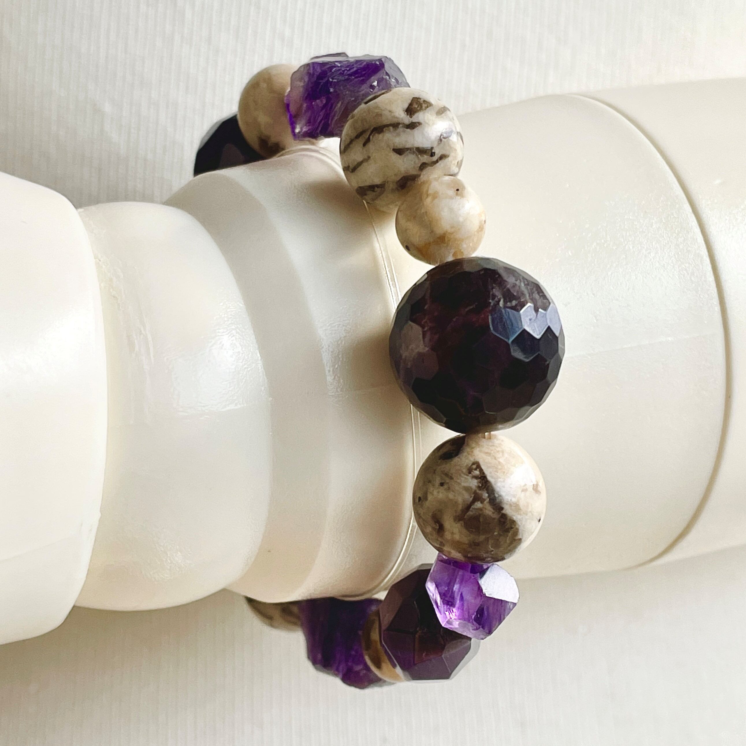 ronde ミックスアメシスト+グラフィックグラナイトのブレスレット ams-b-2210-08