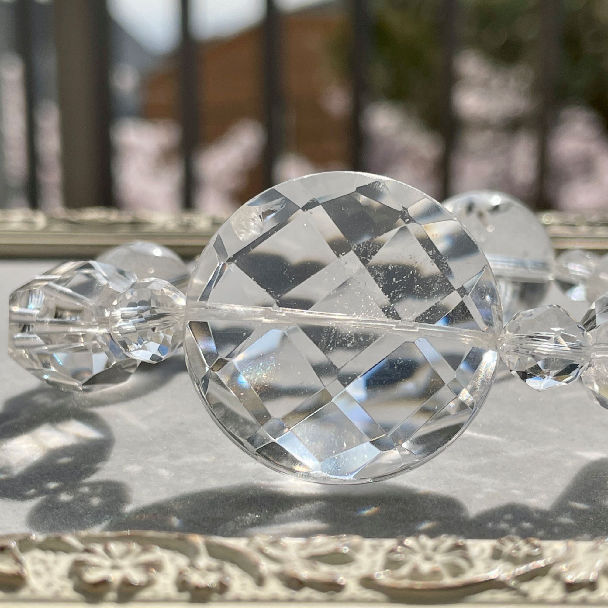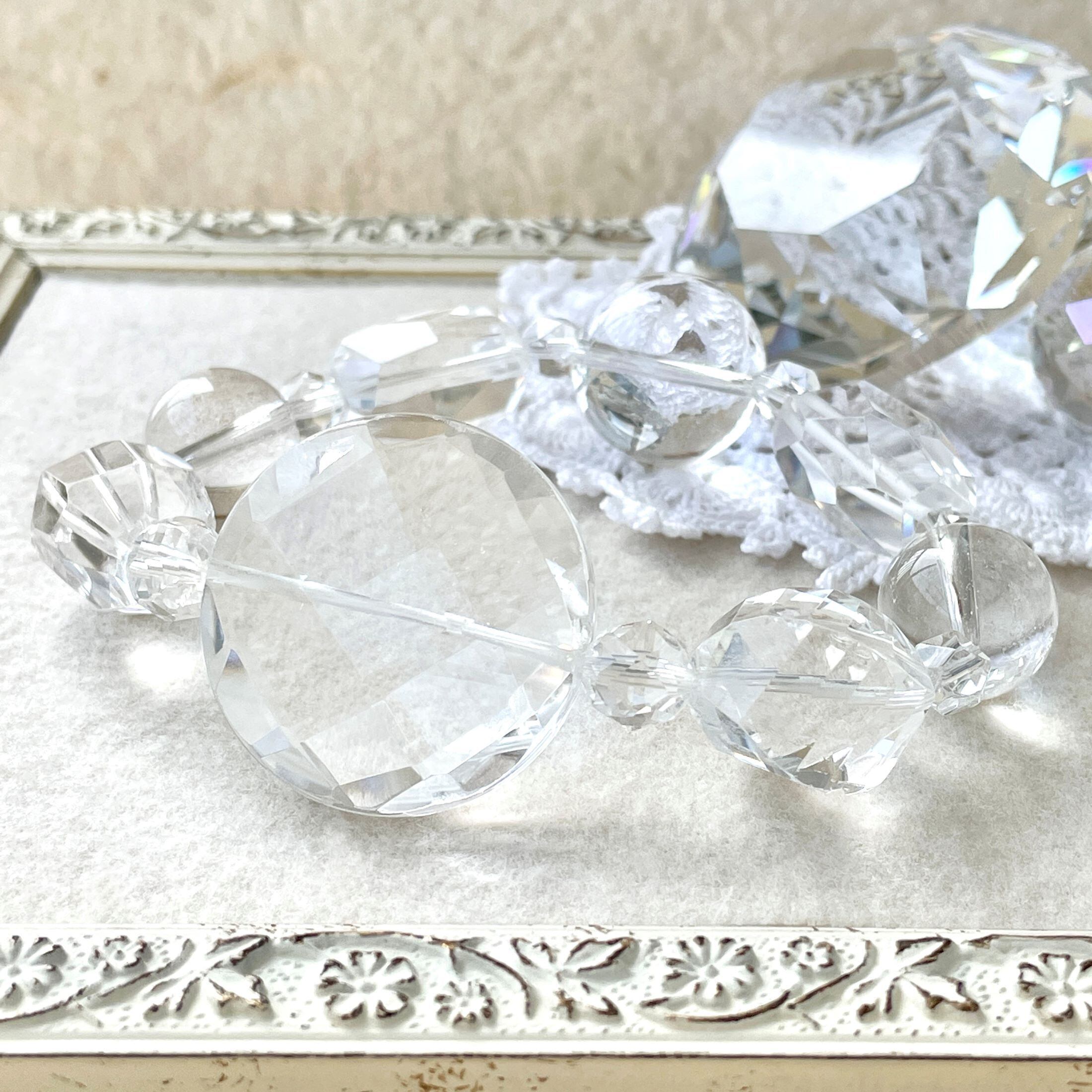 30mmのコインカットを中心に、水晶だけで構成した大ぶりなブレスレットです。