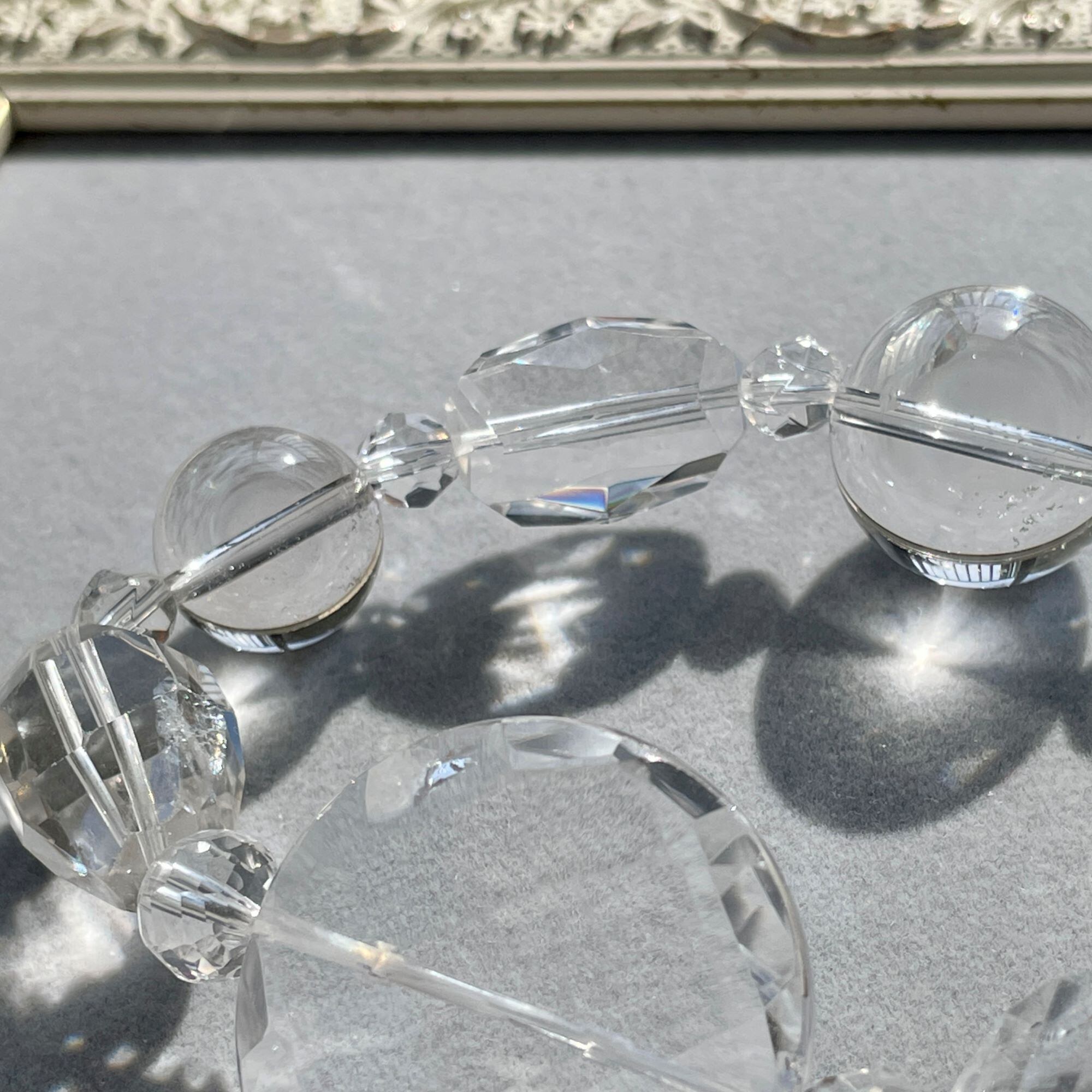 アイスクォーツ(丸玉)もなるべくきれいなものを選びましたが、クラックが見られるものもあります。