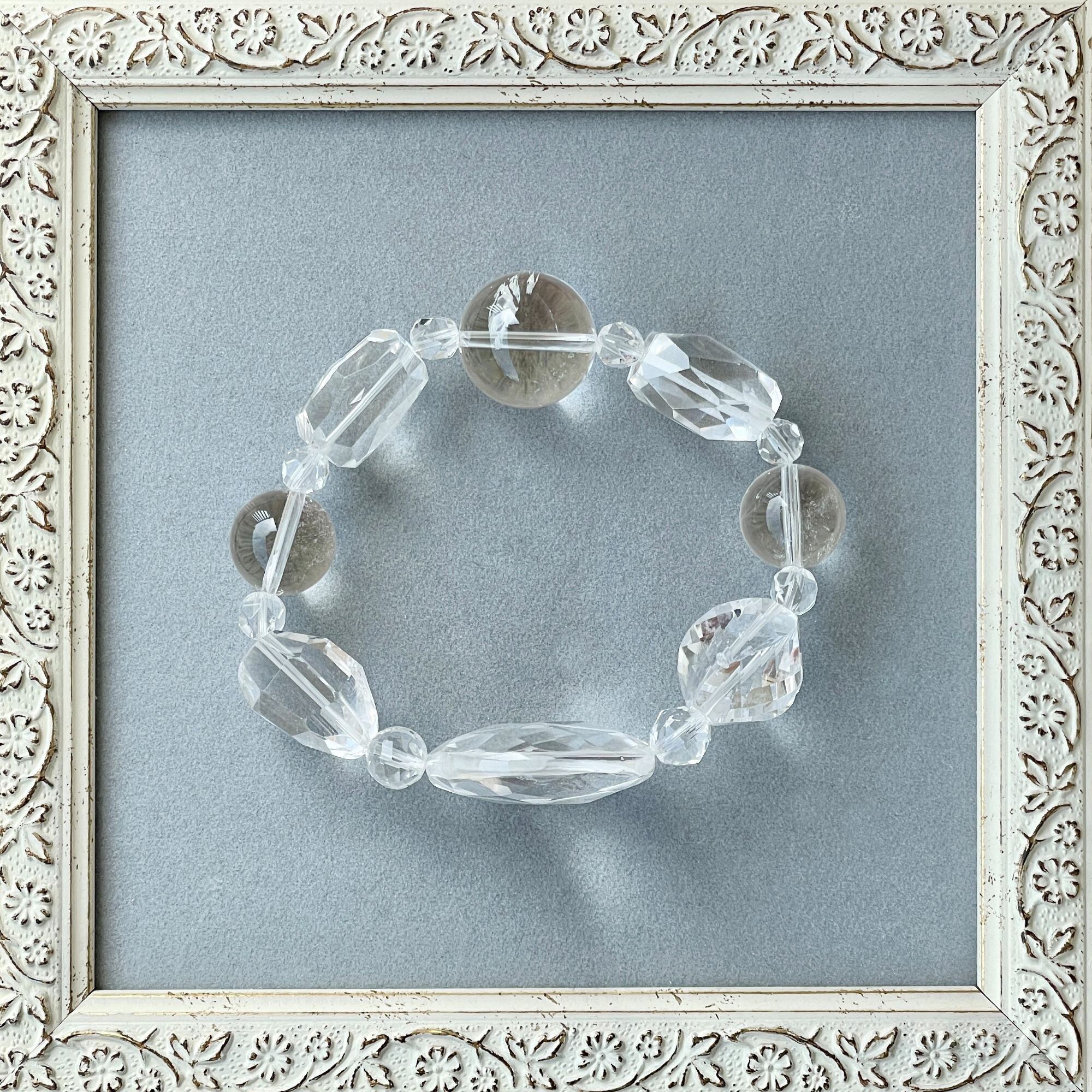 ronde クリスタル(天然水晶)+アイスクォーツ(アイスクリスタル)のブレスレット crs-b-2303-10