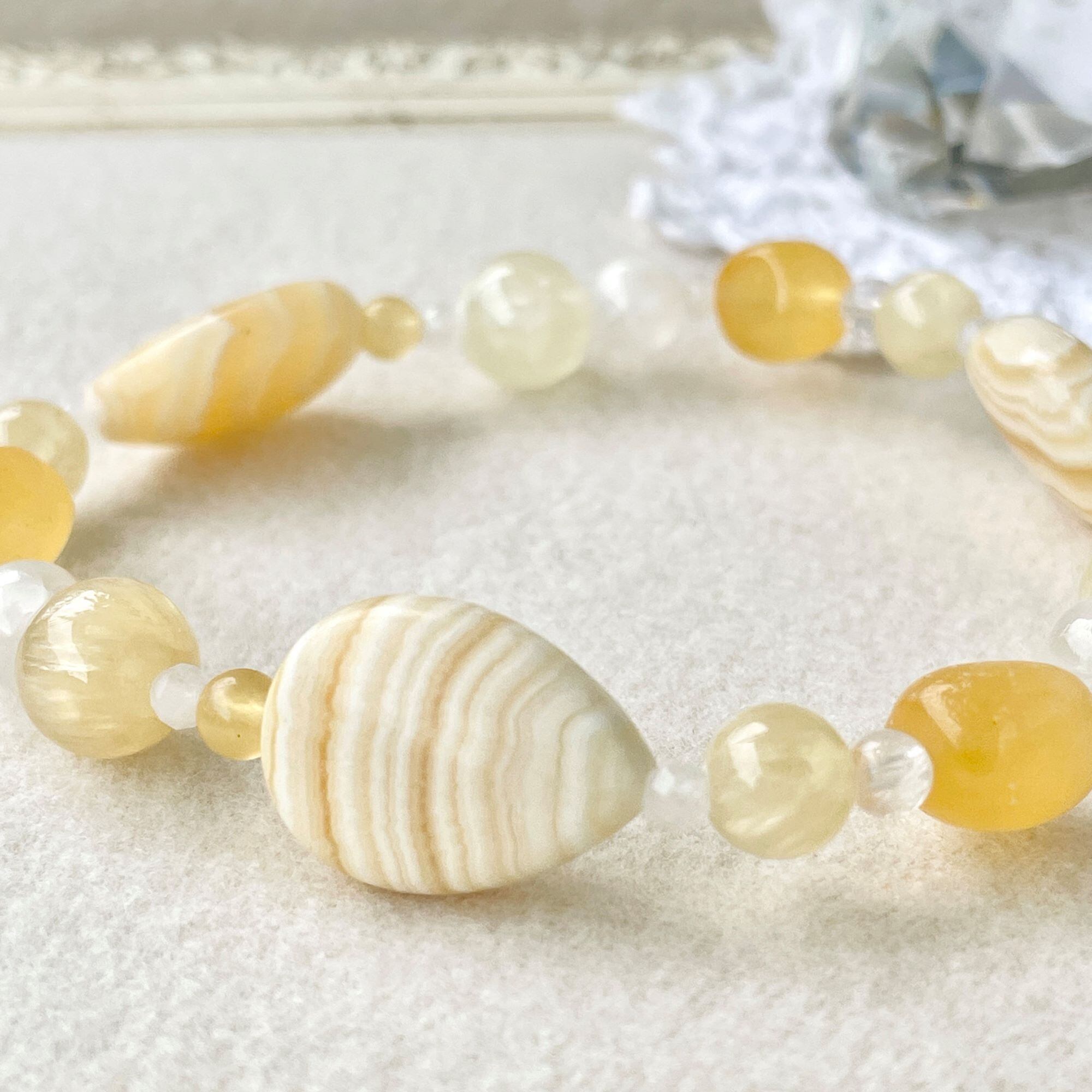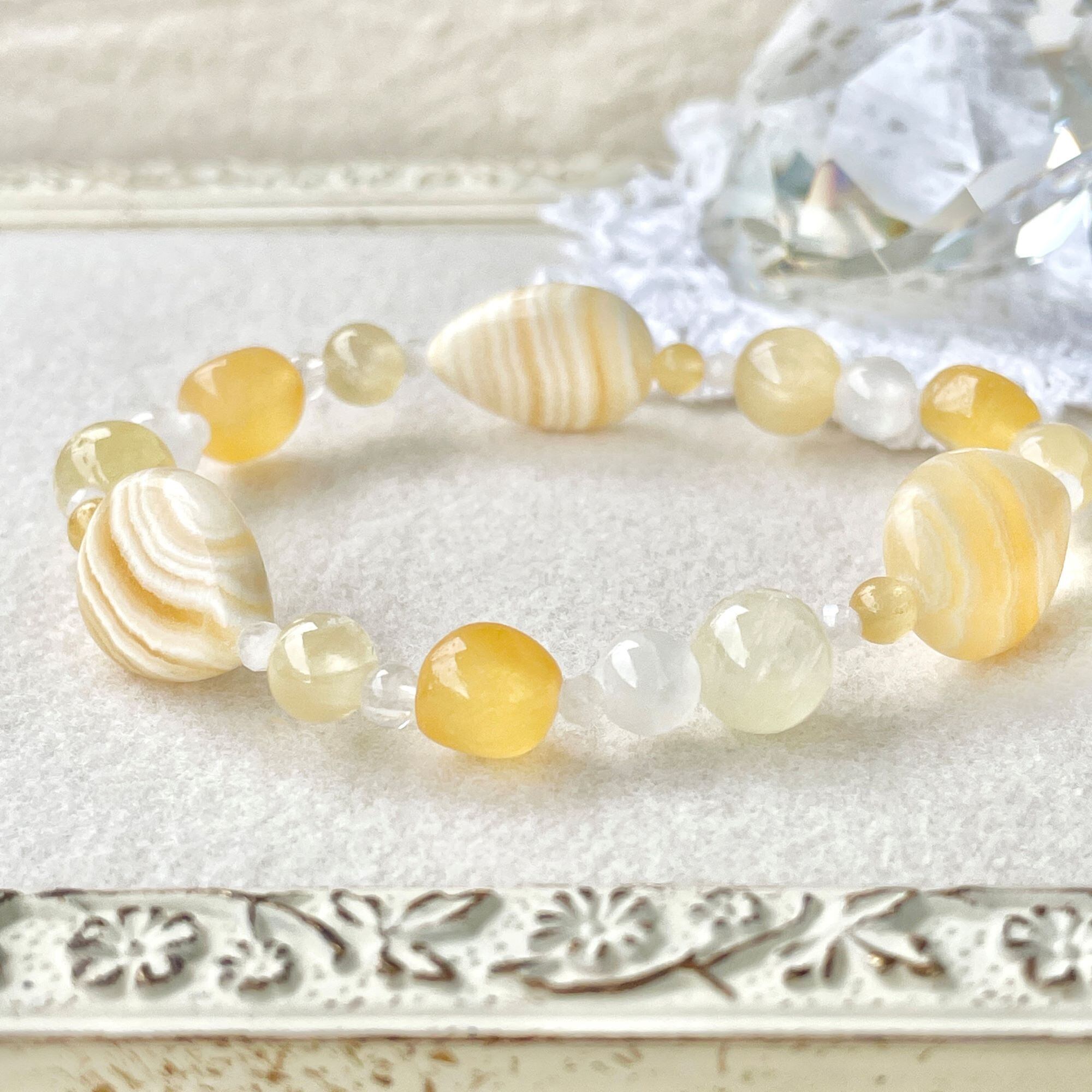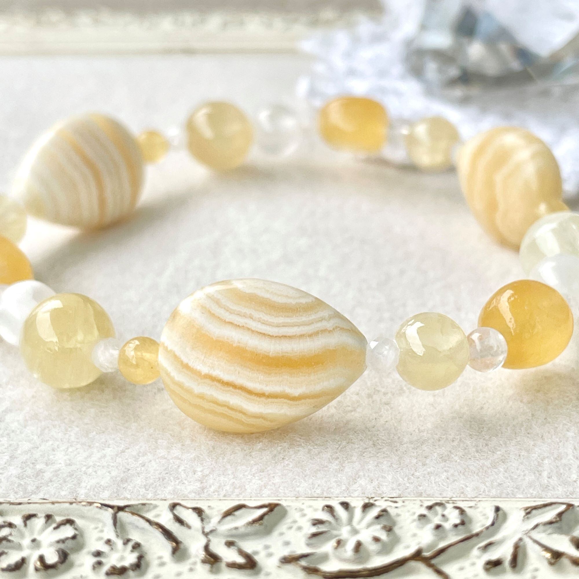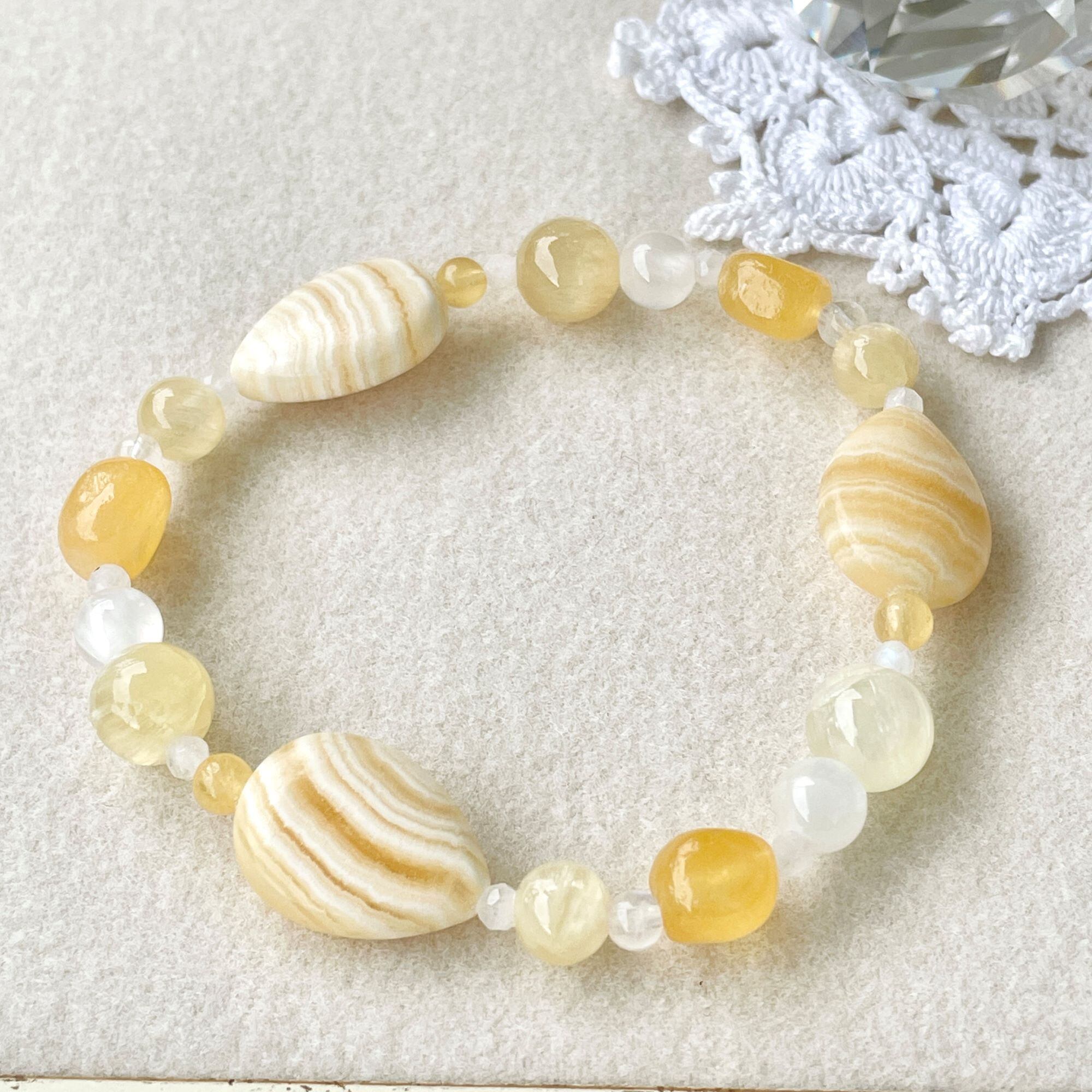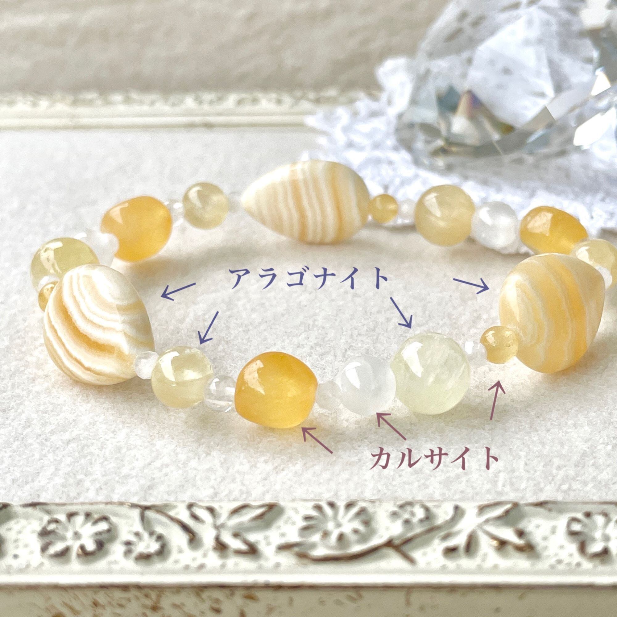 同質異像のアラゴナイトとカルサイトを使ったブレスレットです。