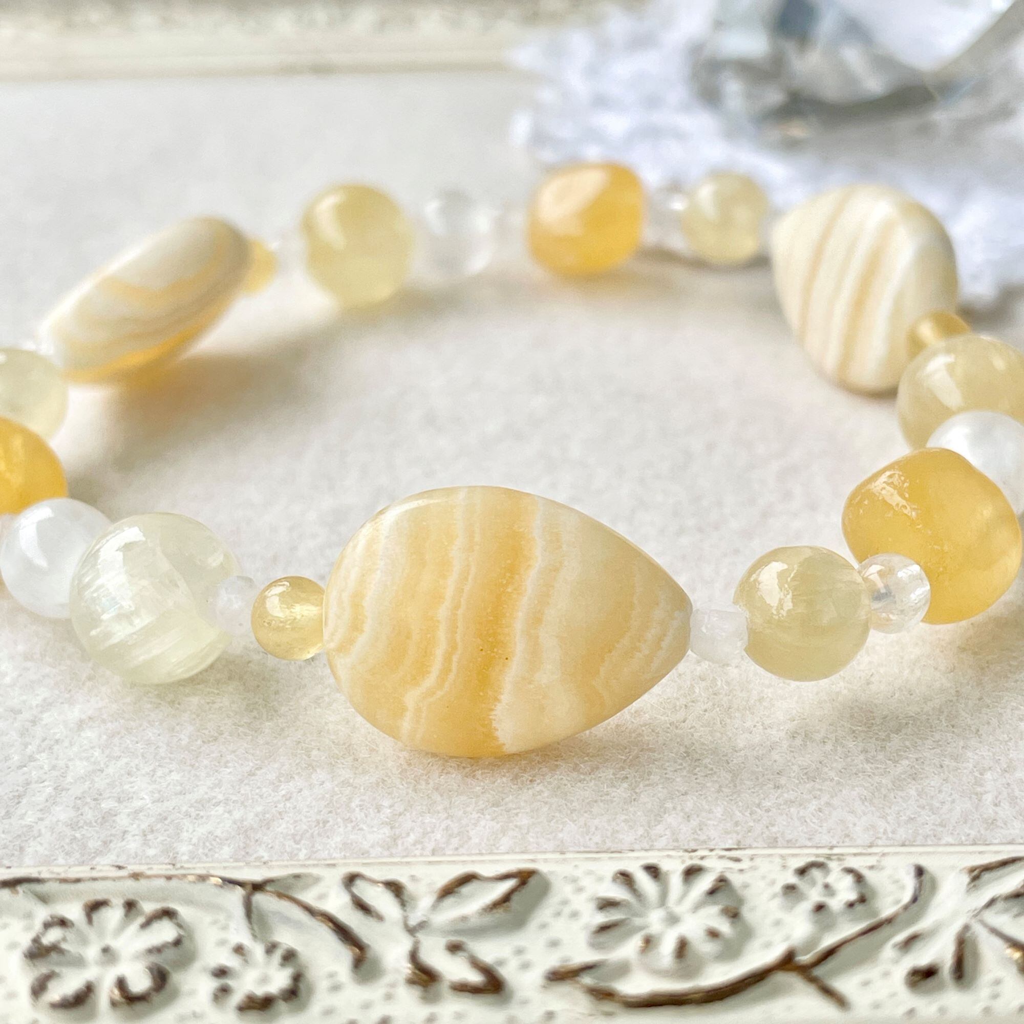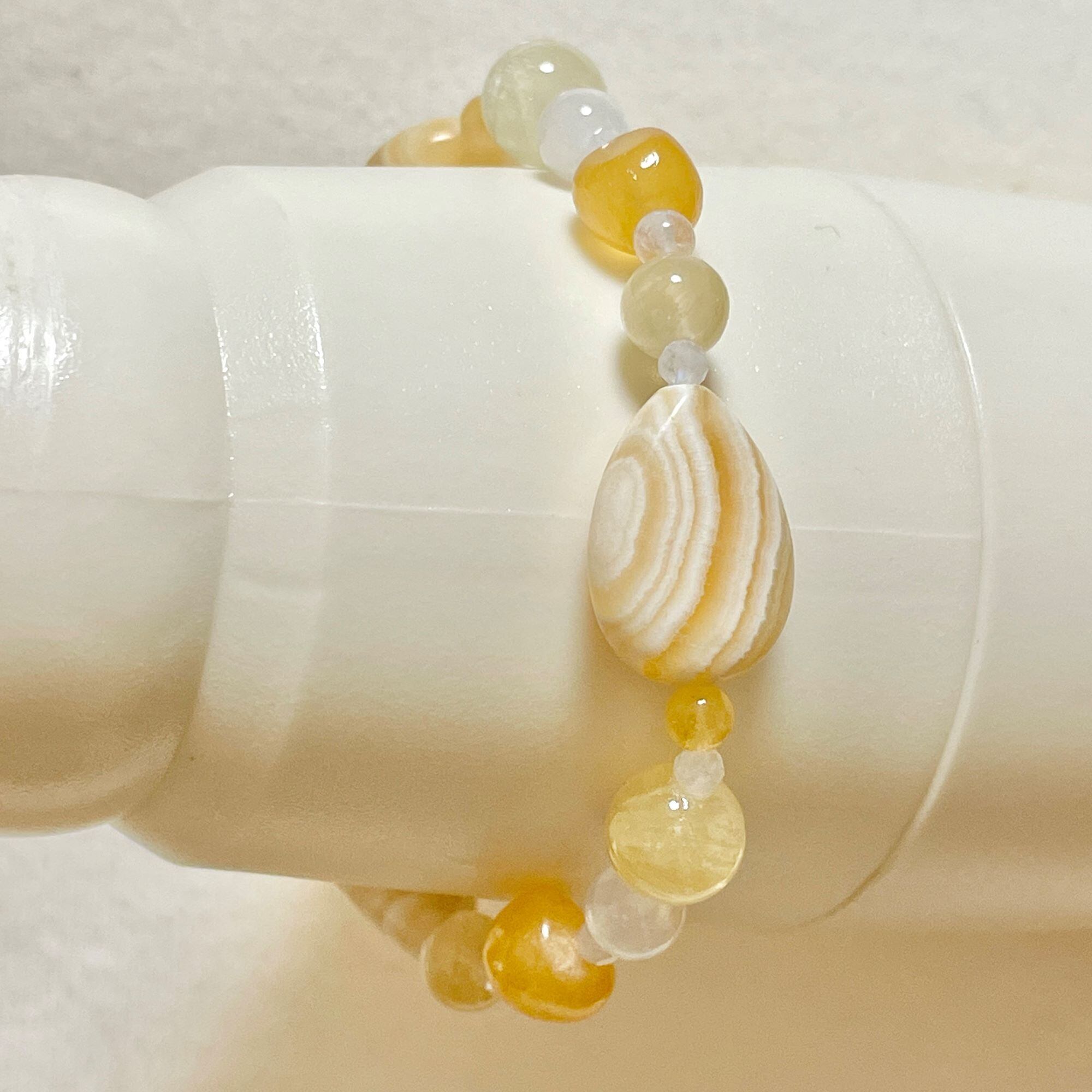 アラゴナイト+カルサイト+レインボームーンストーンのブレスレット agn-b-2304-03