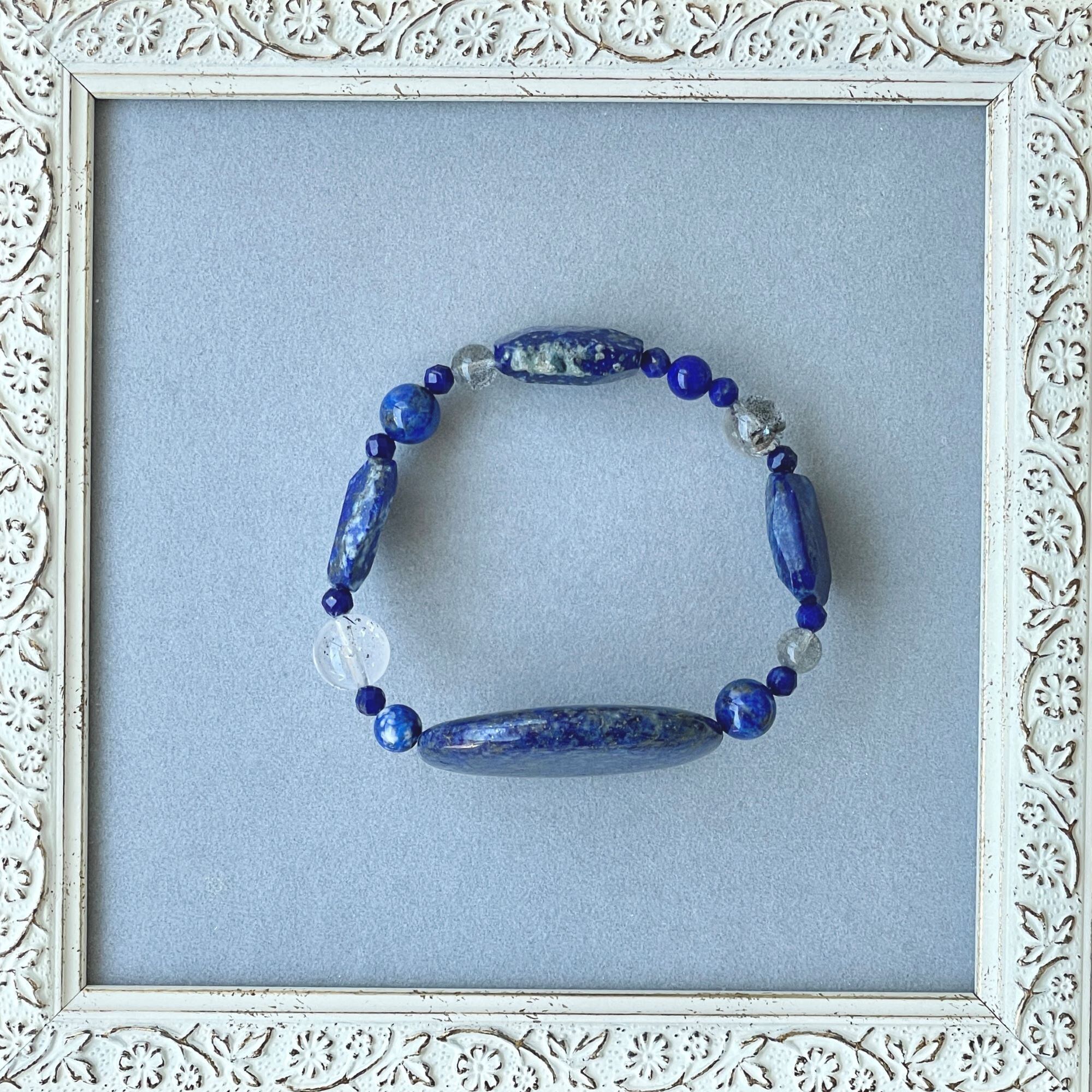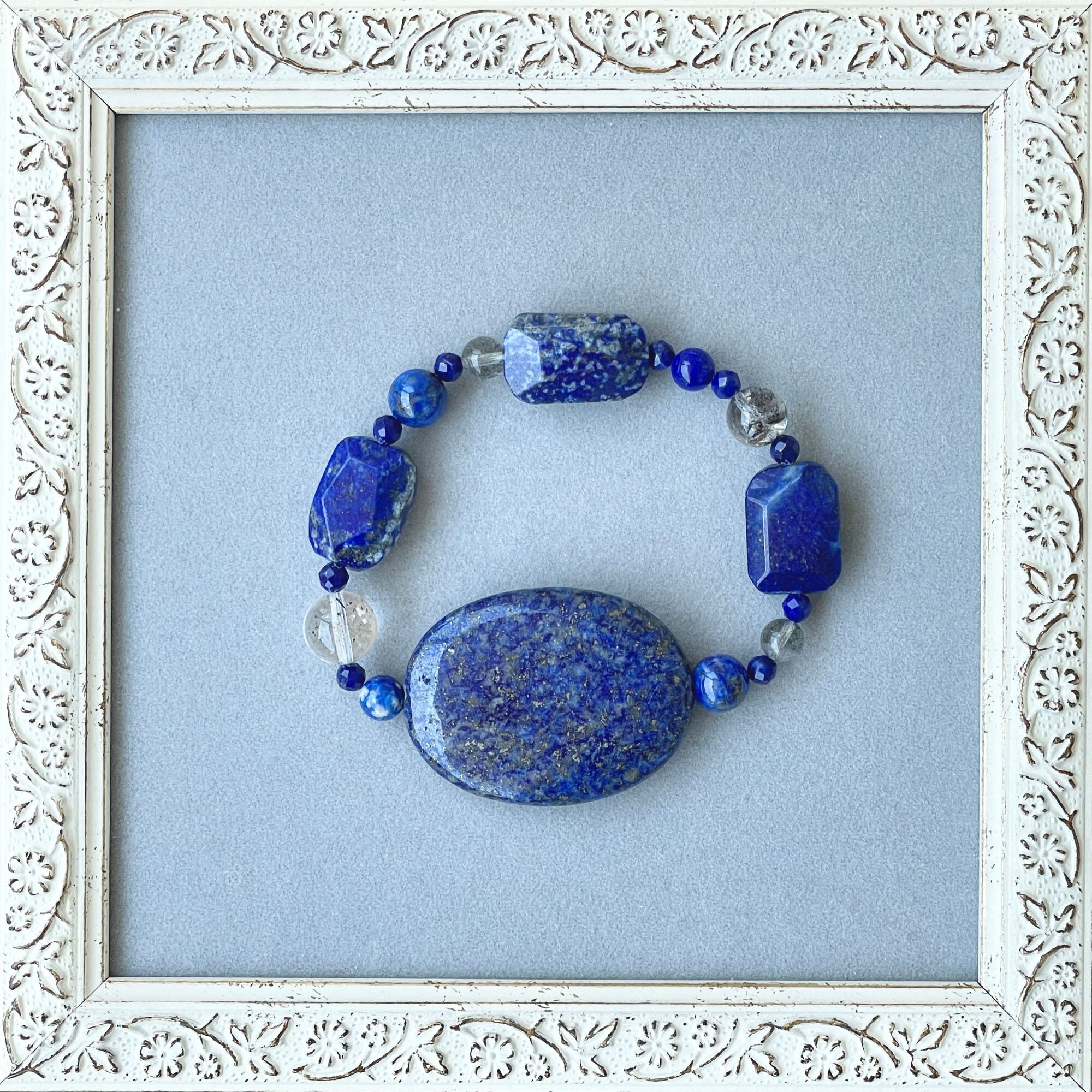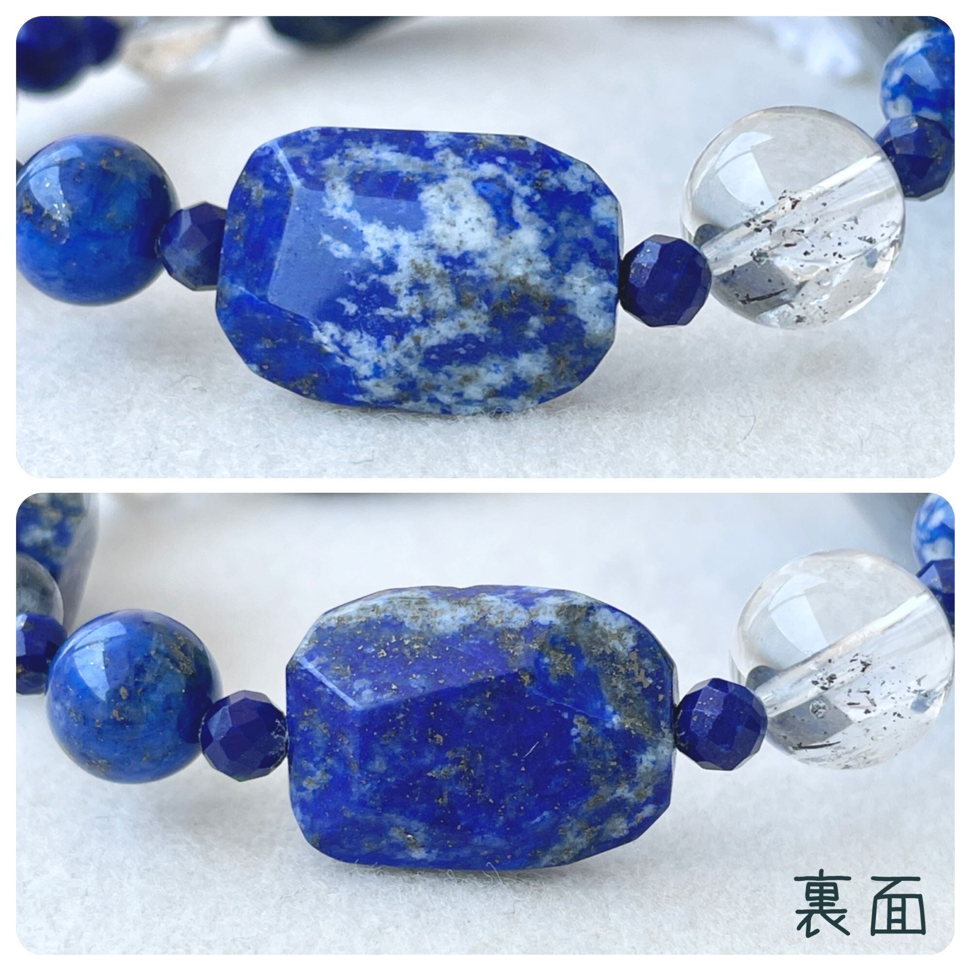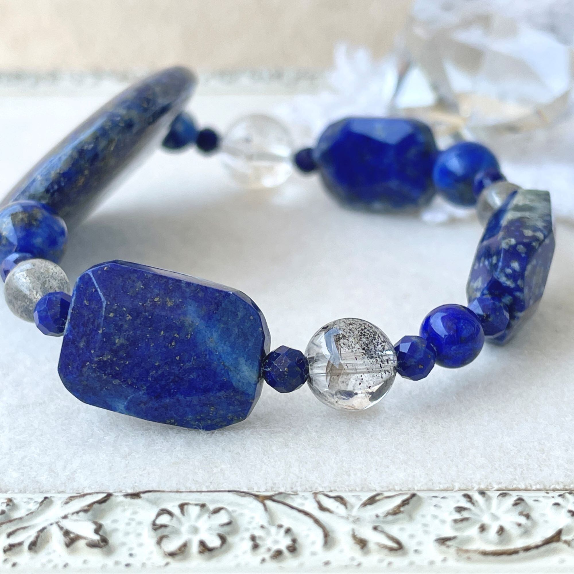 内包物やクラックによって、それぞれに表情がある石たちです。ラピスラズリの個性に馴染みながらも抜け感を作ってくれています。