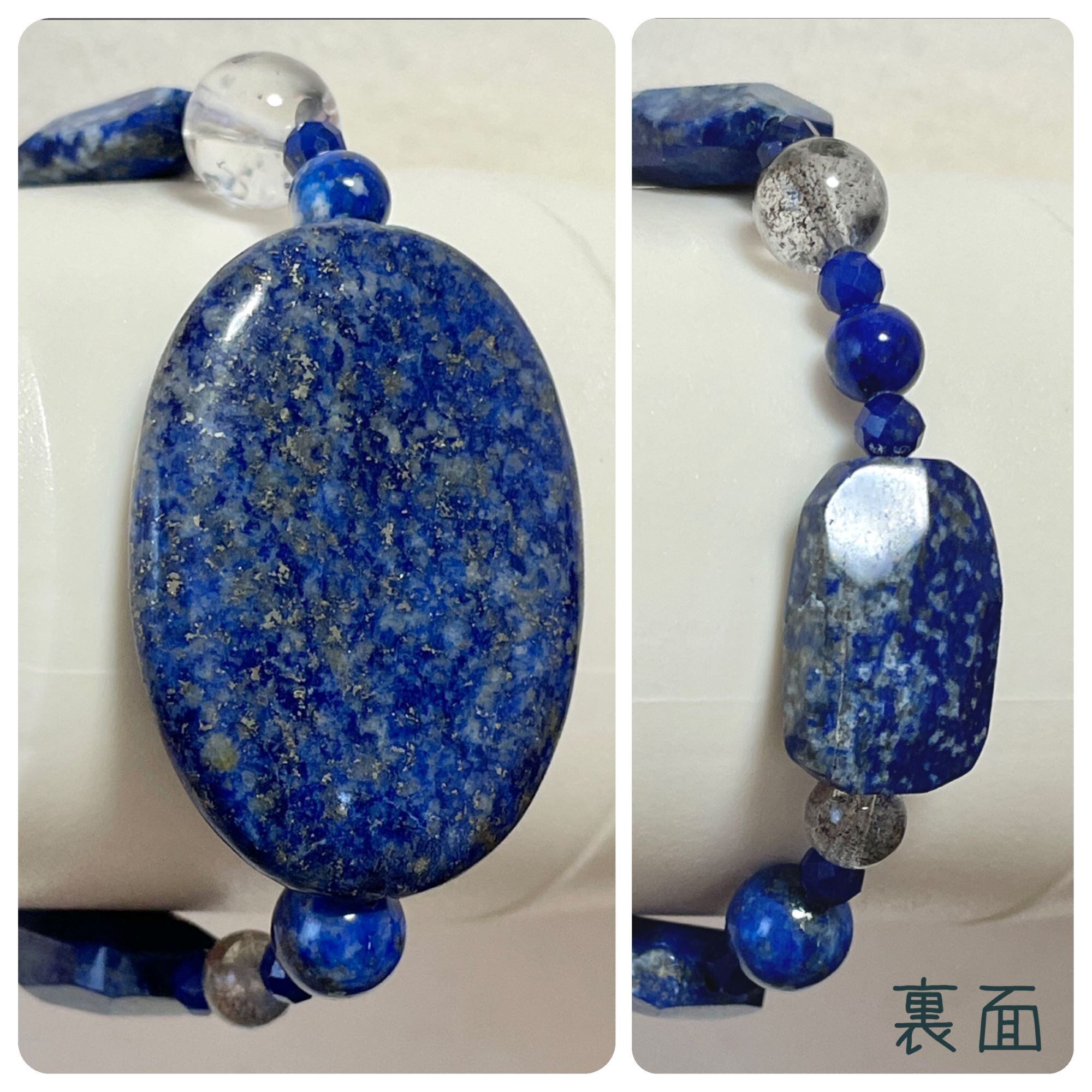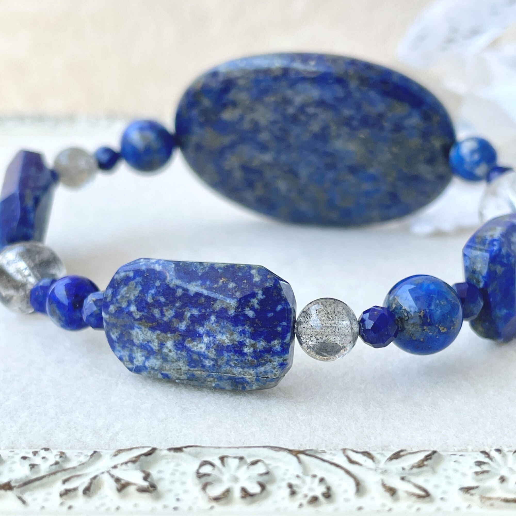 ronde ラピスラズリ+カーボンinクォーツ+ラブラドライトのブレスレット lpl-b-2307-13