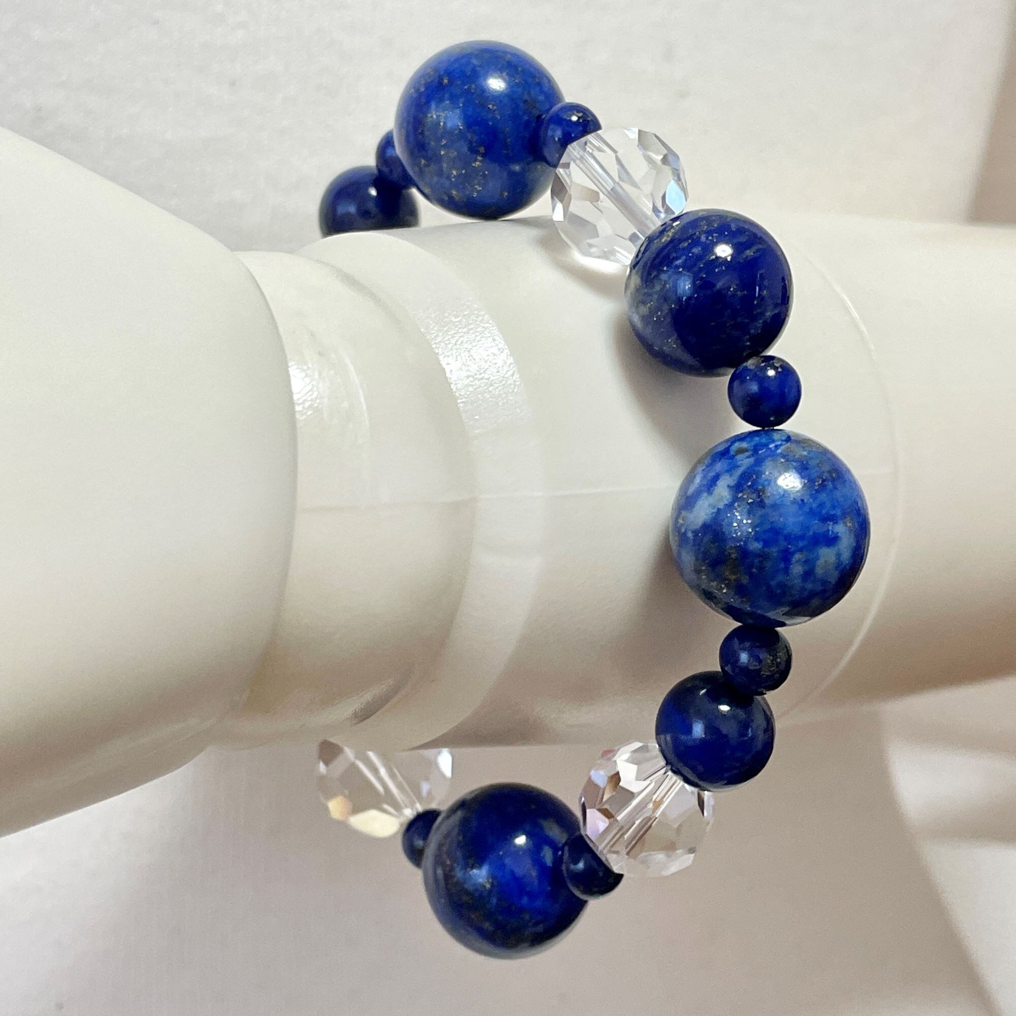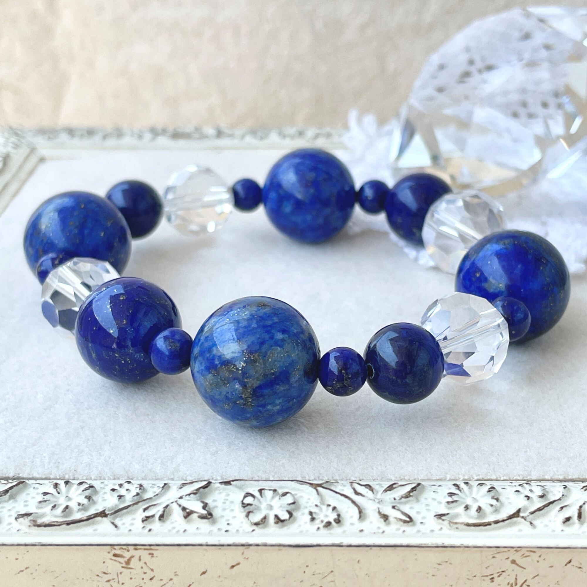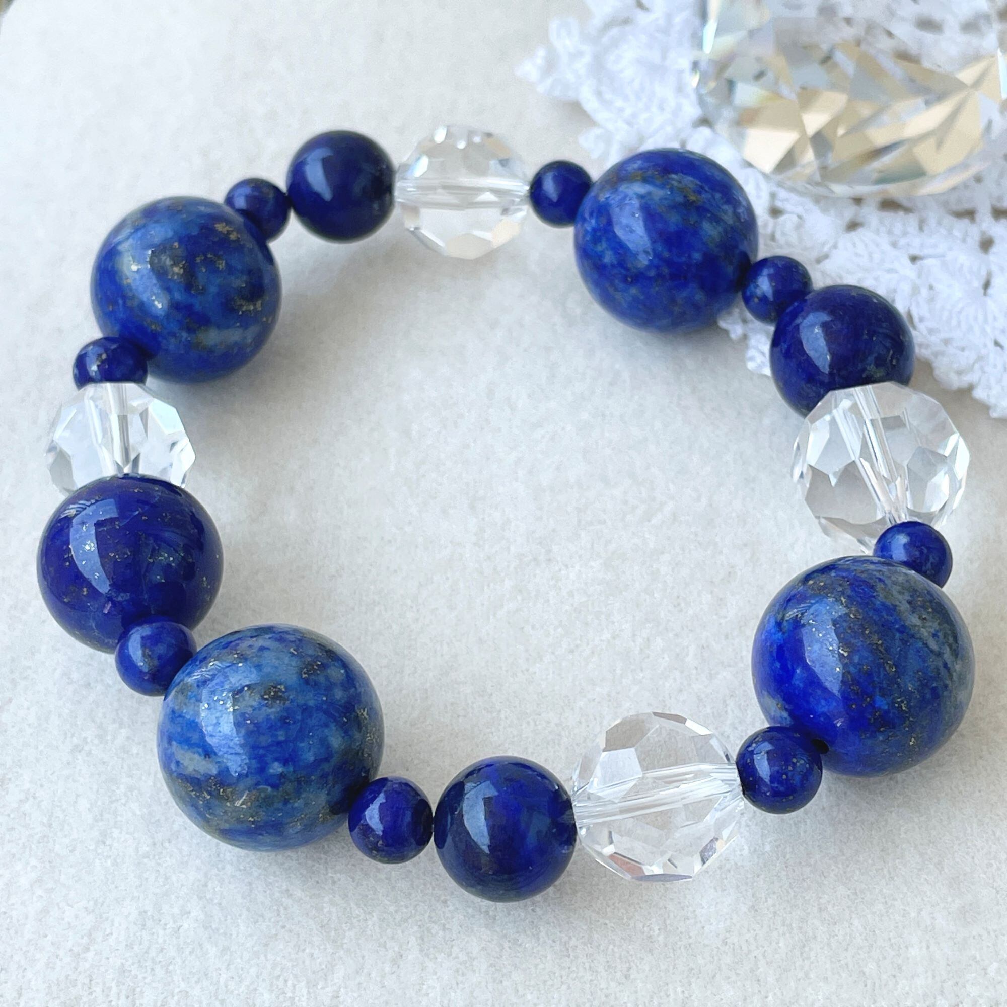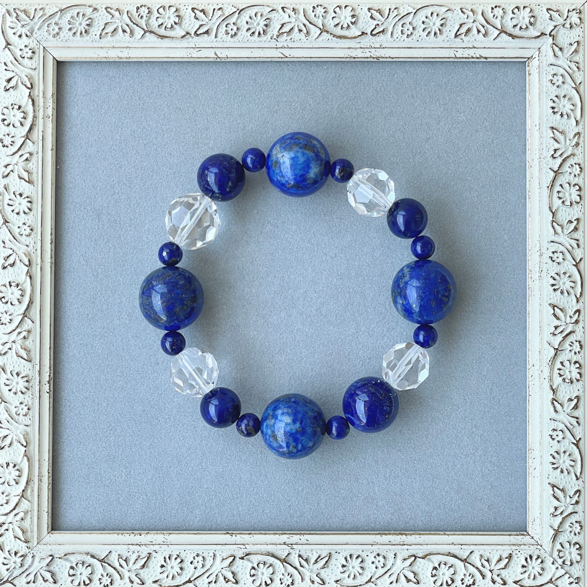 ronde 大玉のラピスラズリ+クリスタル(天然水晶)のブレスレット lpl-b-2307-14