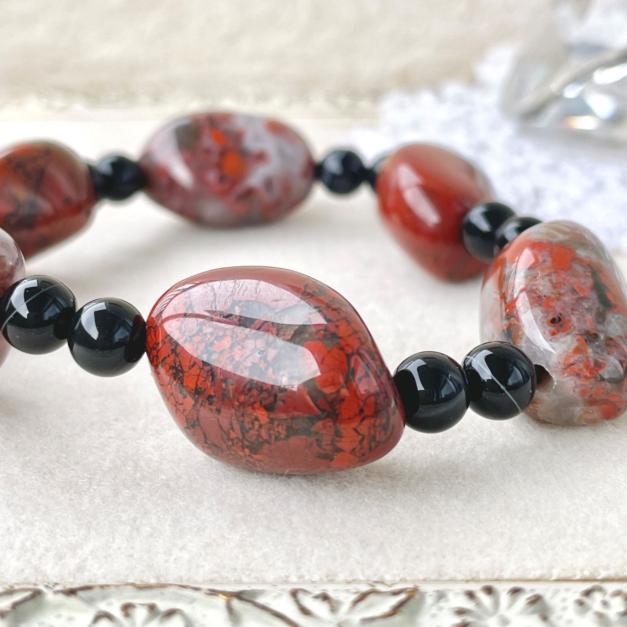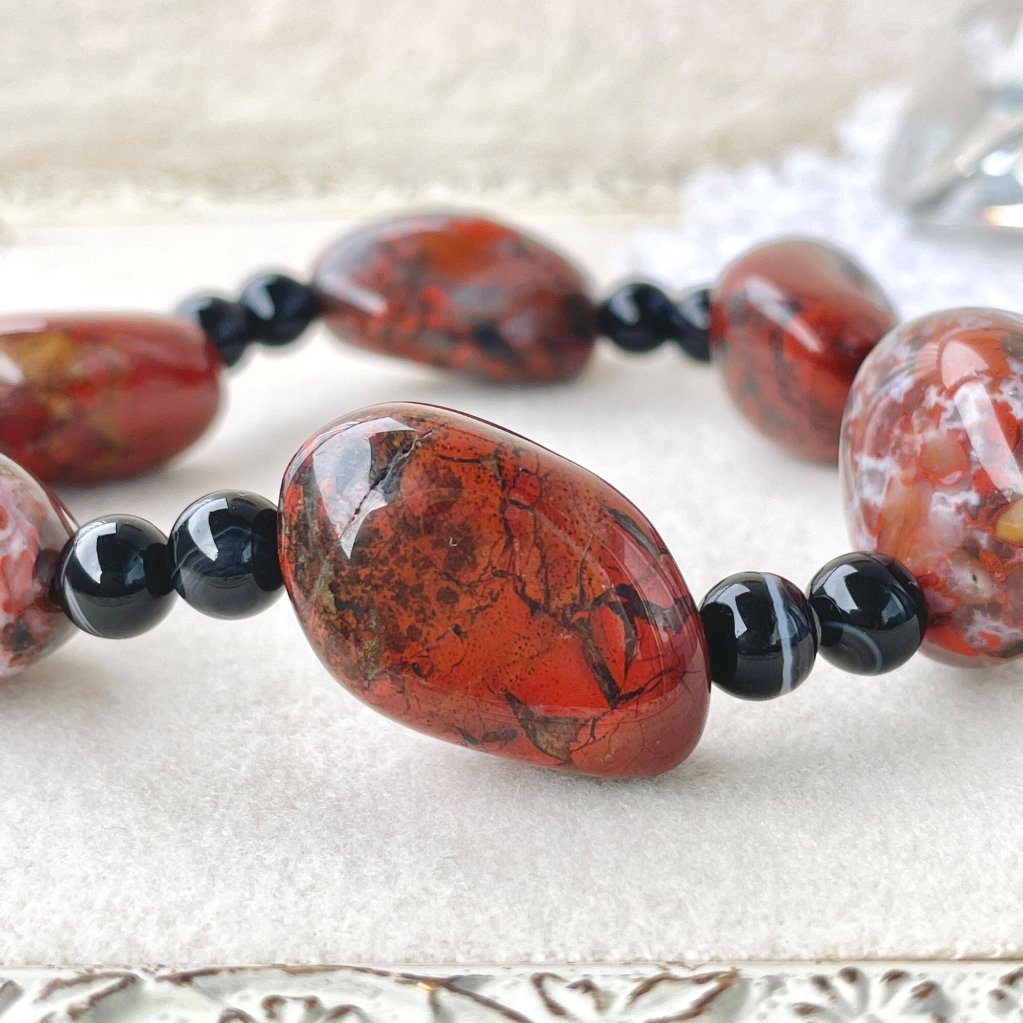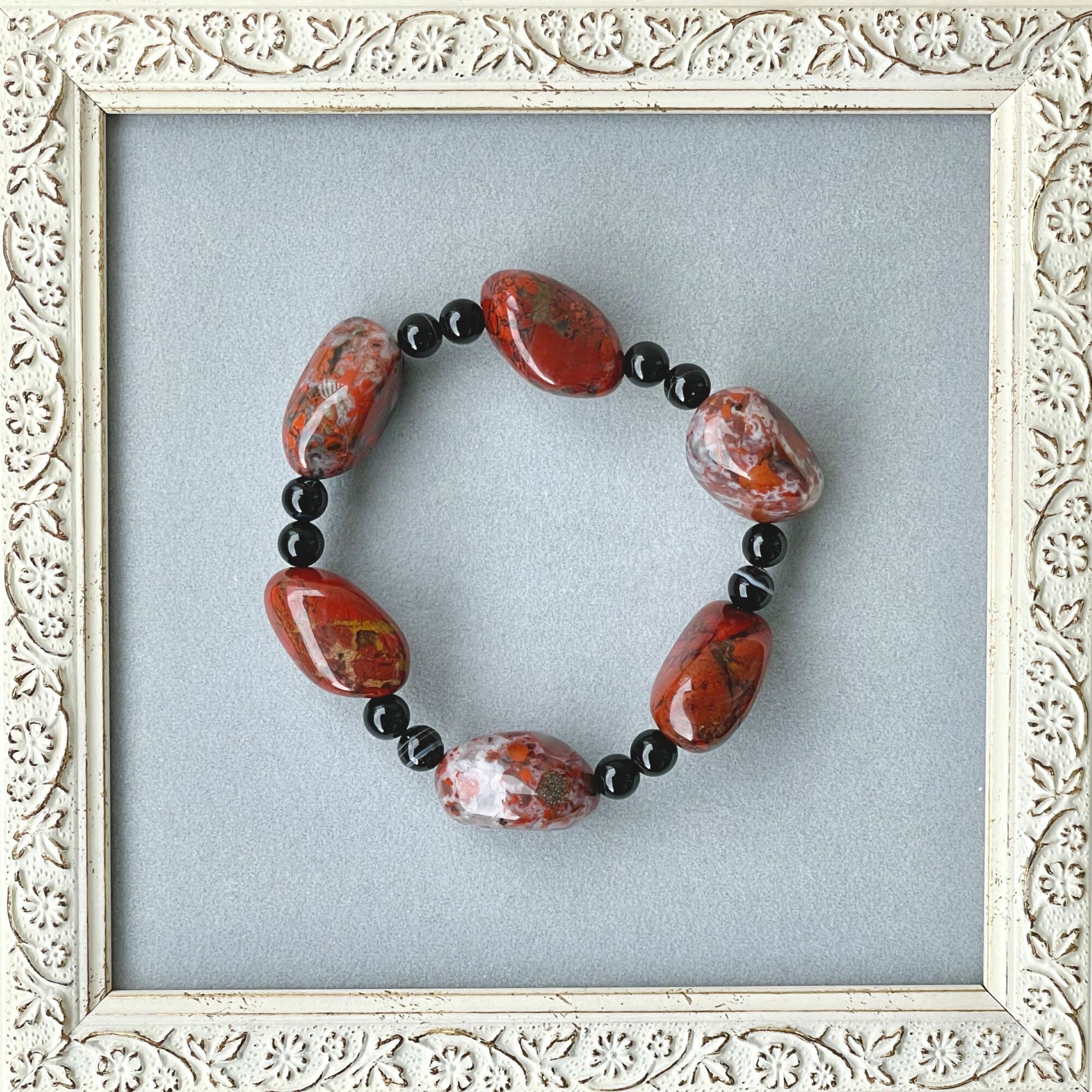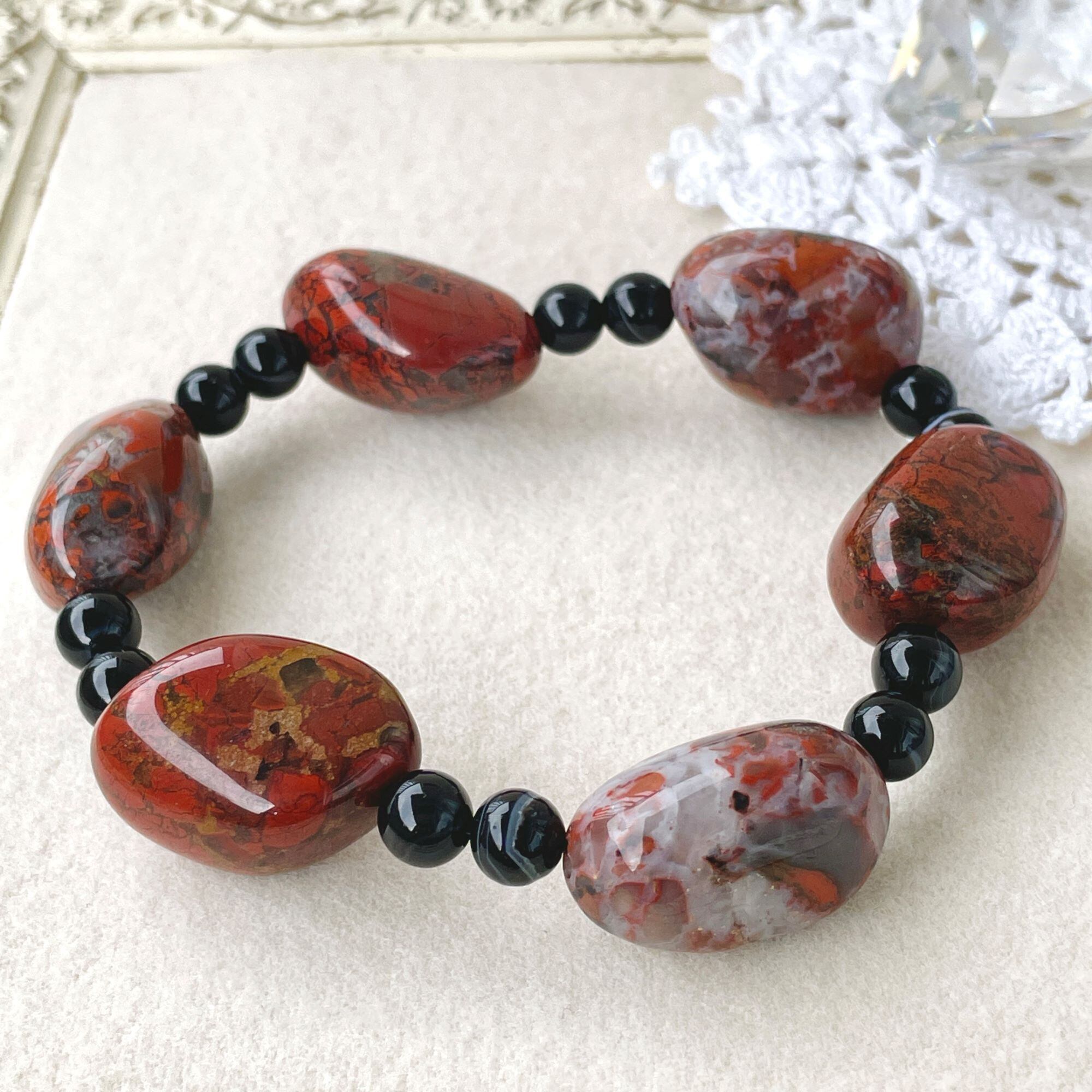 ronde ポピージャスパー+ストライプオニキスのブレスレット jpy-b-2308-15