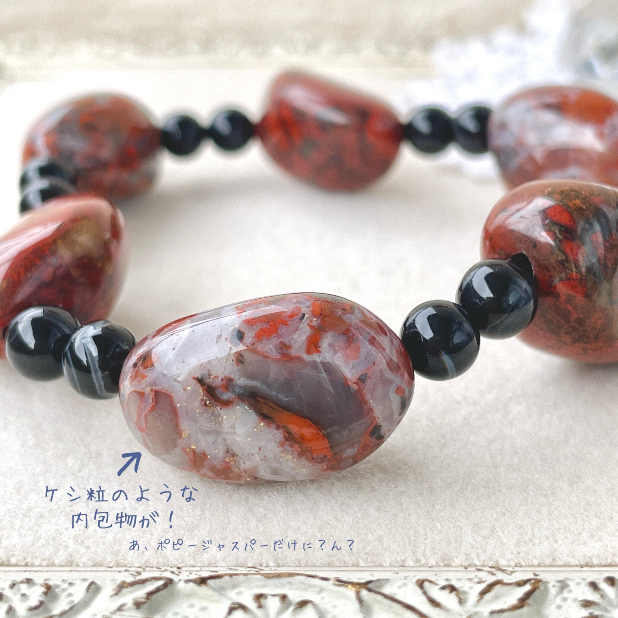 ポピージャスパーは、赤~黒の色合いの柄がポピーの花を連想させることから名付けられたそうです。