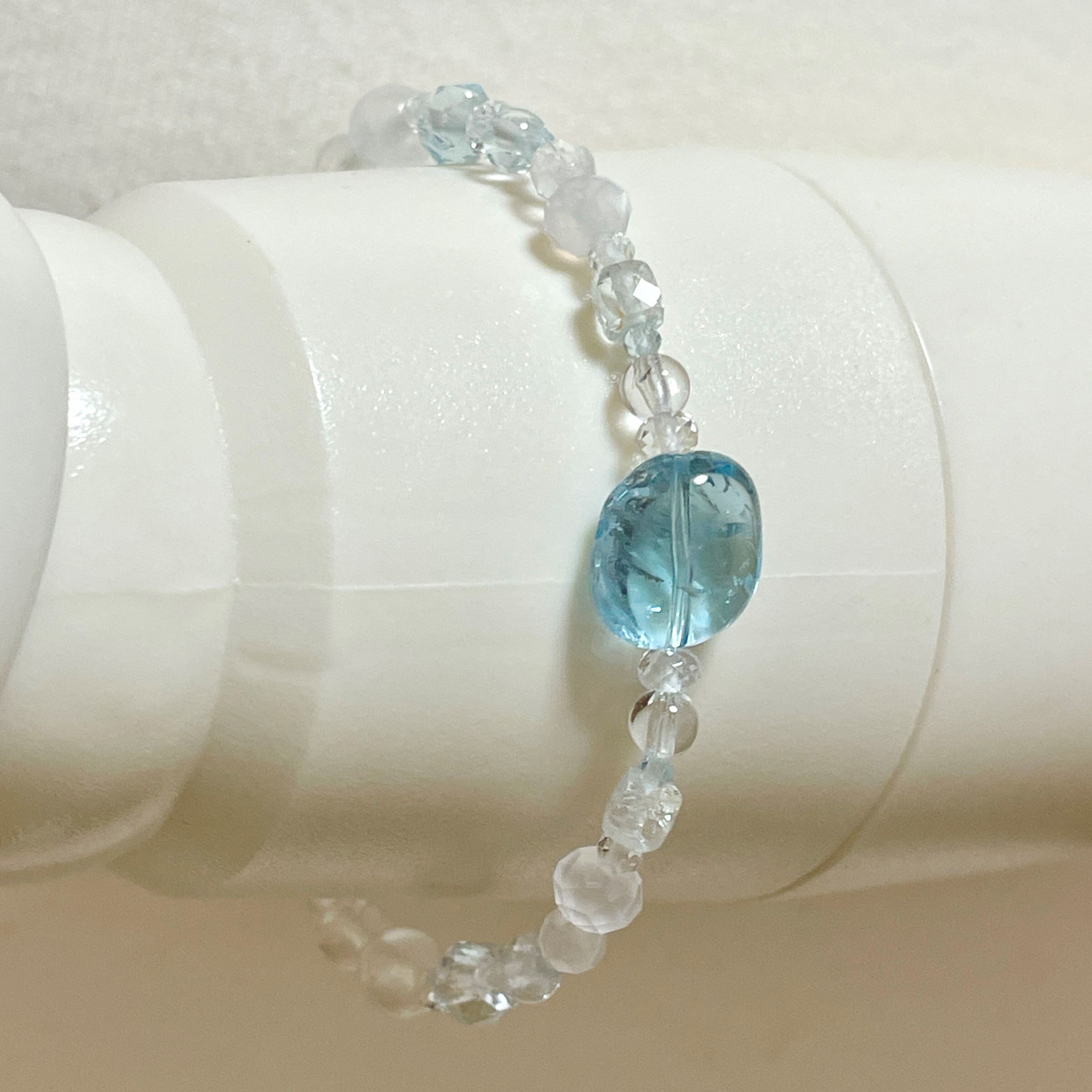 ronde スカイブルートパーズ+ロイヤルブルームーンストーン(ペリステライト)のブレスレット tpz-b-2311-01