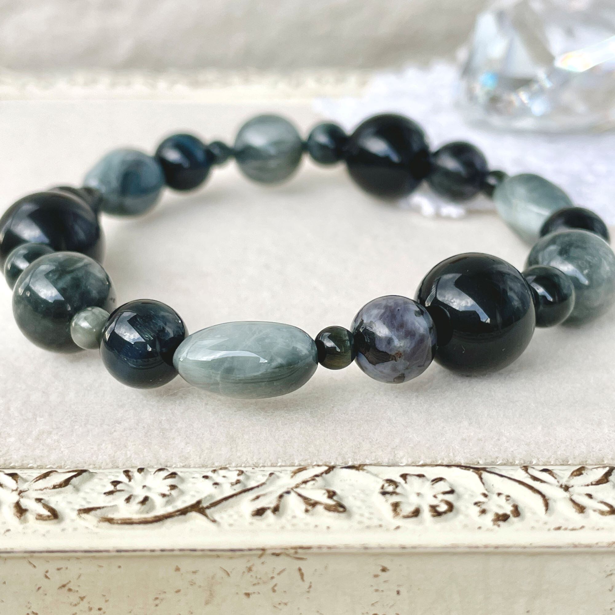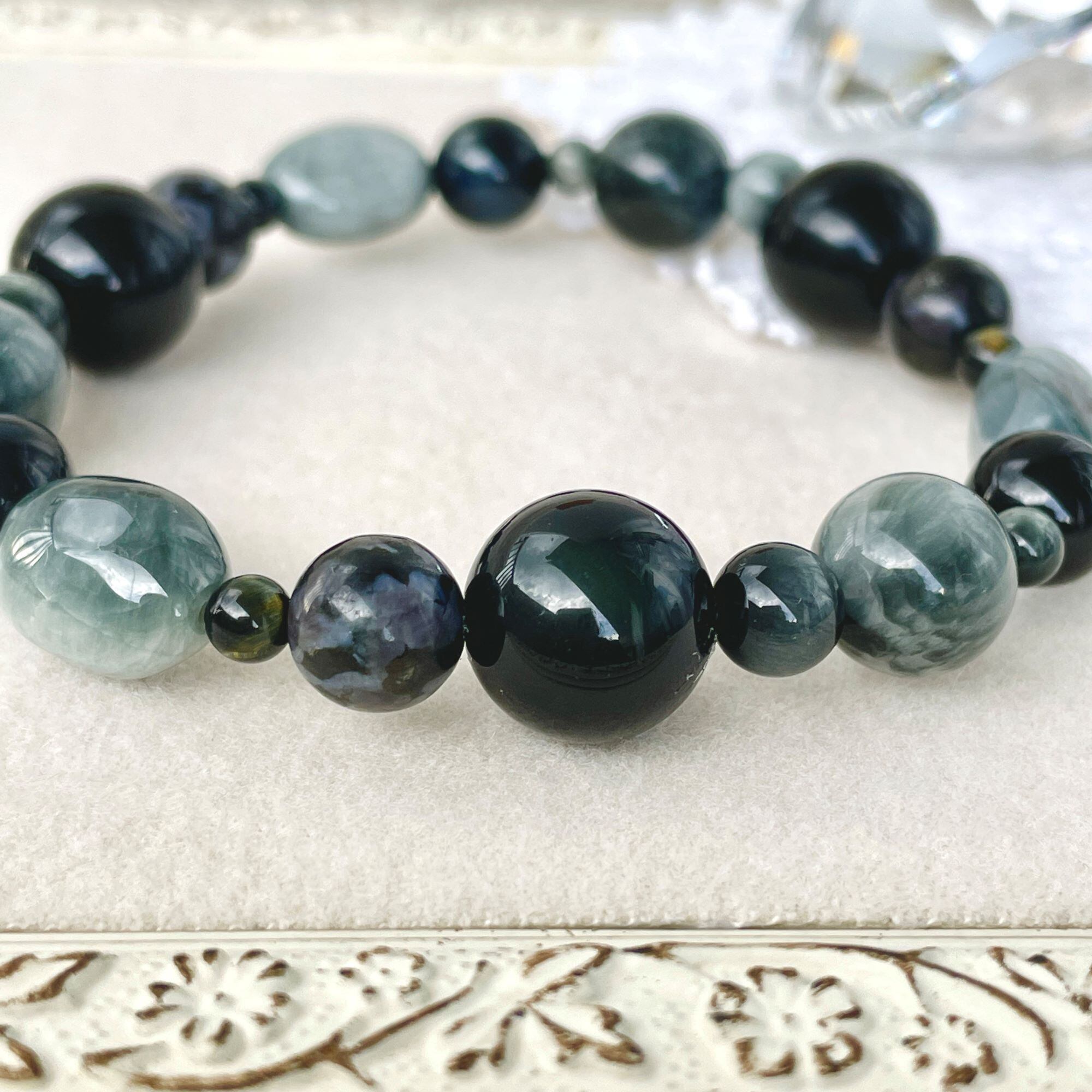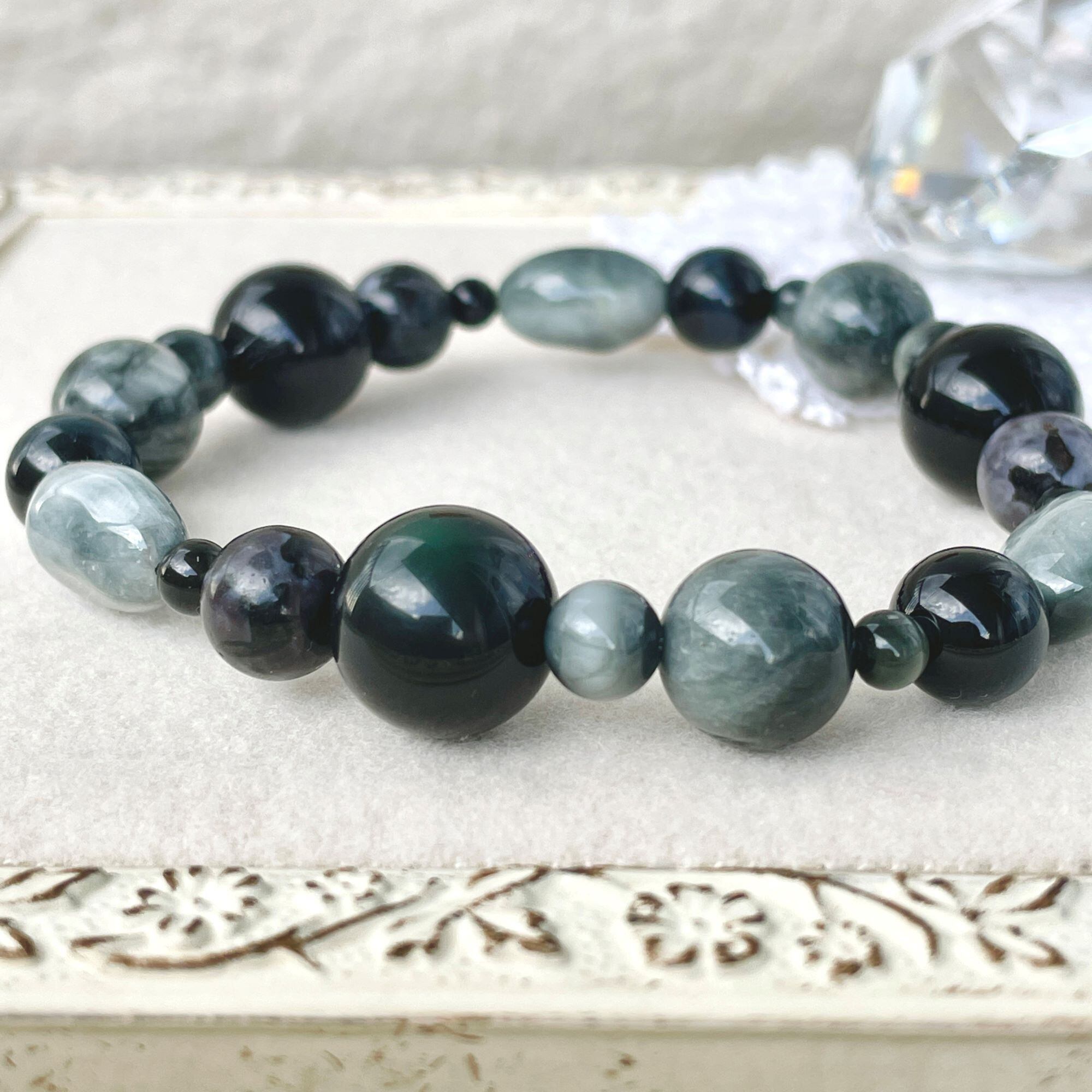 ronde イーグルアイ+ホークアイ(ブルータイガーアイ)+グリーンオブシディアンのブレスレット tge-b-2311-05