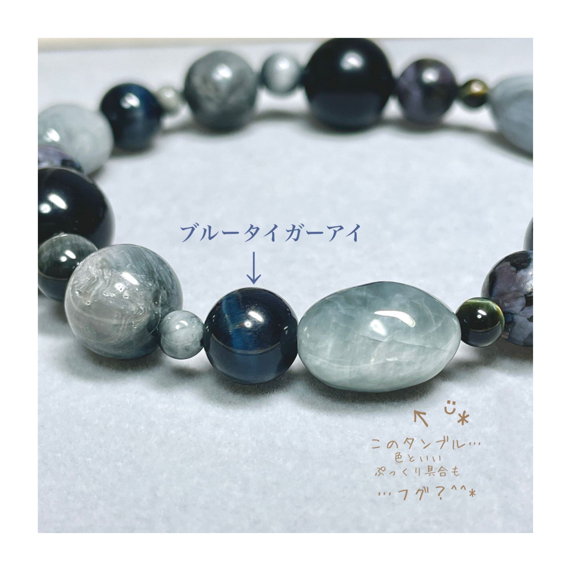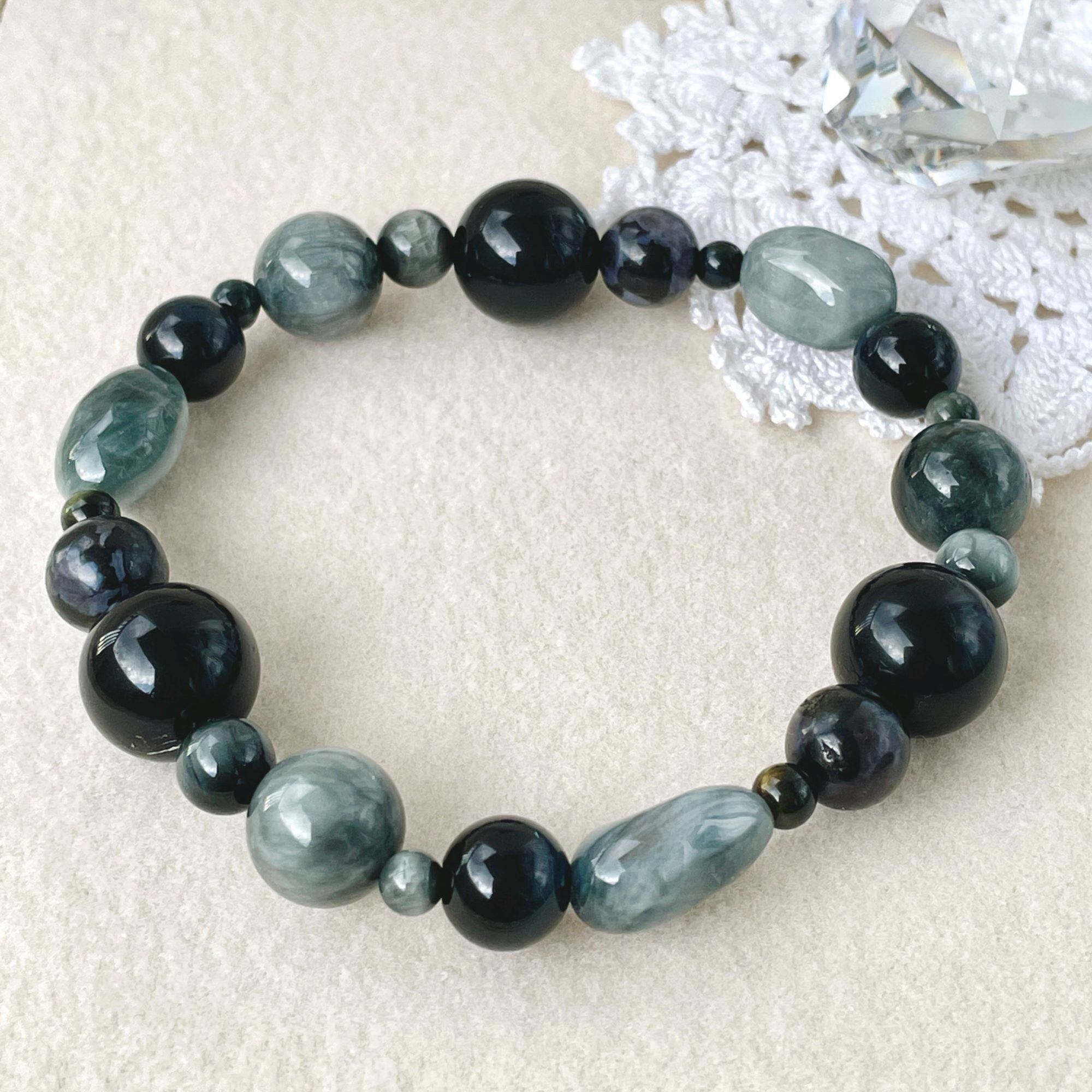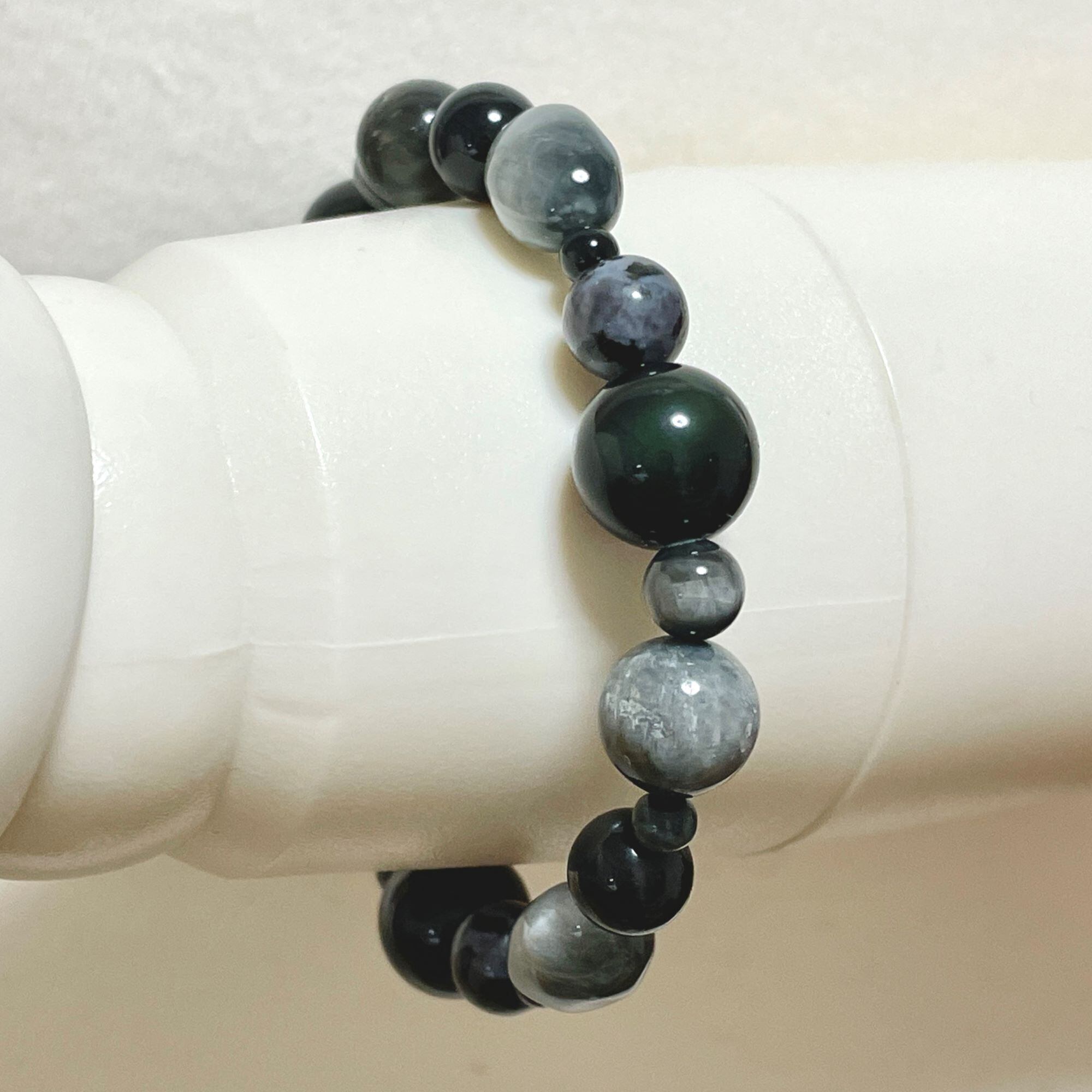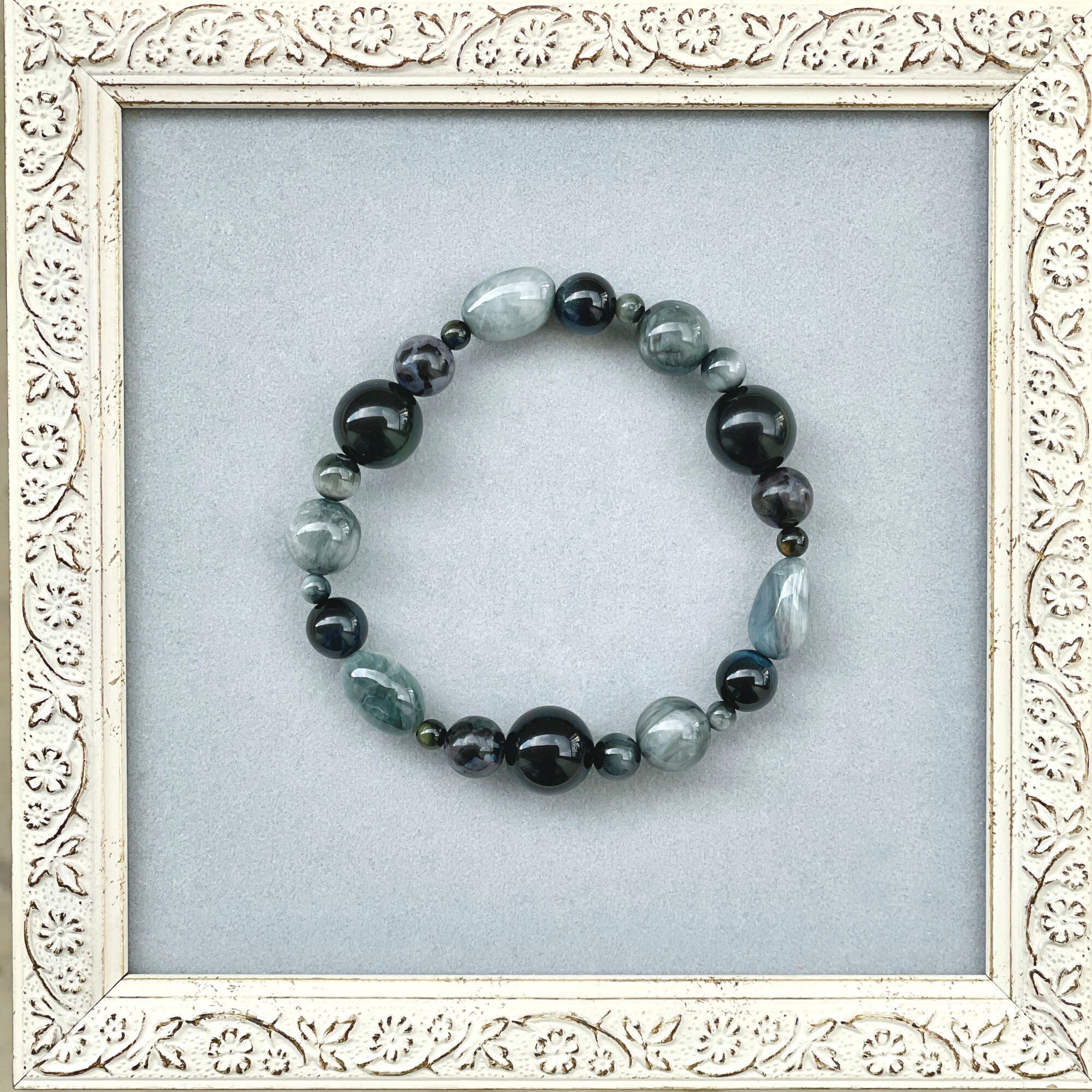 ronde イーグルアイ+ホークアイ(ブルータイガーアイ)+グリーンオブシディアンのブレスレット tge-b-2311-05